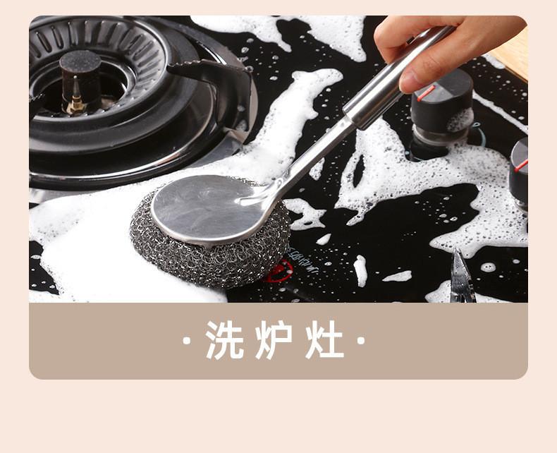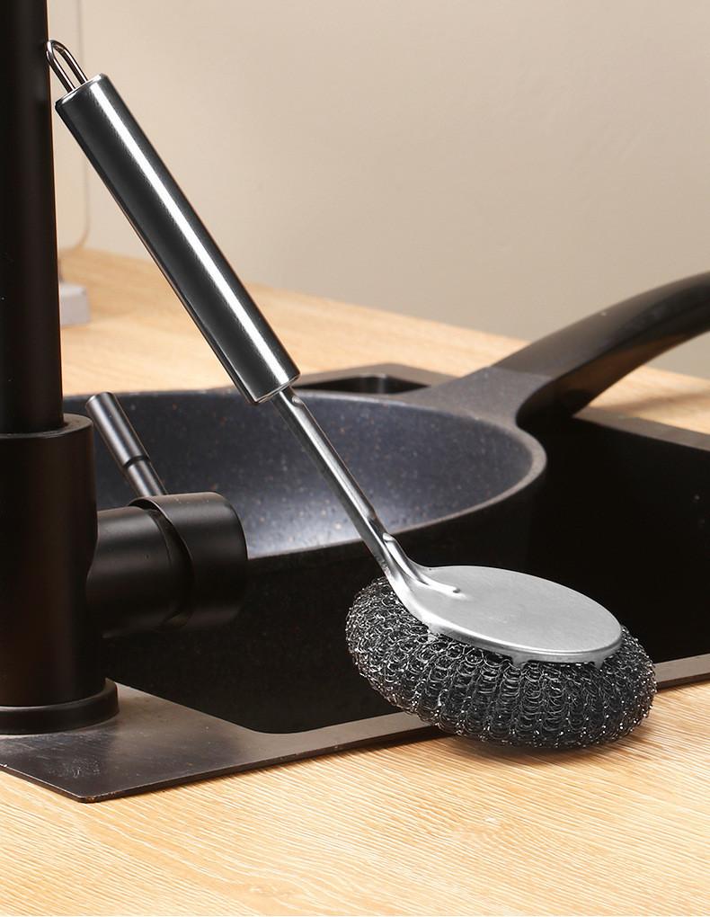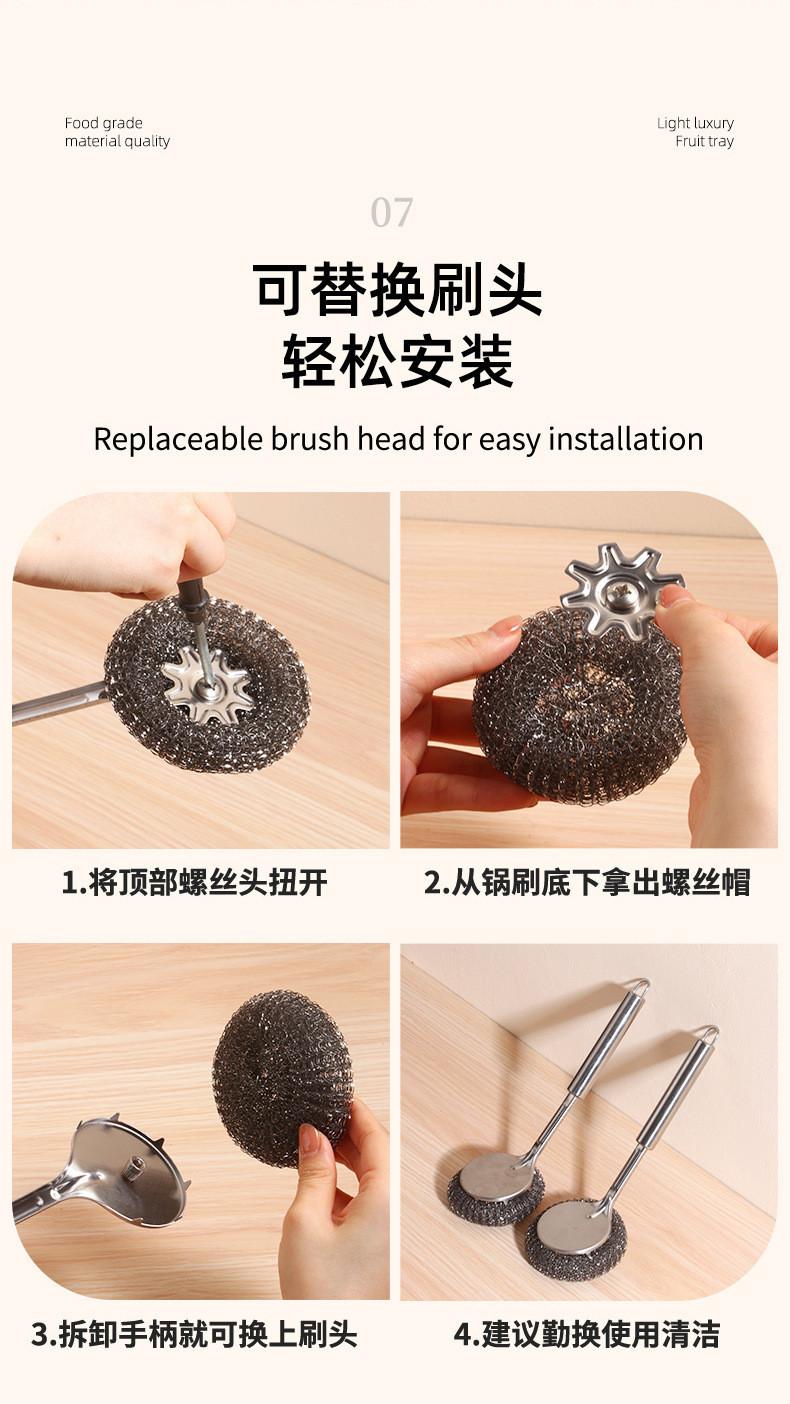 Cepillo para lavar ollas de acero inoxidable bola de acero mango largo cabezal de cepillo reemplazable cepillo de limpieza para lavar platos de cocina cepillo trípode descontaminación