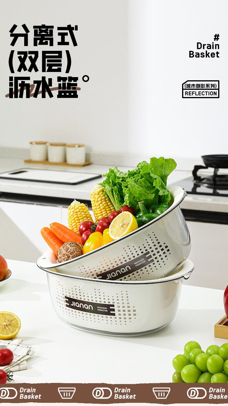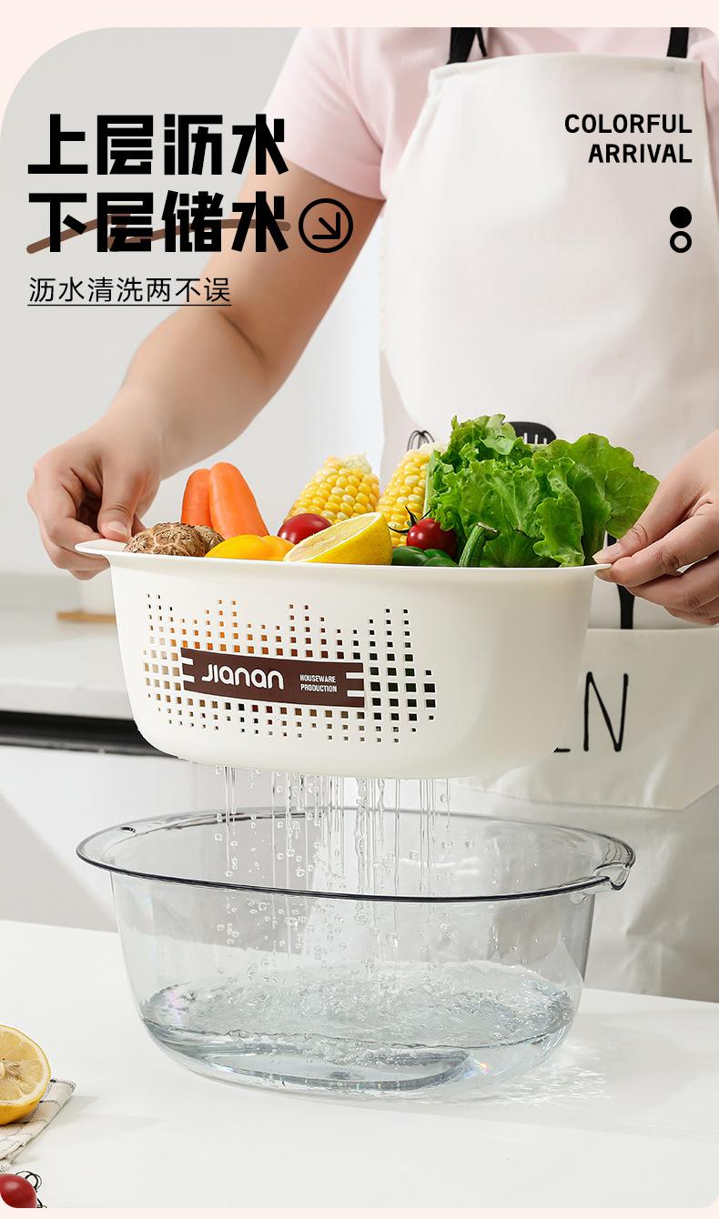 Cesto Escurridor Jian'An Doble Capa Engrosado Cocina Hogar Cesto para Lavar Frutas y Arroz Exquisita Bandeja para Frutas