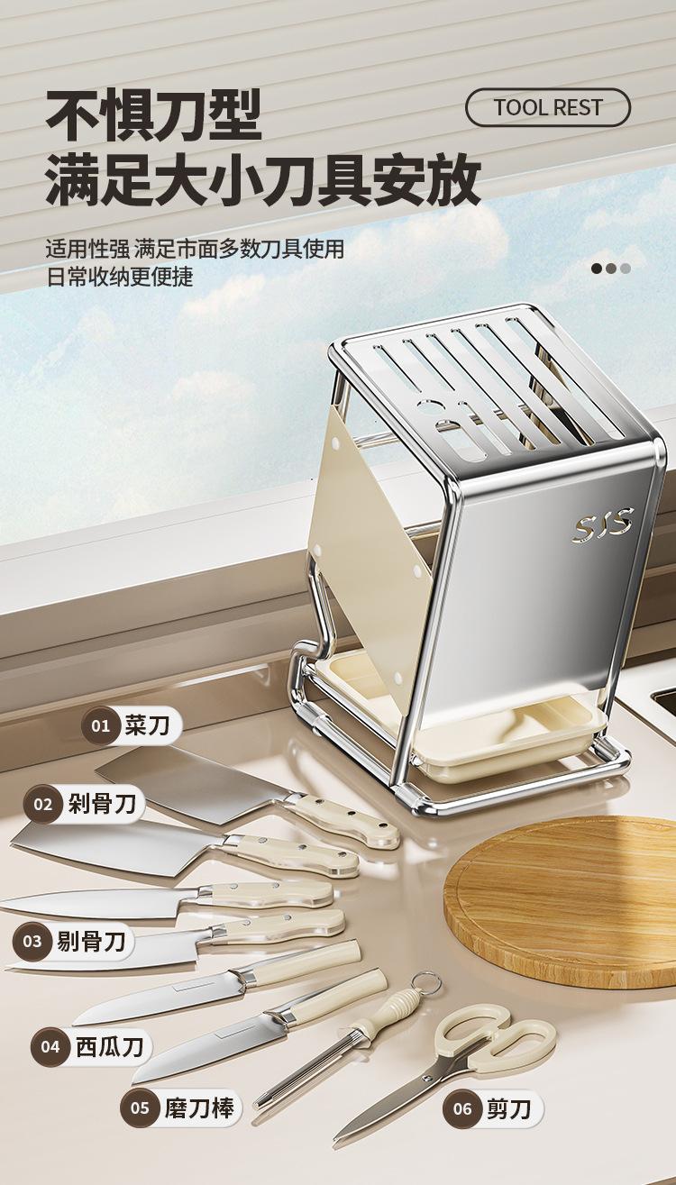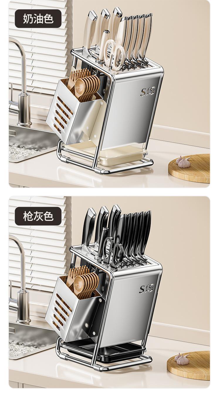 2025 Nuevo Soporte para Cuchillos de Cocina Estante de Almacenamiento Estilo Crema Multifuncional Organizador de Soporte para Cuchillos de Encimera Estante para Almacenamiento de Cuchillos