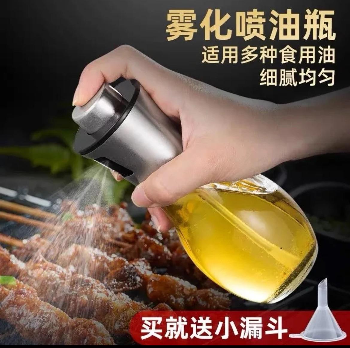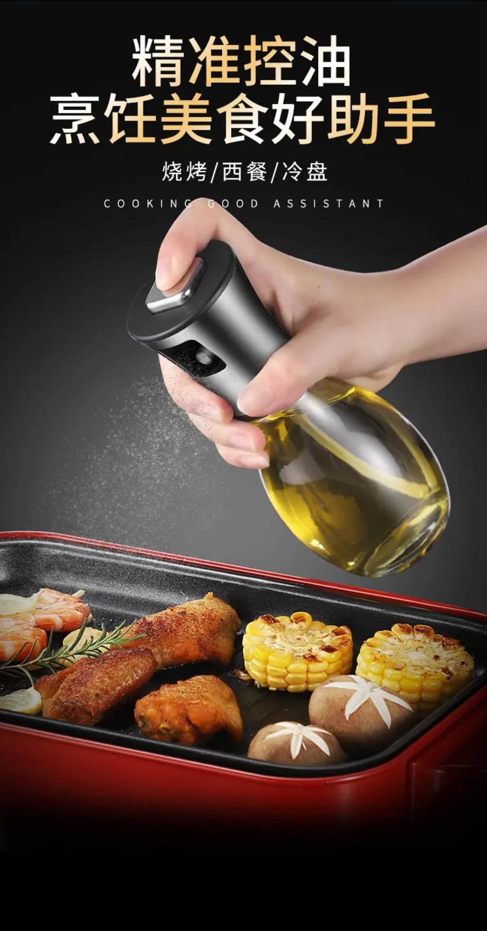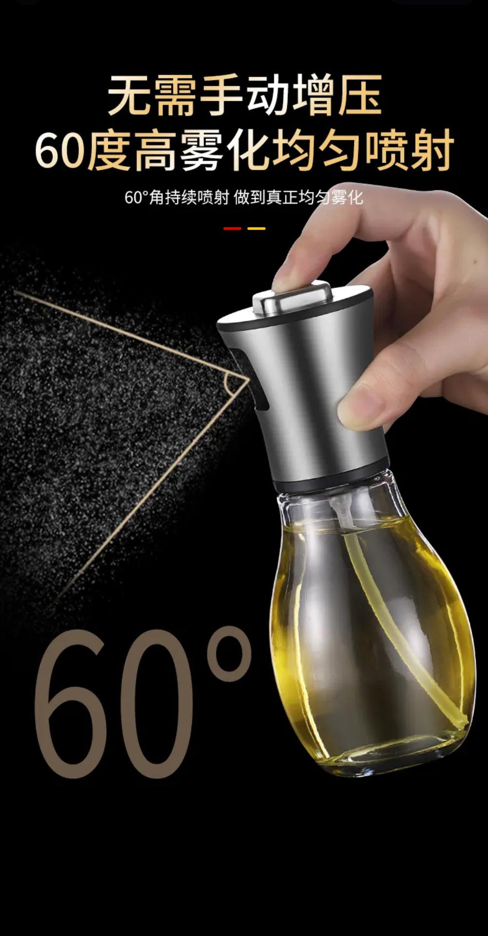 Pulverizador de Aceite Tipo Presión, Botella de Spray Antiadherente de Acero Inoxidable, Botella para Control de Aceite Comestible, Herramienta para Control de Aceite de Material de Vidrio