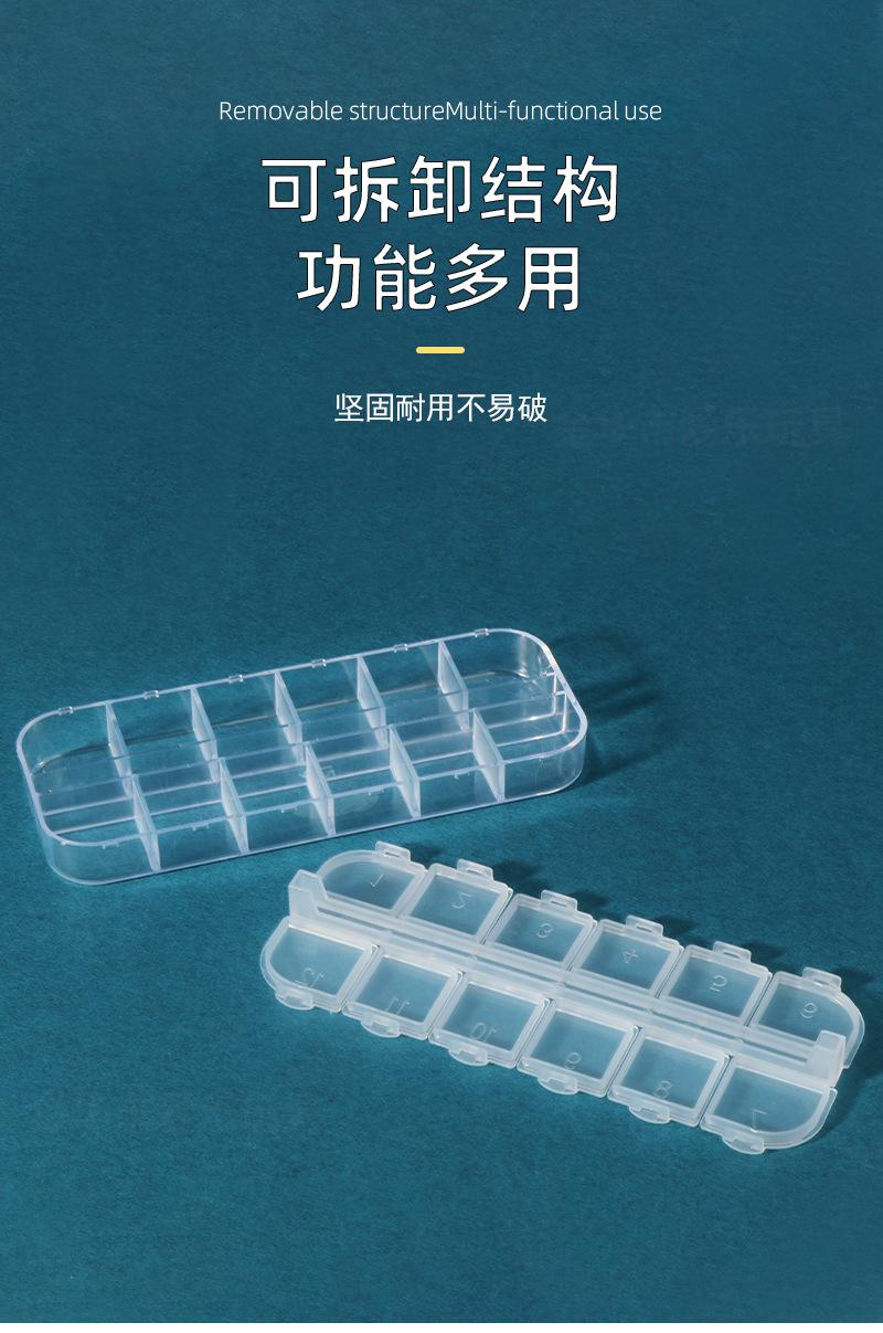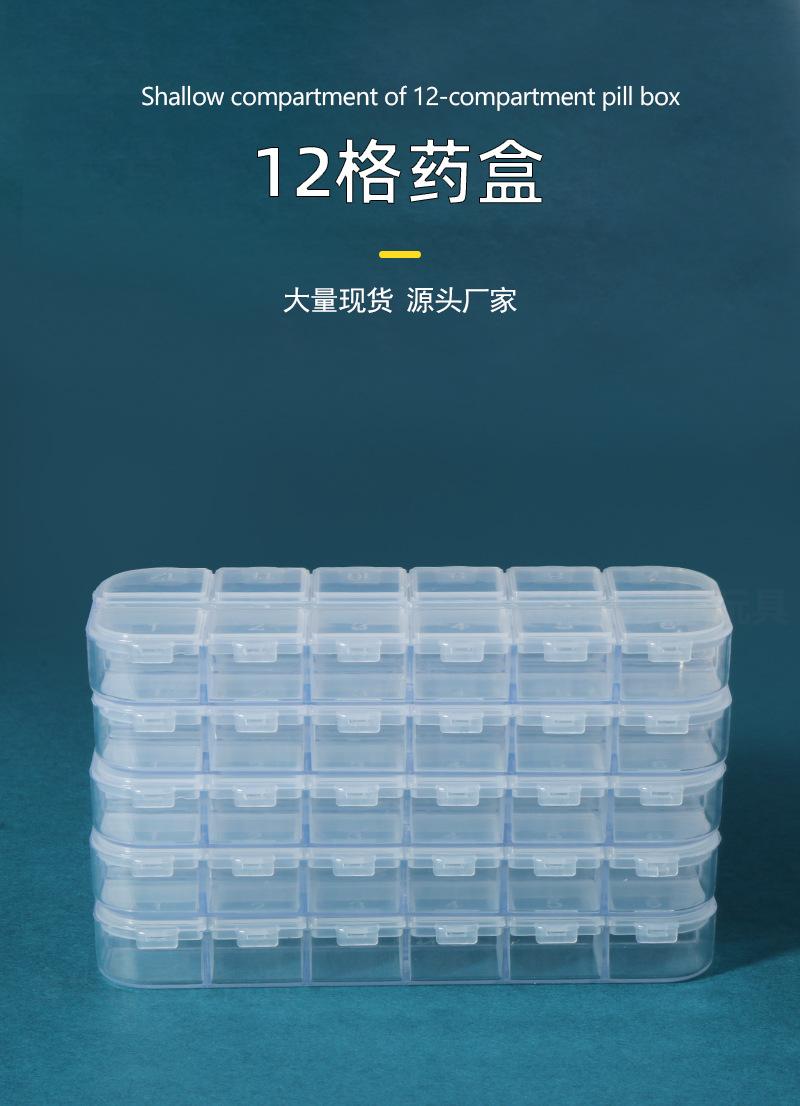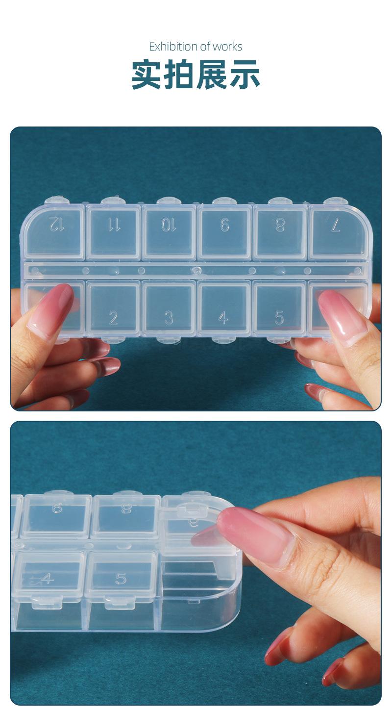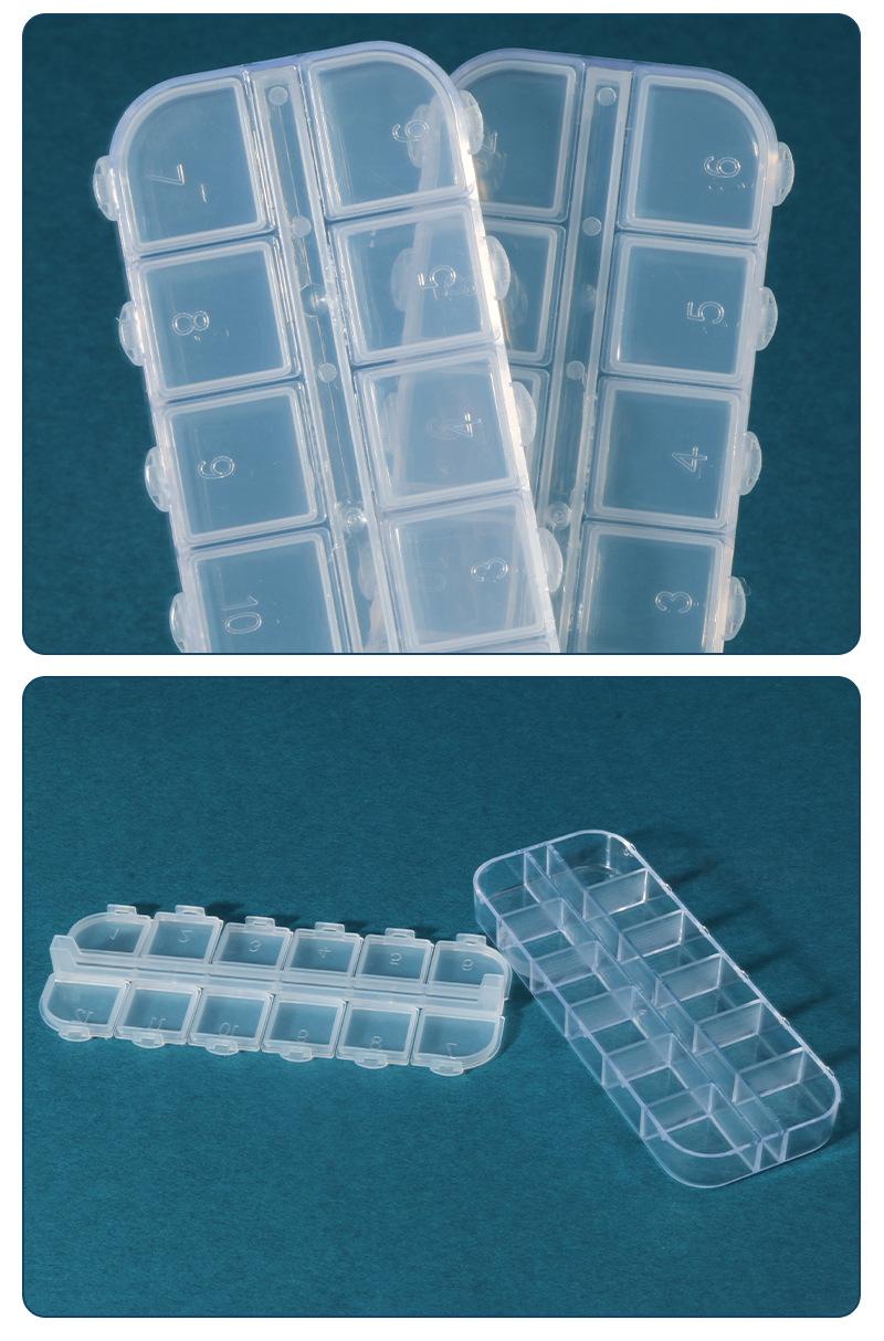 Fabricante Caja Larga de 12 Compartimentos Herramienta de Manicura Caja de Almacenamiento con Tapa Abatible Caja de Joyería Rectangular Caja de Diamantes para Manicura Caja de Medicamentos Venta al por Mayor