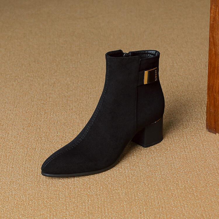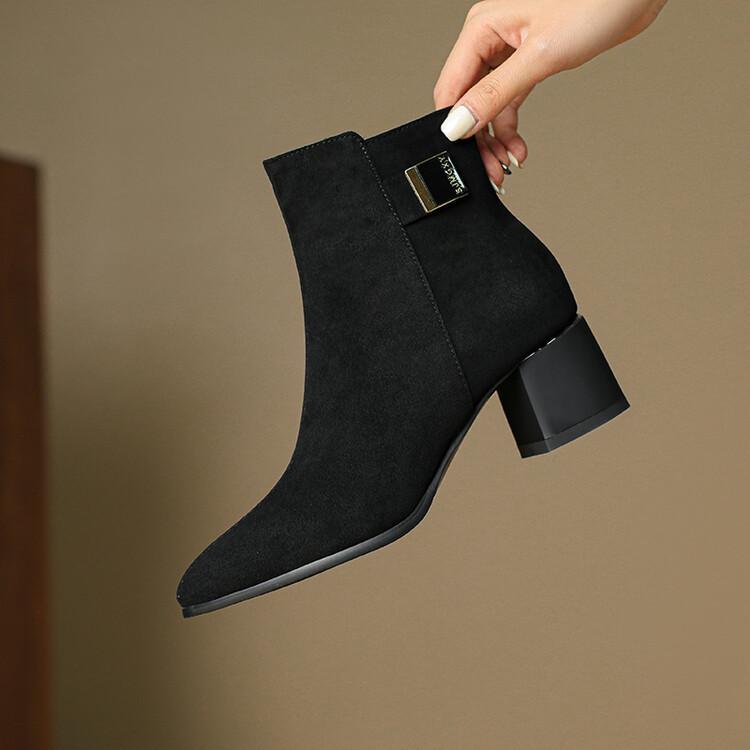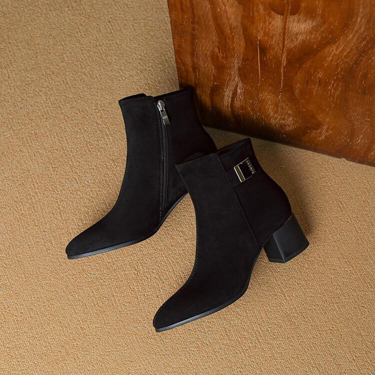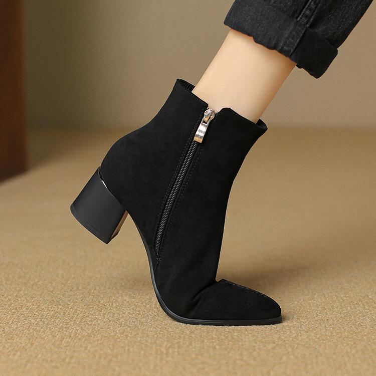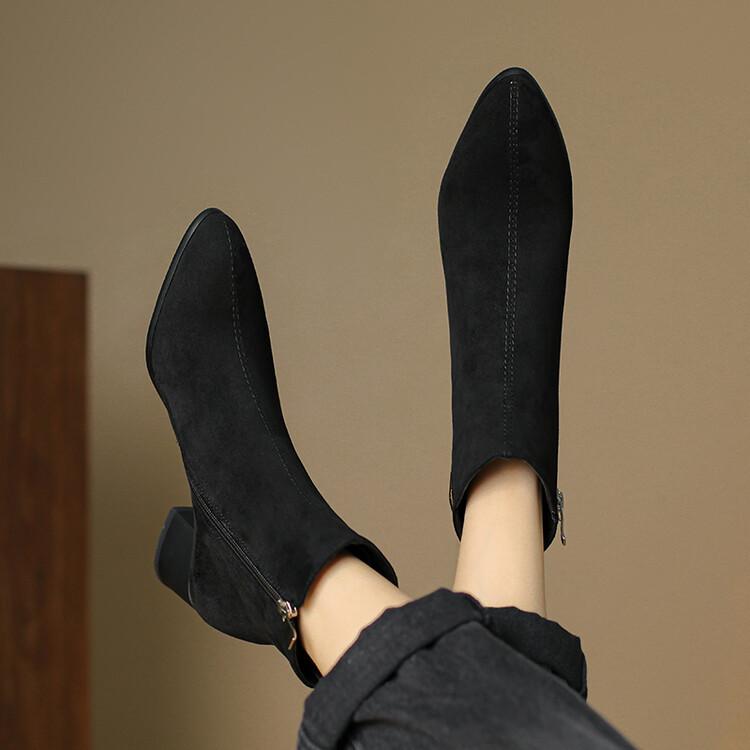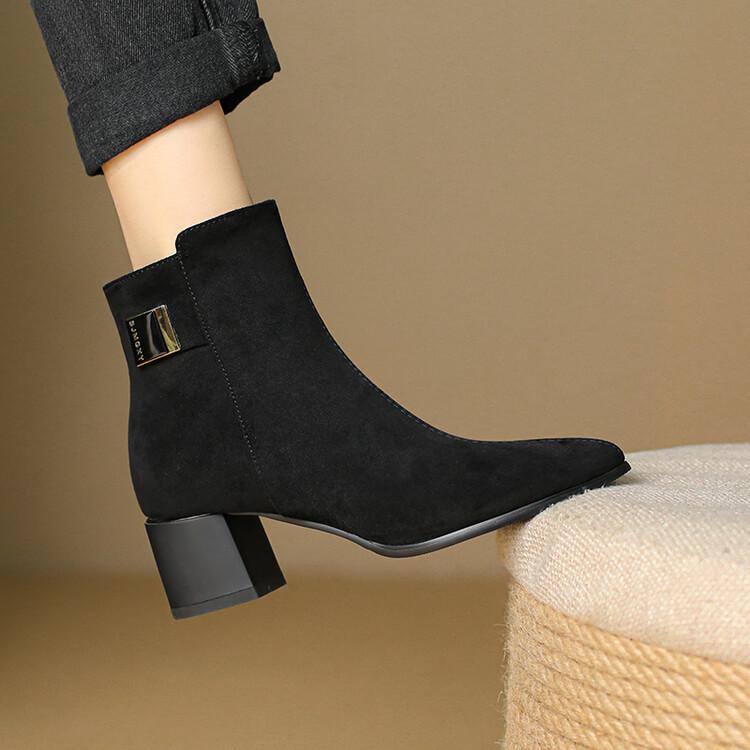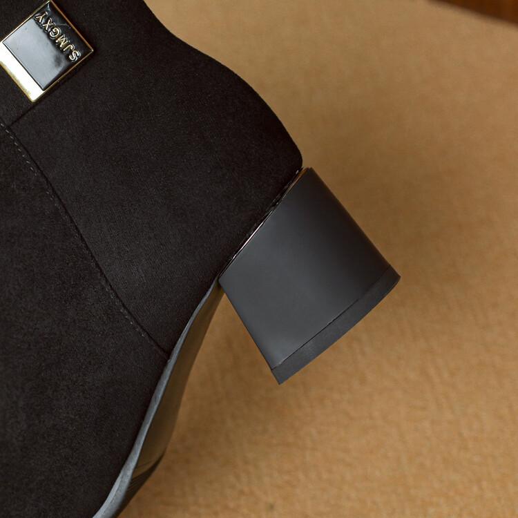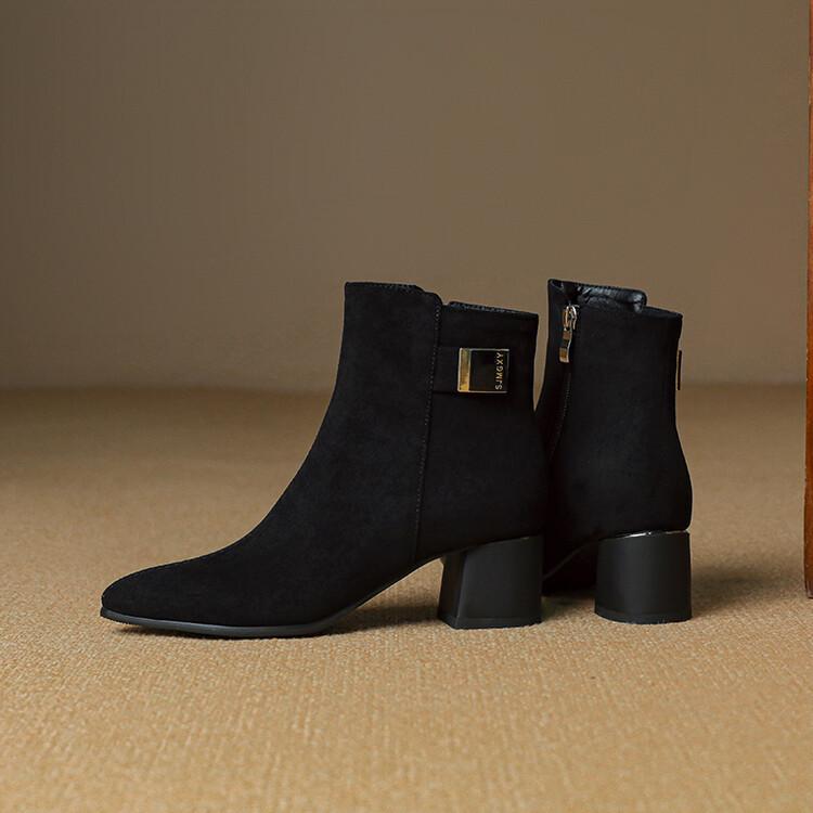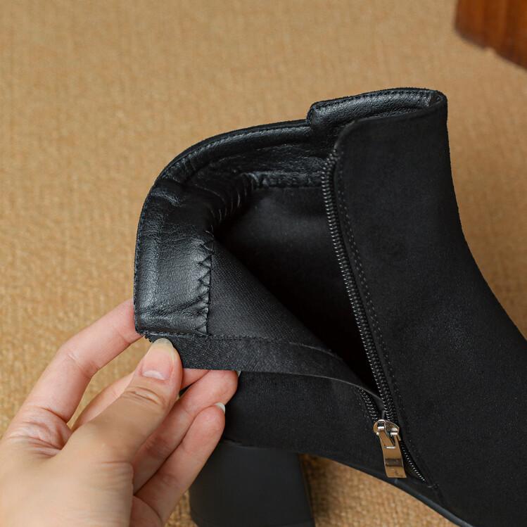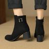 Botas Martin de estilo coreano de otoño e invierno con cremallera lateral para mujer, suela de goma, talla grande, botas de cuero, tacón medio, punta redonda, tacón de bloque, nuevas botas de media caña