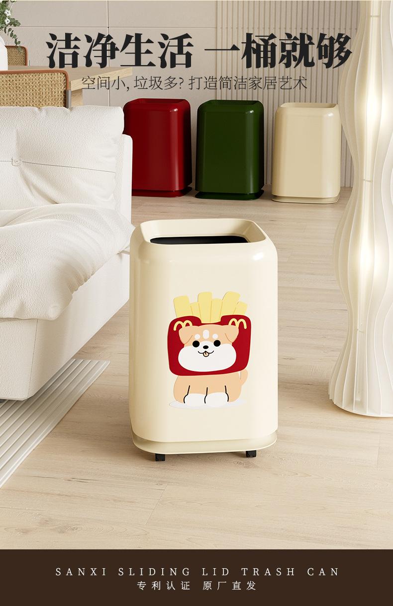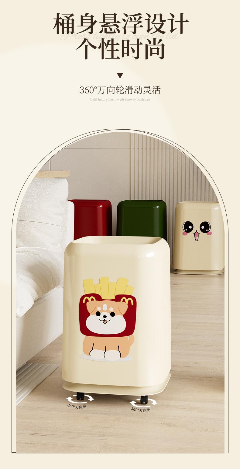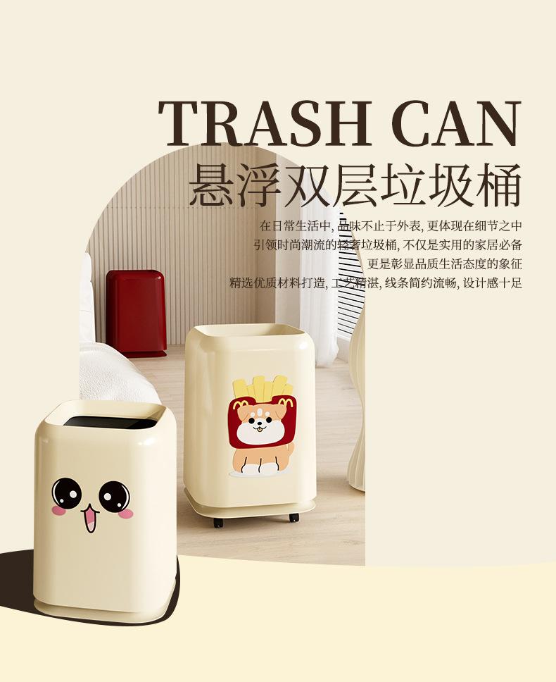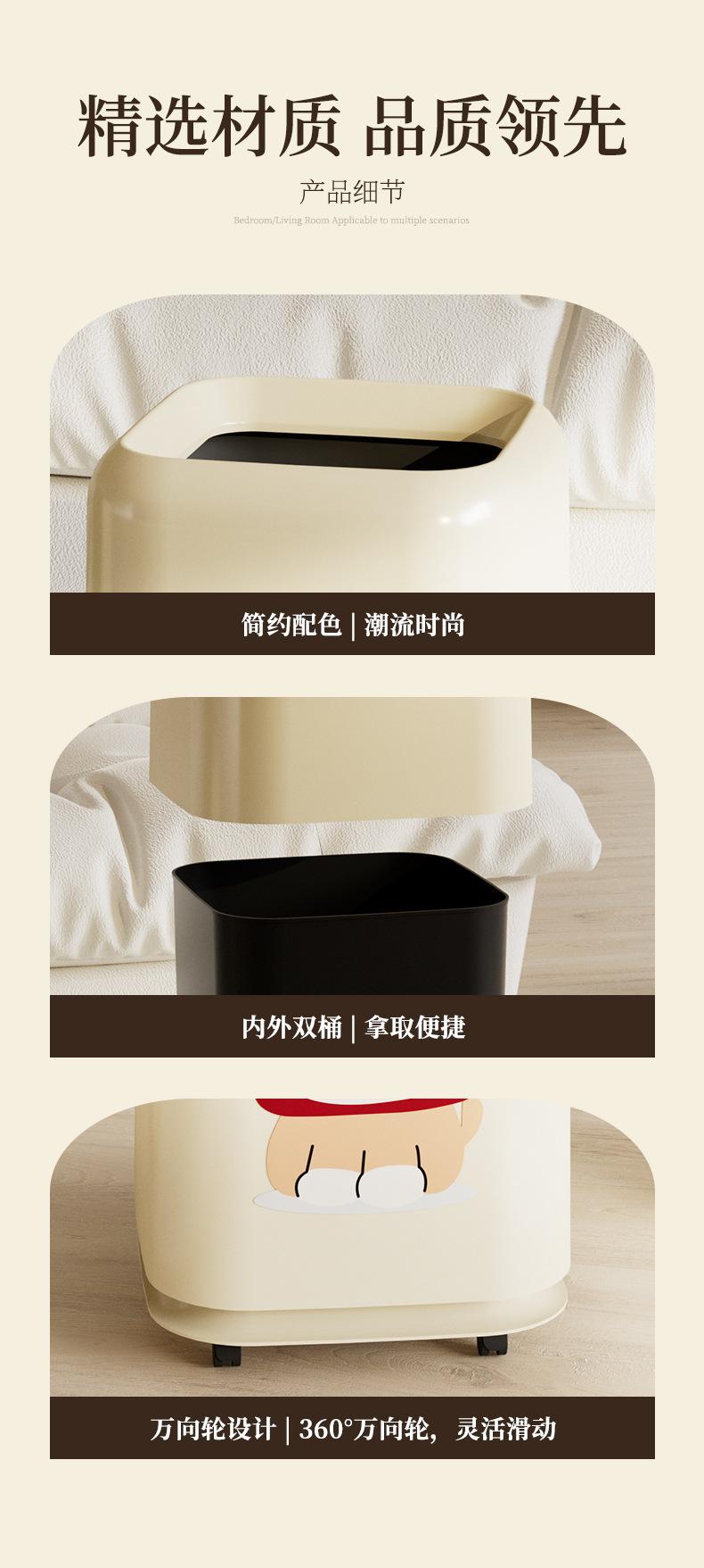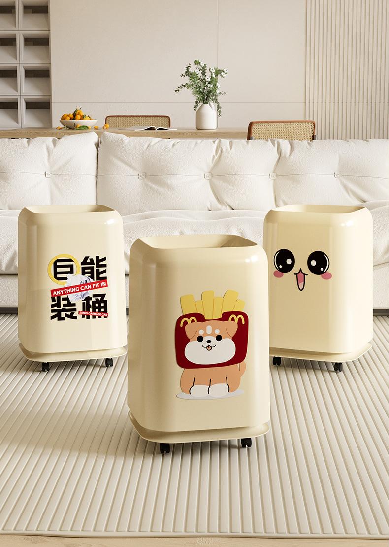 Bote de Basura Creativo para el Hogar de Alto Valor Patrón de Dibujos Animados con Ruedas Sala de Estar Dormitorio Baño Bote de Basura sin Tapa de Doble Capa