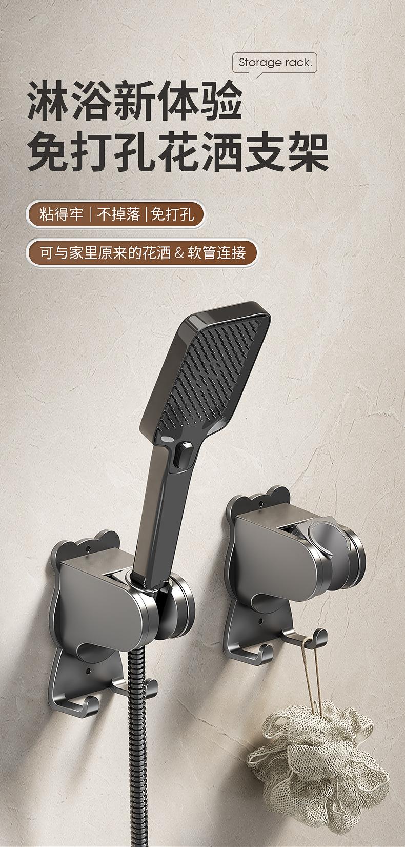 Soporte para ducha sin perforaciones, soporte ajustable para boquilla, artefacto fijo para cabezal de ducha de baño, base de pared para cabezal de ducha de lluvia