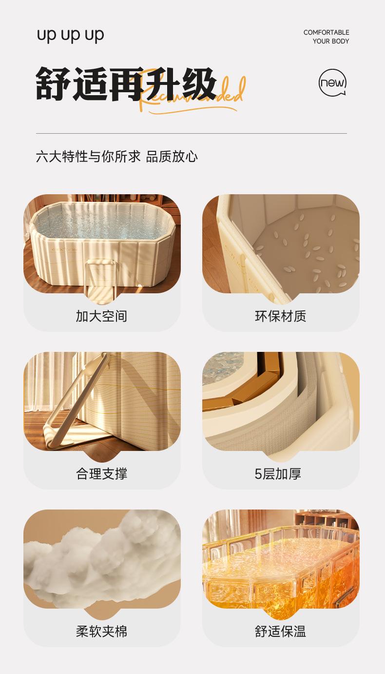 Cubo de baño plegable grande sin instalación Cubo de baño doméstico de temperatura constante Cubo de baño para niños Bañera gruesa para adultos de cuerpo completo