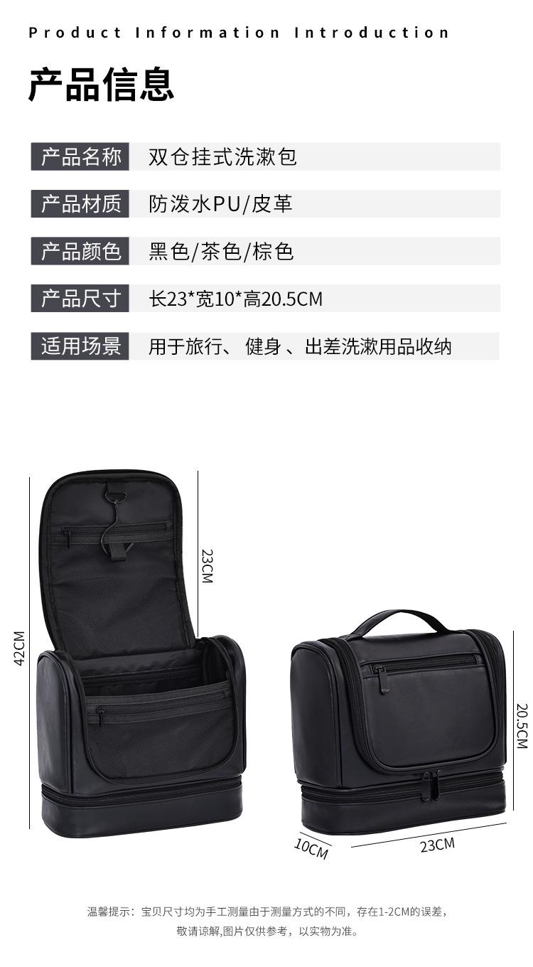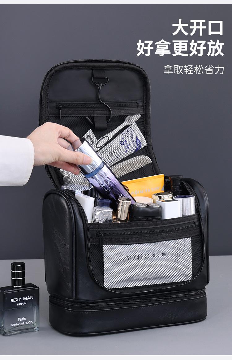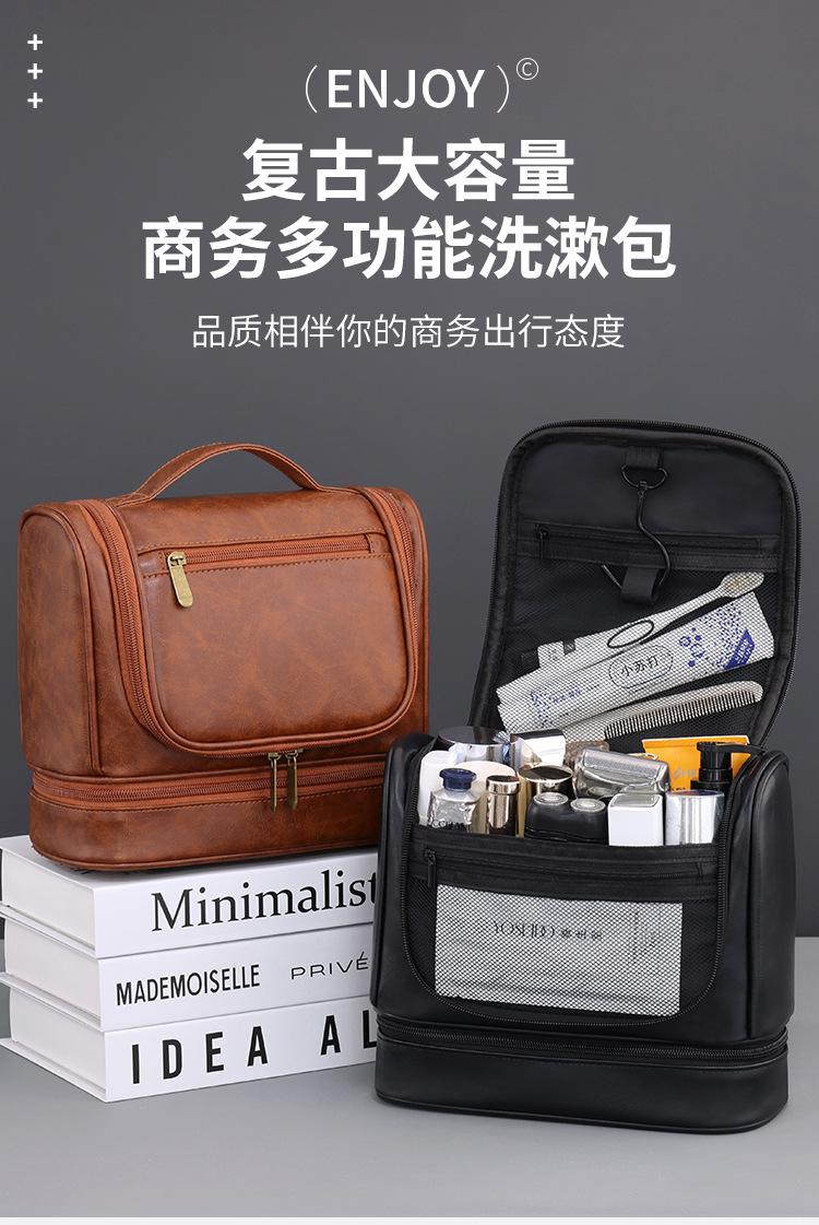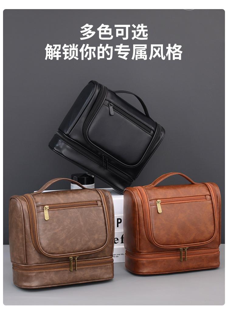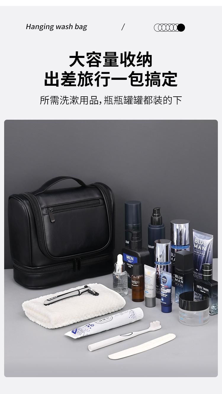 Nuevo Neceser Multifuncional Transfronterizo de Gran Capacidad de Doble Capa Colgante de PU para Hombre, Bolsa de Almacenamiento de Cosméticos Portátil para Viaje