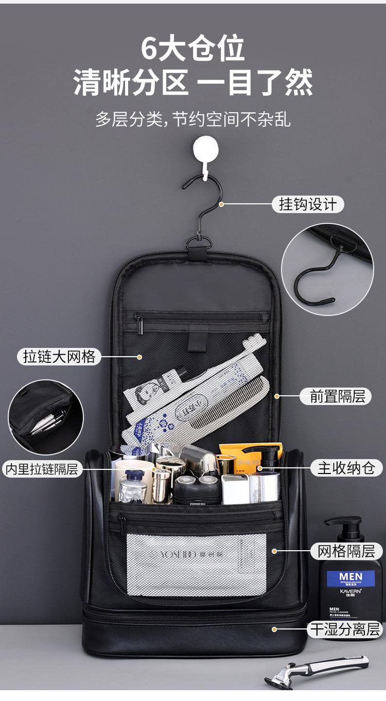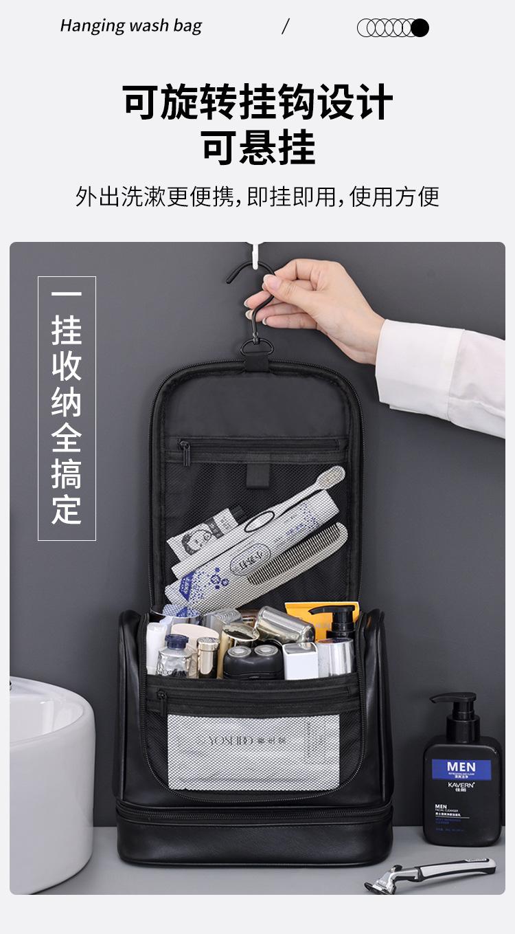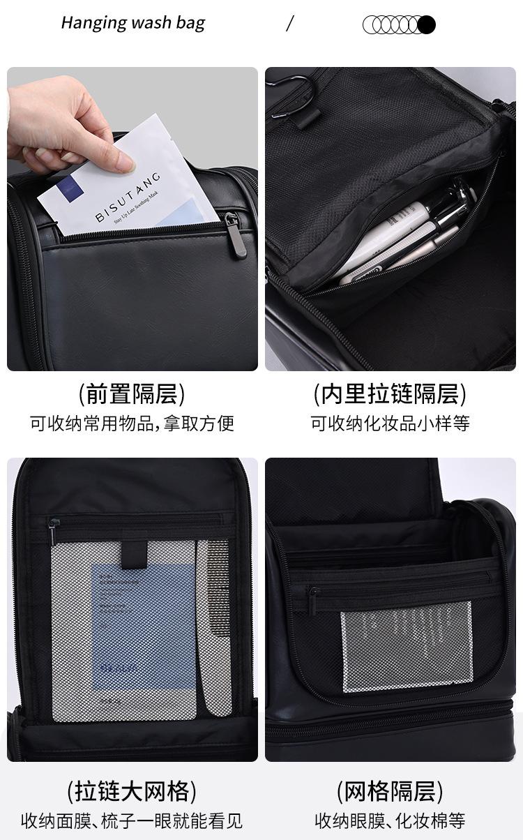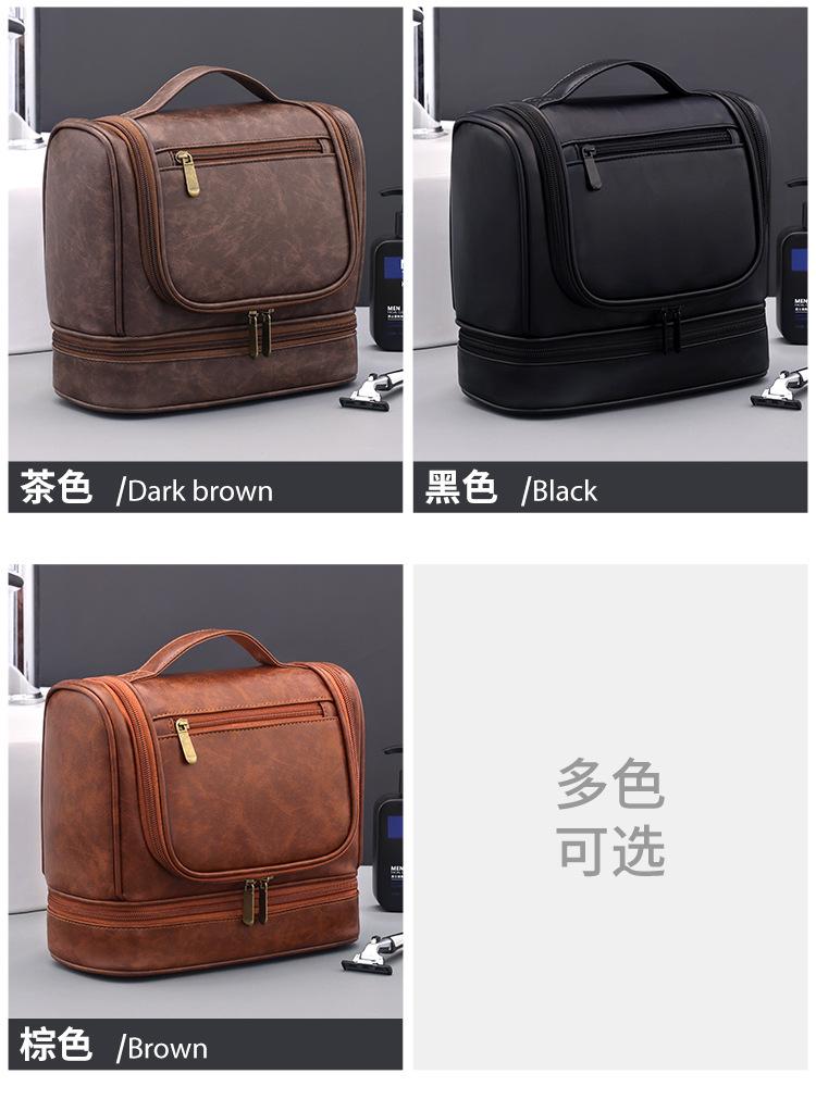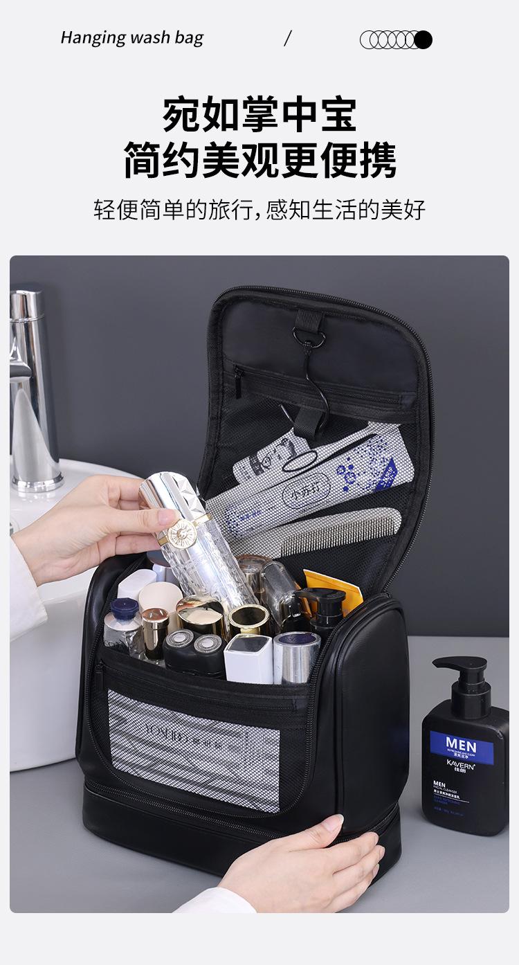 Nuevo Neceser Multifuncional Transfronterizo de Gran Capacidad de Doble Capa Colgante de PU para Hombre, Bolsa de Almacenamiento de Cosméticos Portátil para Viaje