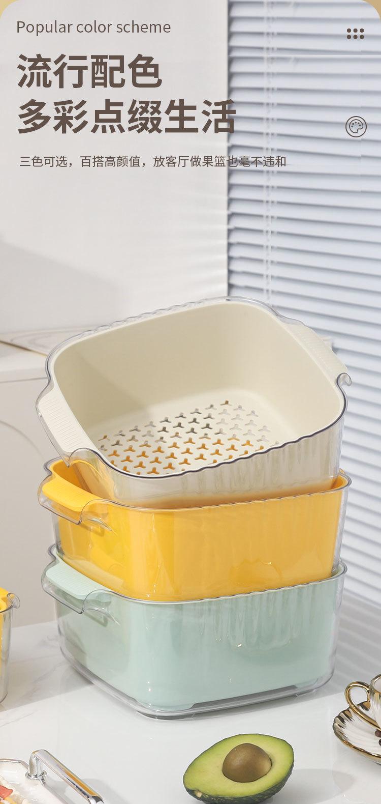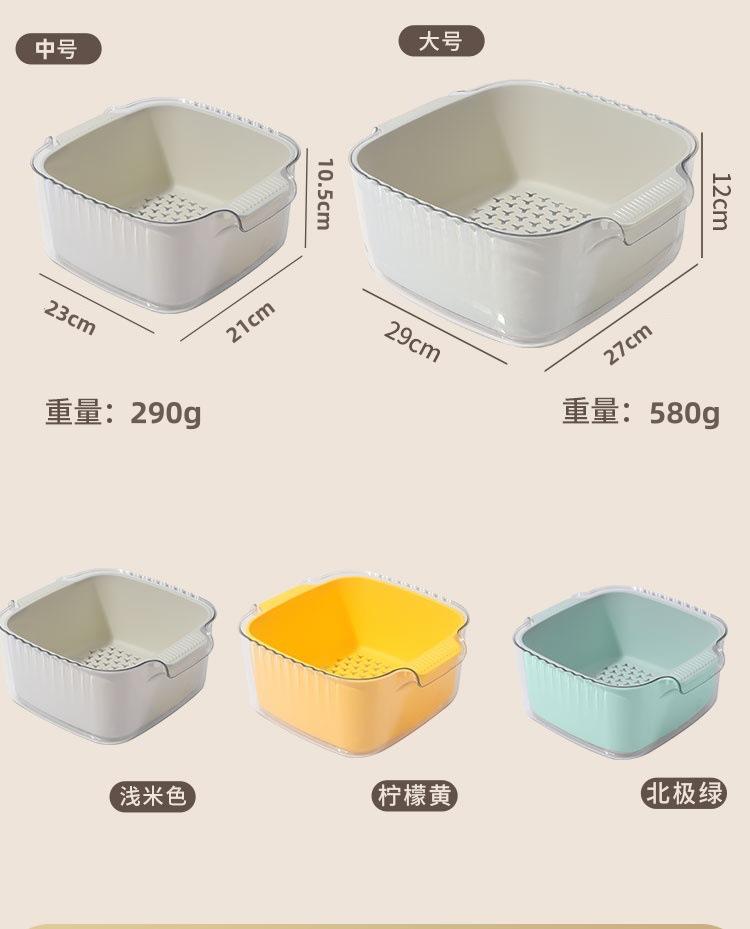 Medium transparent-yellow double-layer drain basket [pet+pp], Medium transparent-green double layer drain bask...