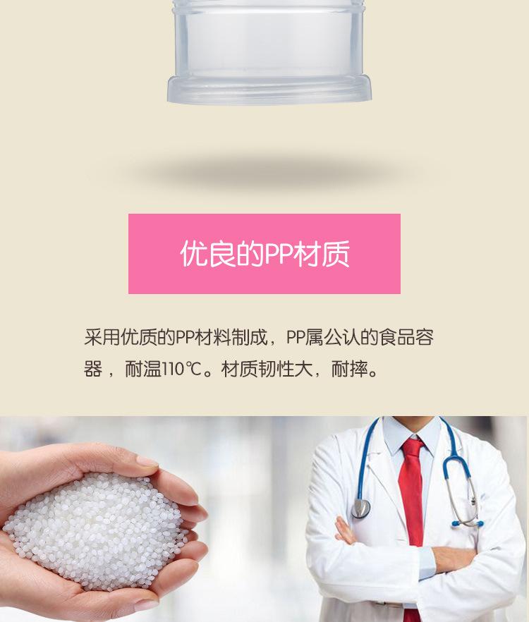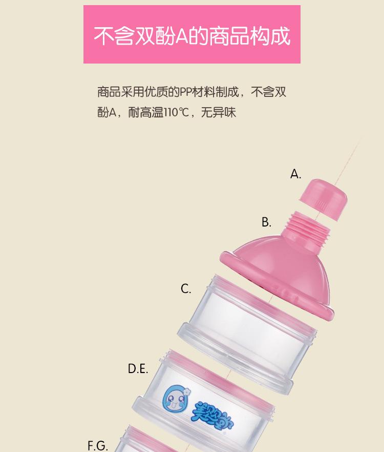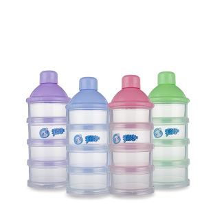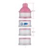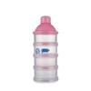 Contenedor de plástico transparente para leche en polvo, con un total de cuatro capas, cada capa contiene la cantidad de leche en polvo para una toma para un bebé, conveniente para llevar.