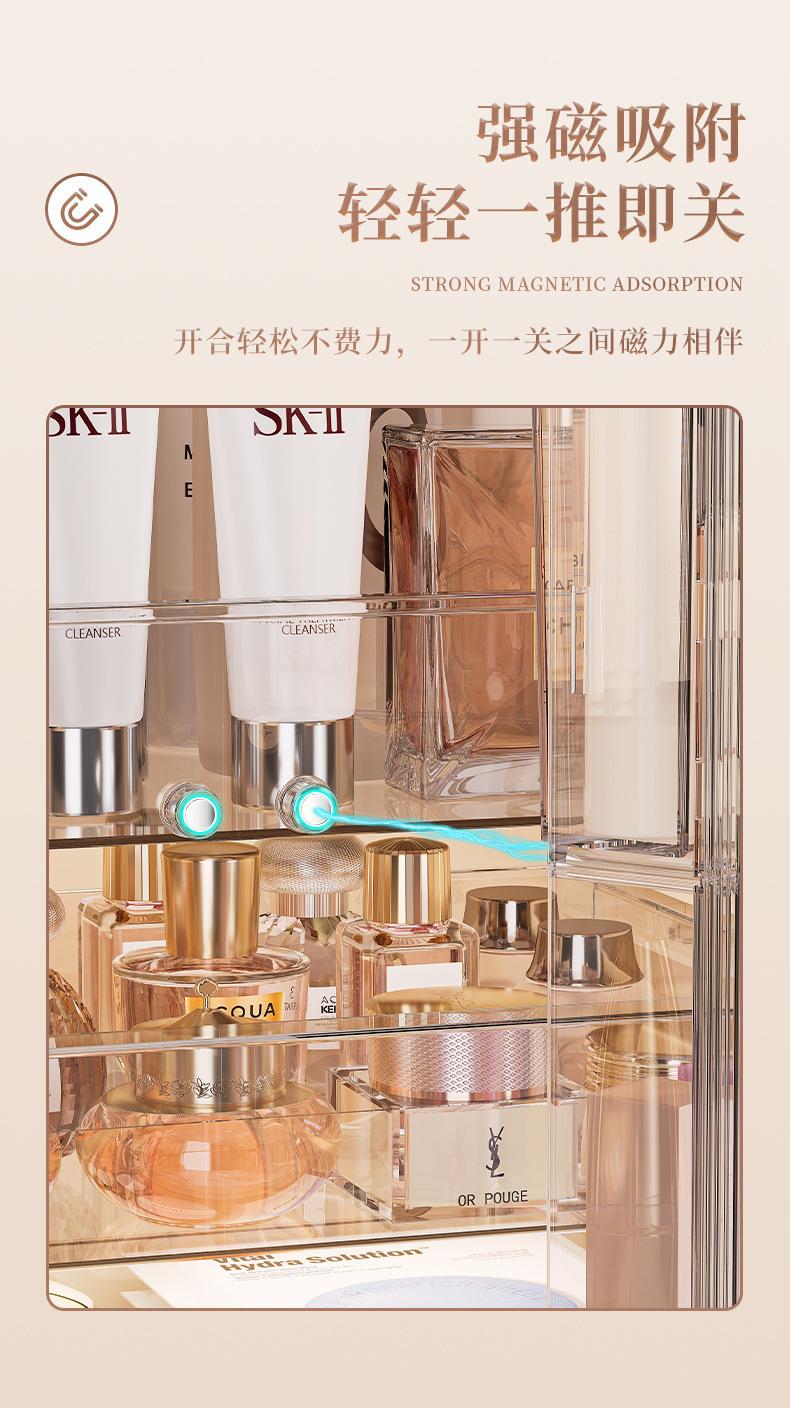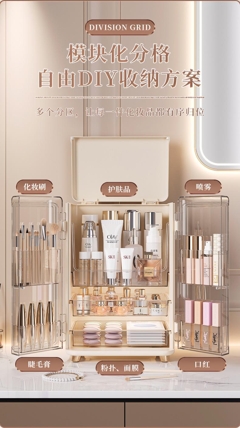 Caja de Almacenamiento de Cosméticos de Gran Capacidad Almacenamiento a Prueba de Polvo Escritorio de Tocador Estante de Almacenamiento para Productos para el Cuidado de la Piel Gabinete de Maquillaje para Lápices Labiales