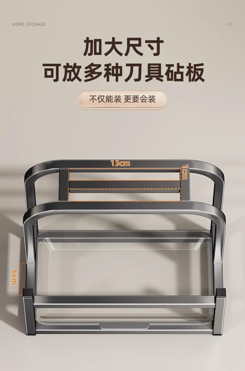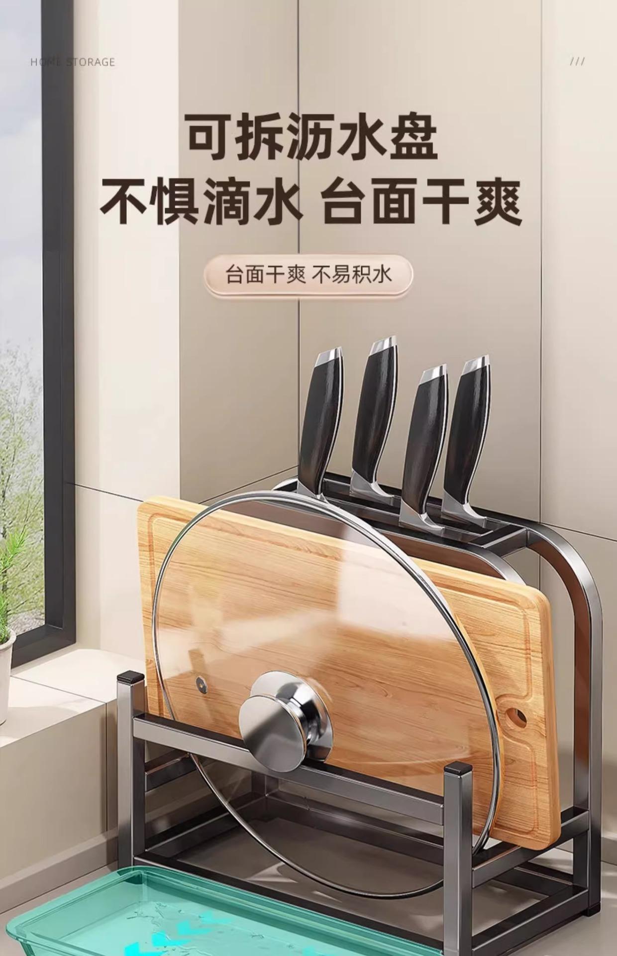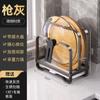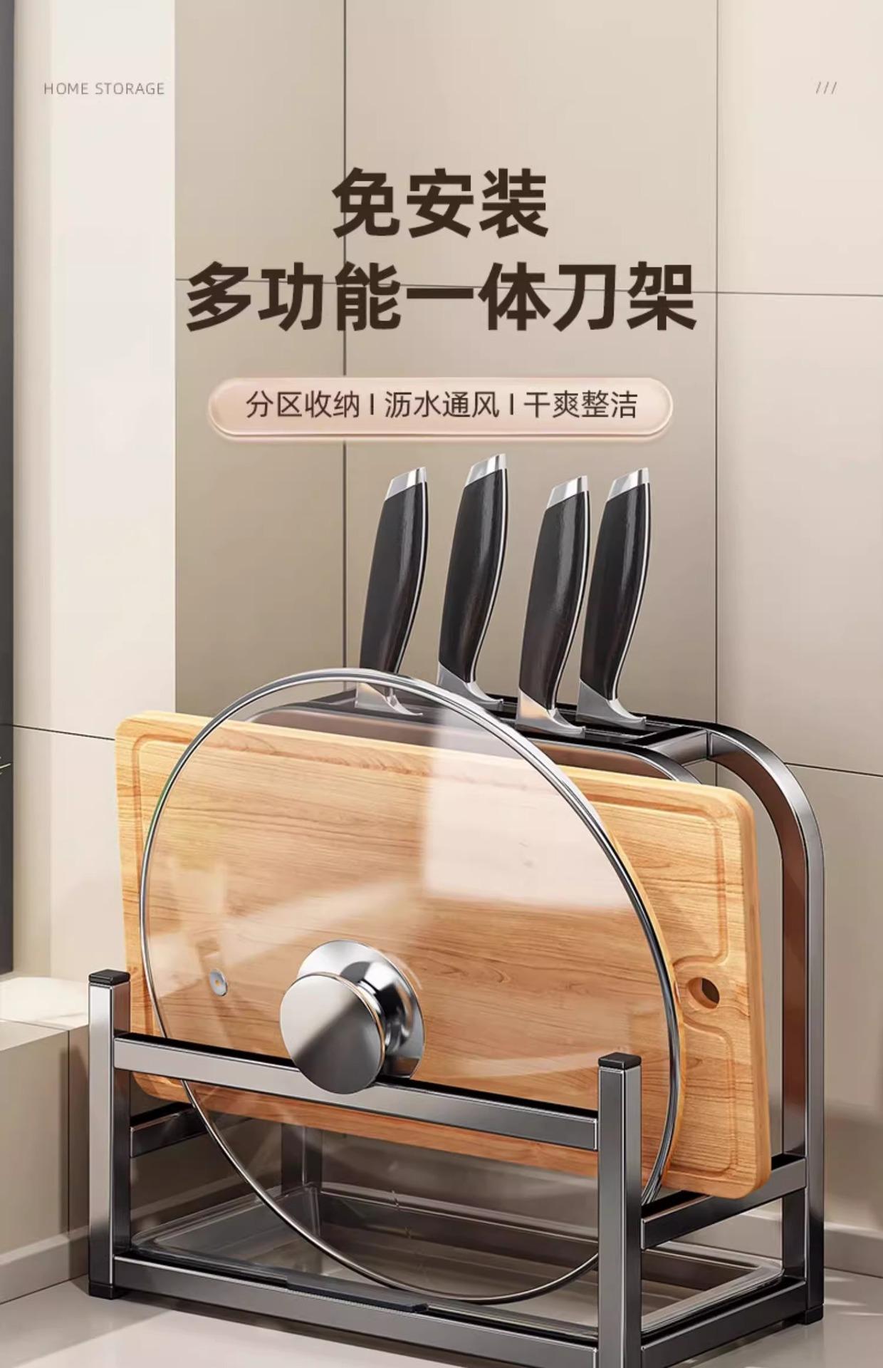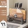 [multifunctional all-in-one] knife holder + chopping board/pot lid holder - gun ash (free hooks*2), With drain...