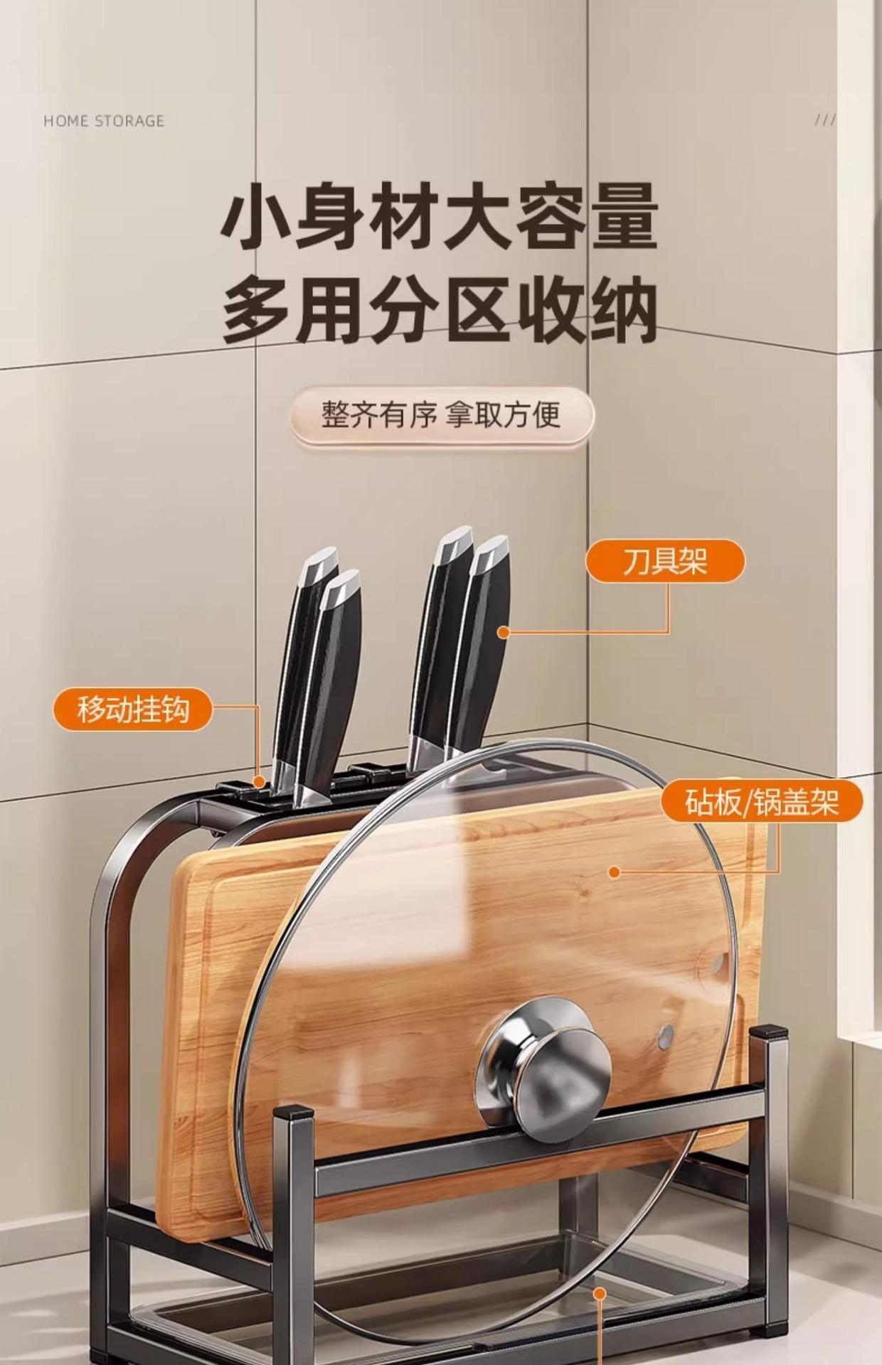 Estante para cuchillos de cocina, estante de almacenamiento, cuchillo de cocina, tabla de cortar, tapa de olla, estante de almacenamiento integrado, tabla de cortar multifuncional, estante de almacenamiento para cuchillos