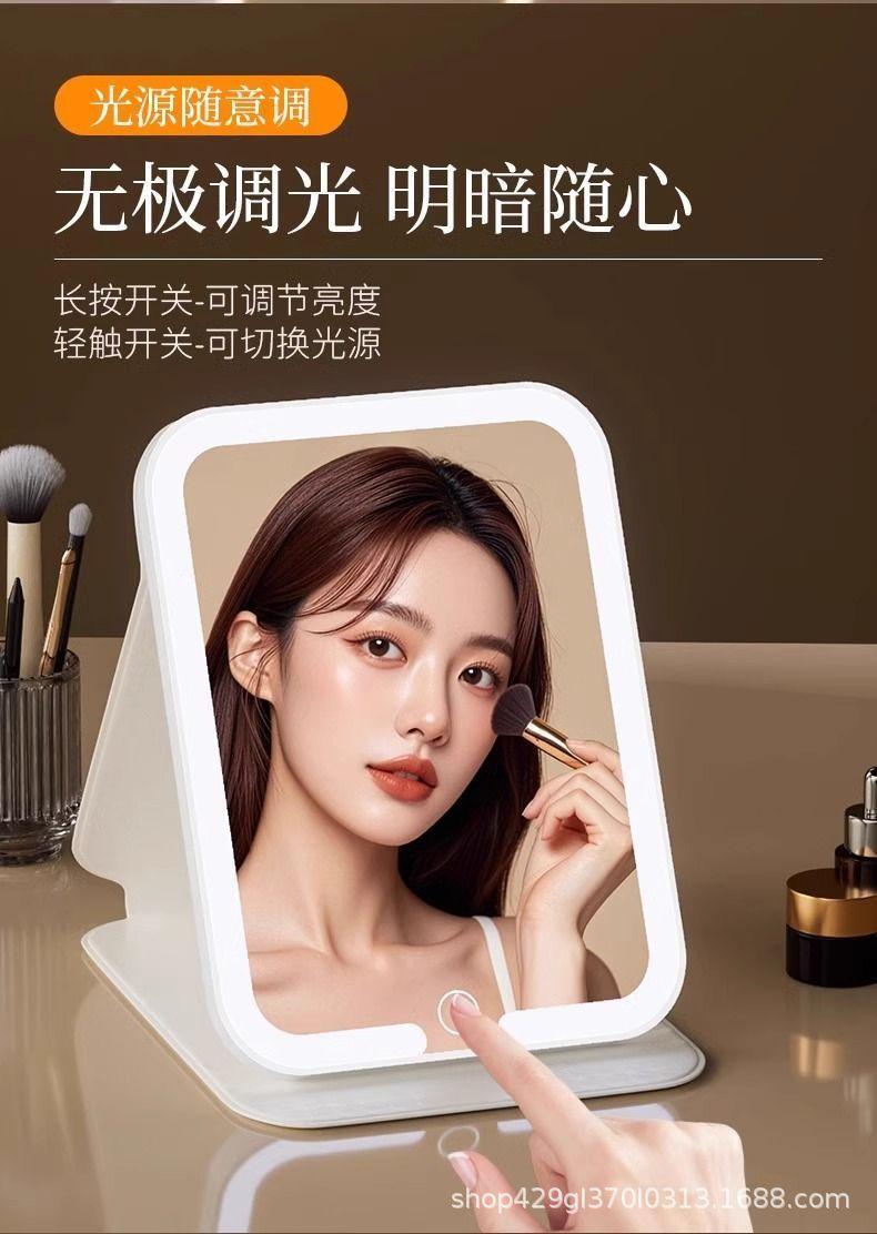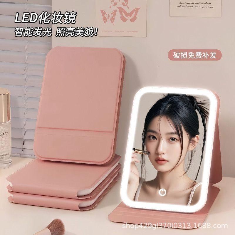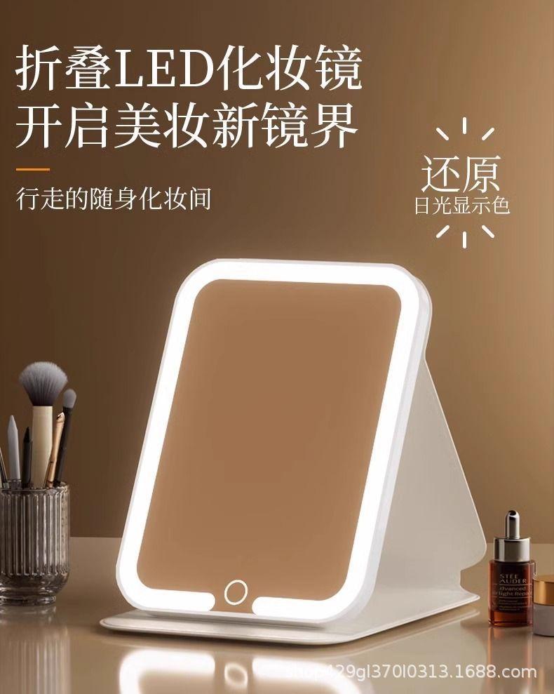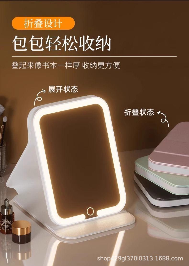 Espejo de Maquillaje LED con Luz, Plegable, Regulable, Portátil, Estilo Ins, Espejo de Escritorio para Dormitorio de Estudiantes con Luz Tricolor