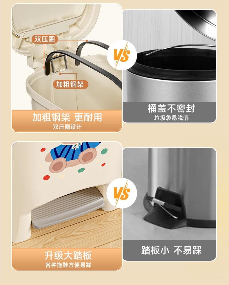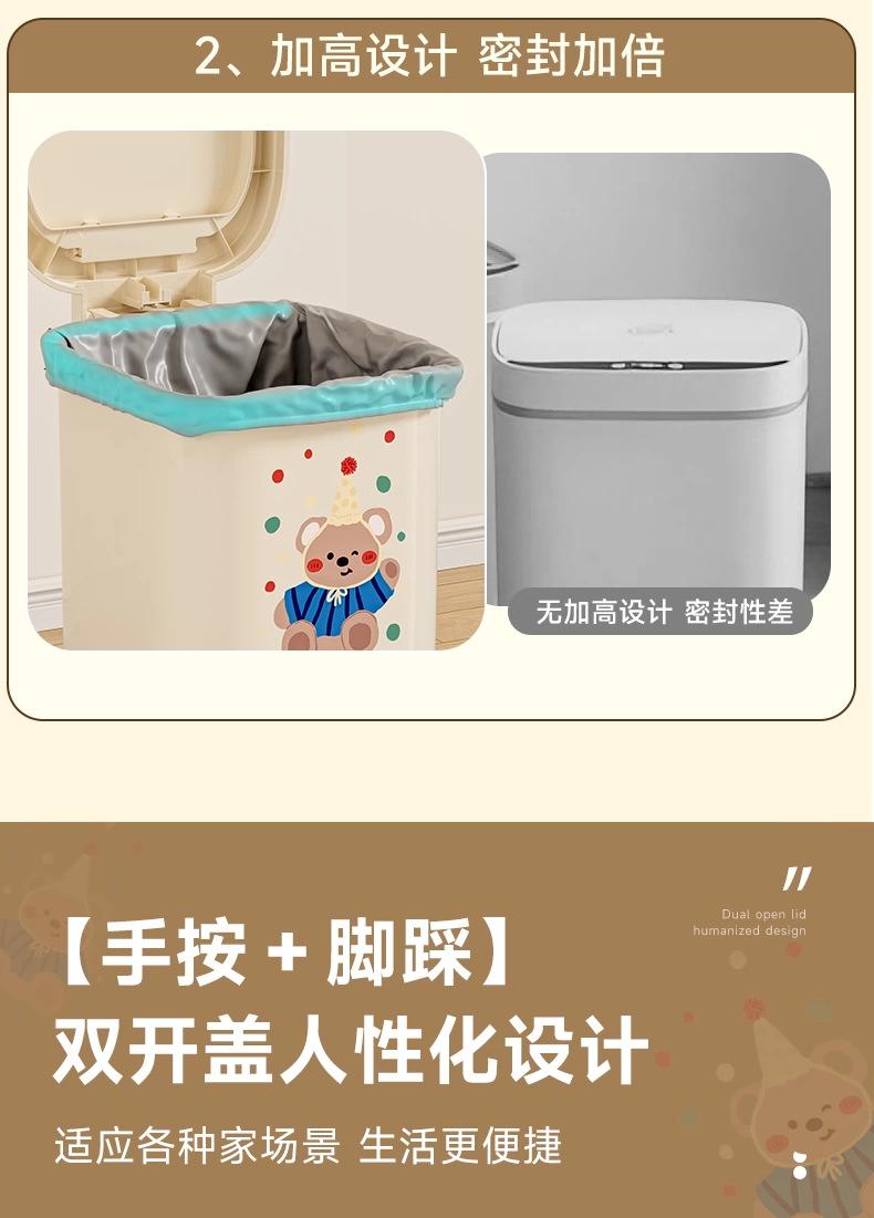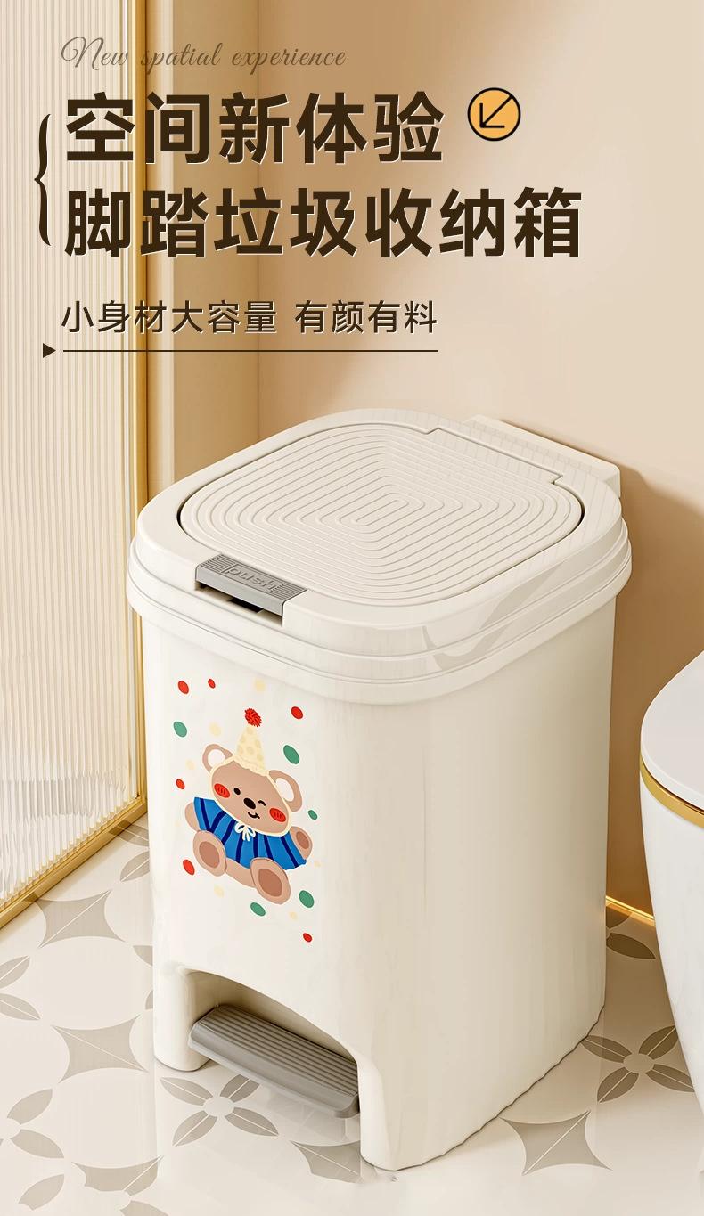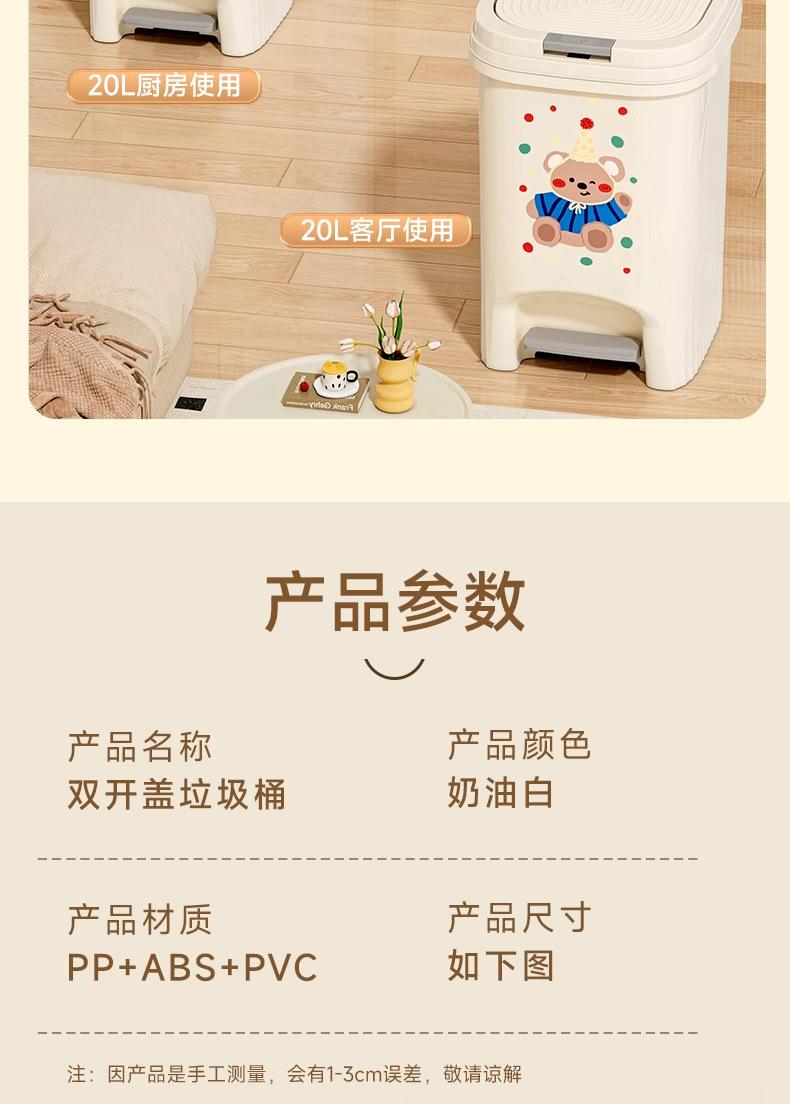 Bote de Basura Doméstico Nuevo Estilo Dibujos Animados de Aspecto Sofisticado Gran Capacidad Doble Apertura Cocina Sala de Estar Cesto para Papel Higiénico Venta al Mayoreo