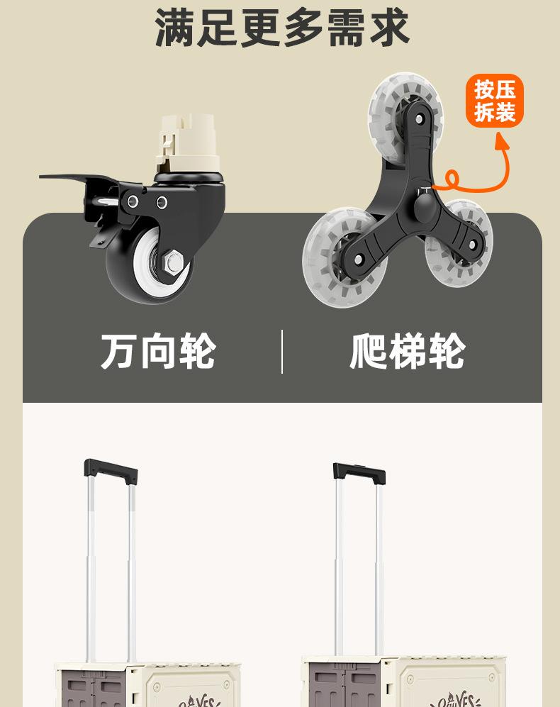 Khaki large [8 wheels for climbing stairs] foldable/upgraded large capacity