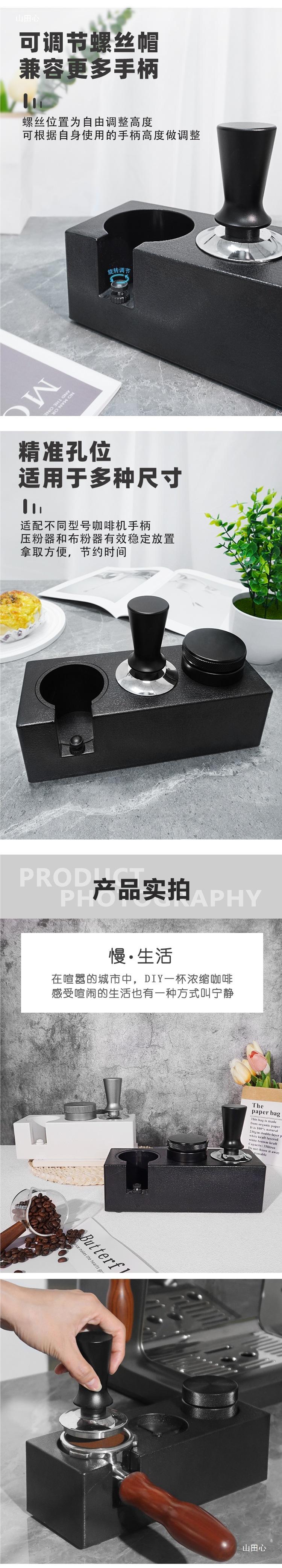 Base para prensar café de tres piezas, base dispensadora de polvo 51/53/58 mm, soporte para mango, pisón para polvo, base de almacenamiento