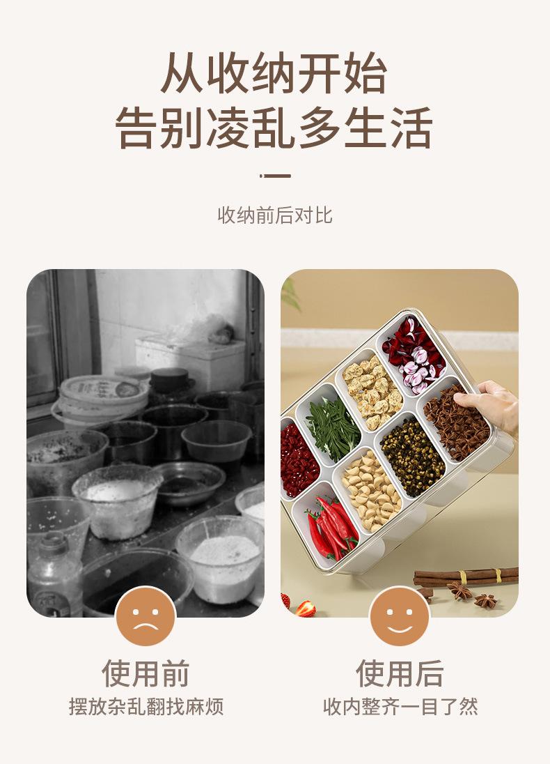 Caja de Almacenamiento Sellada de Especias Domésticas de Plástico Cocina Cuadrada Anís Estrella Canela Pimienta Anís Semilla Chile Seco Caja de Almacenamiento