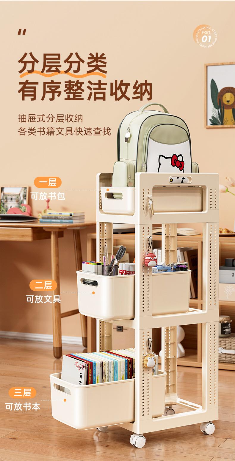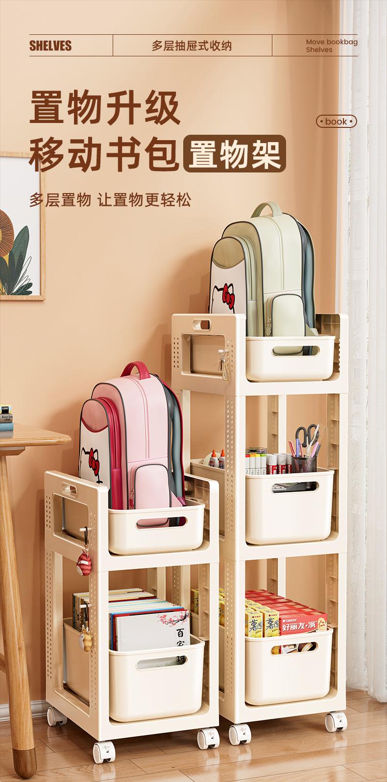 Estante Móvil con Ruedas para Guardar Libros y Mochilas Escolares, Gabinete Bajo Ruedas para Escritorio de Estudiante en el Hogar, Estante para Guardar Mochilas Escolares