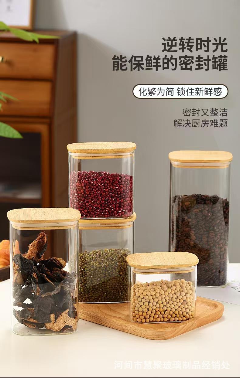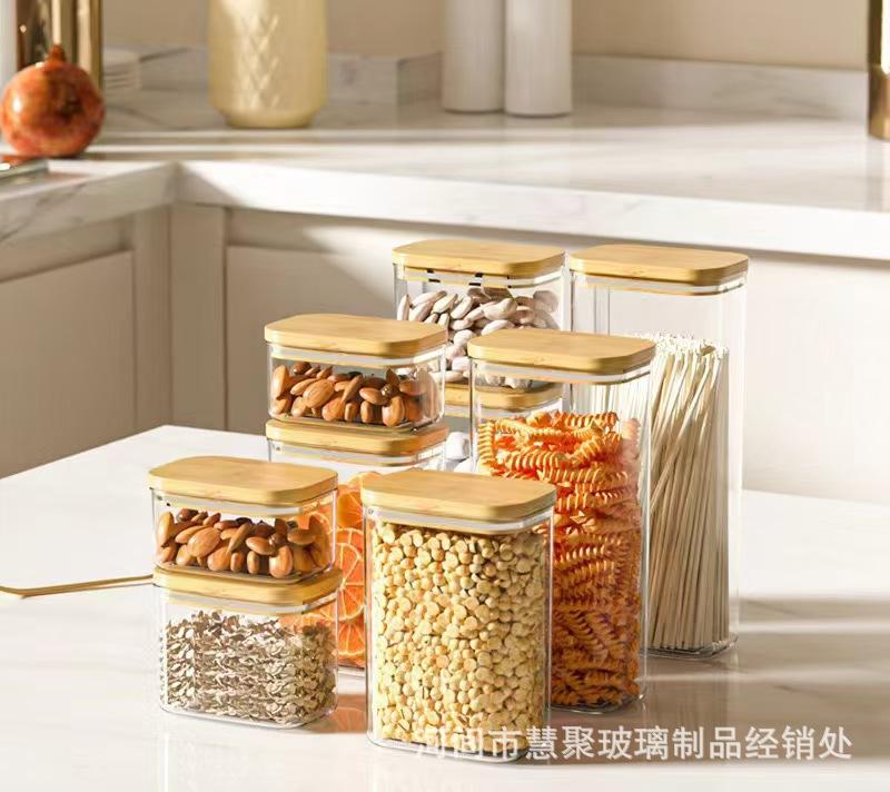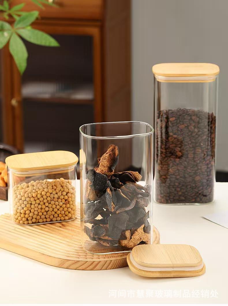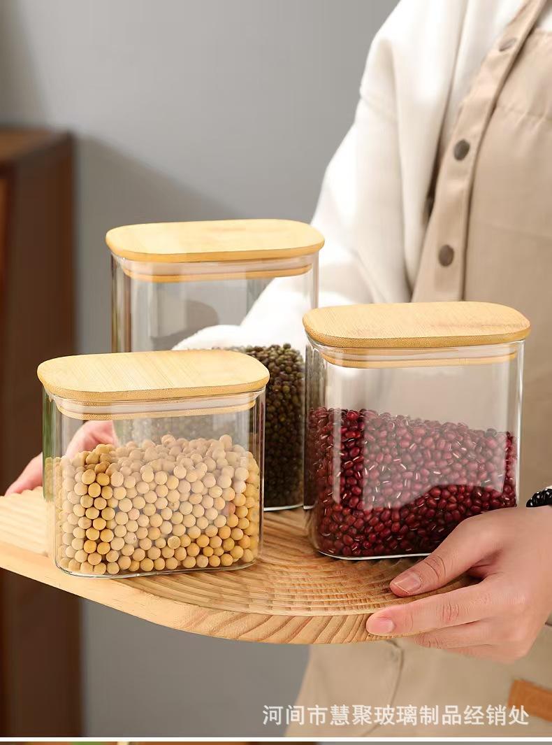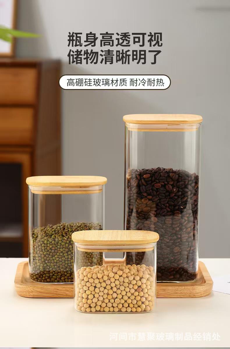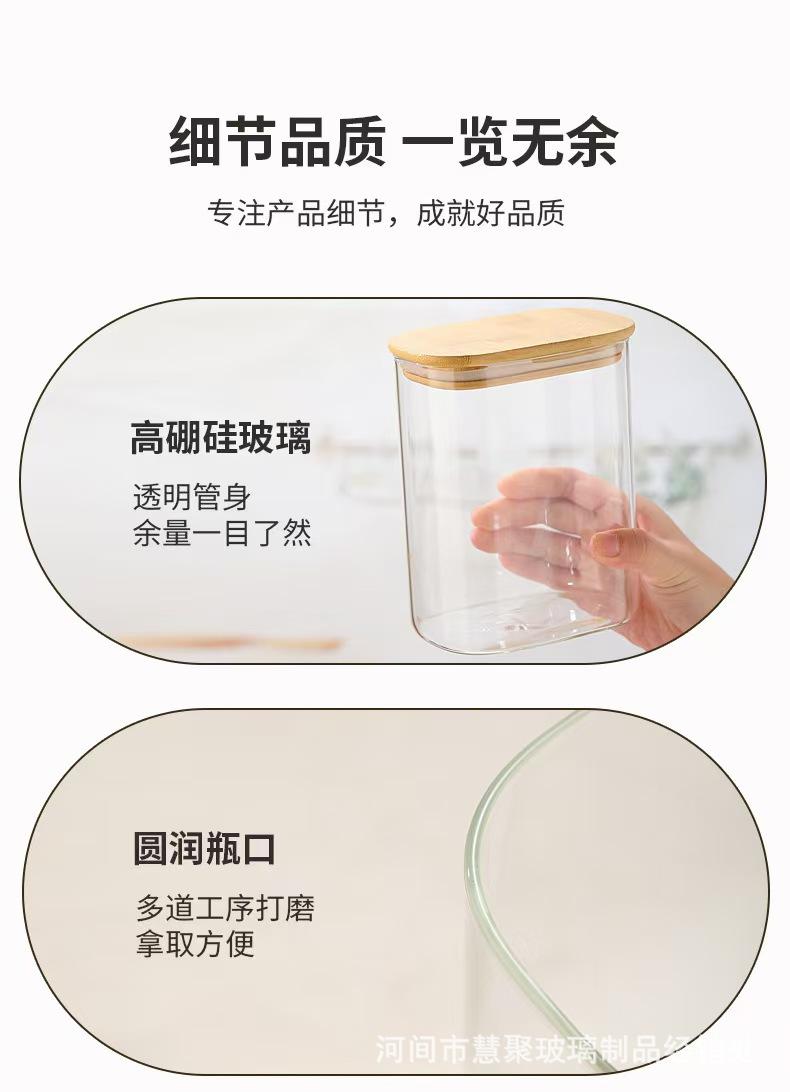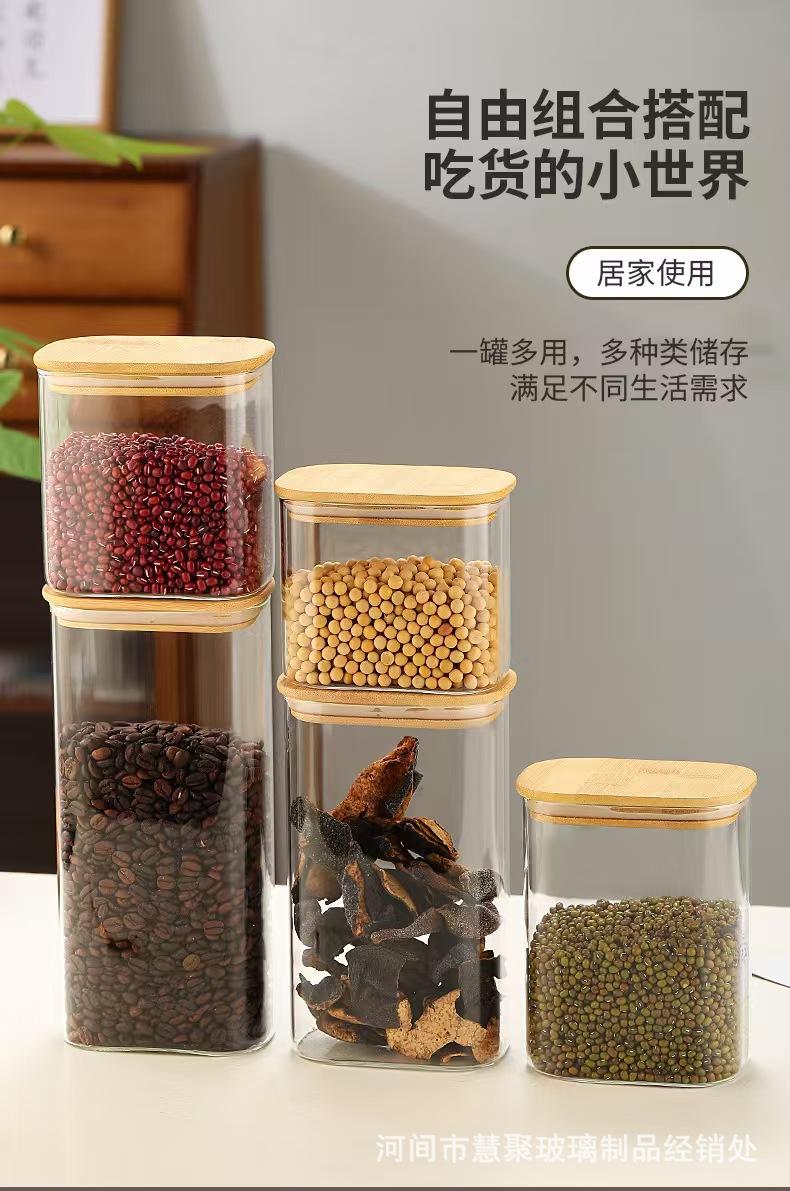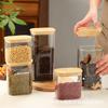 Frasco de Vidrio Rectangular Sellado Frasco de Té para el Hogar Tapa de Bambú Frasco de Almacenamiento Vidrio de Alto Borosilicato Botella para Almacenamiento de Granos