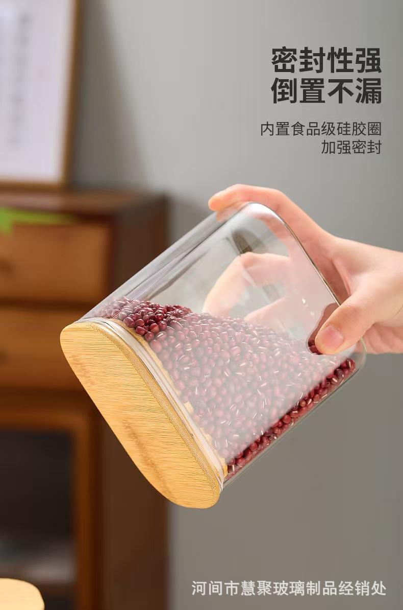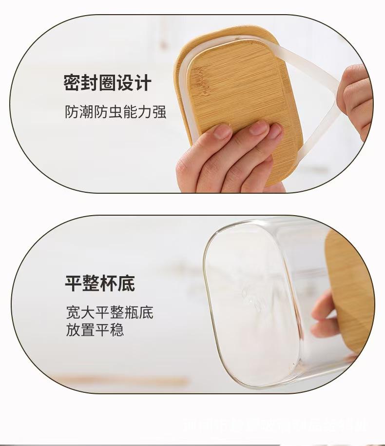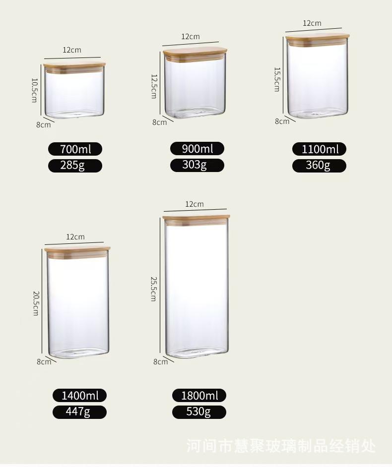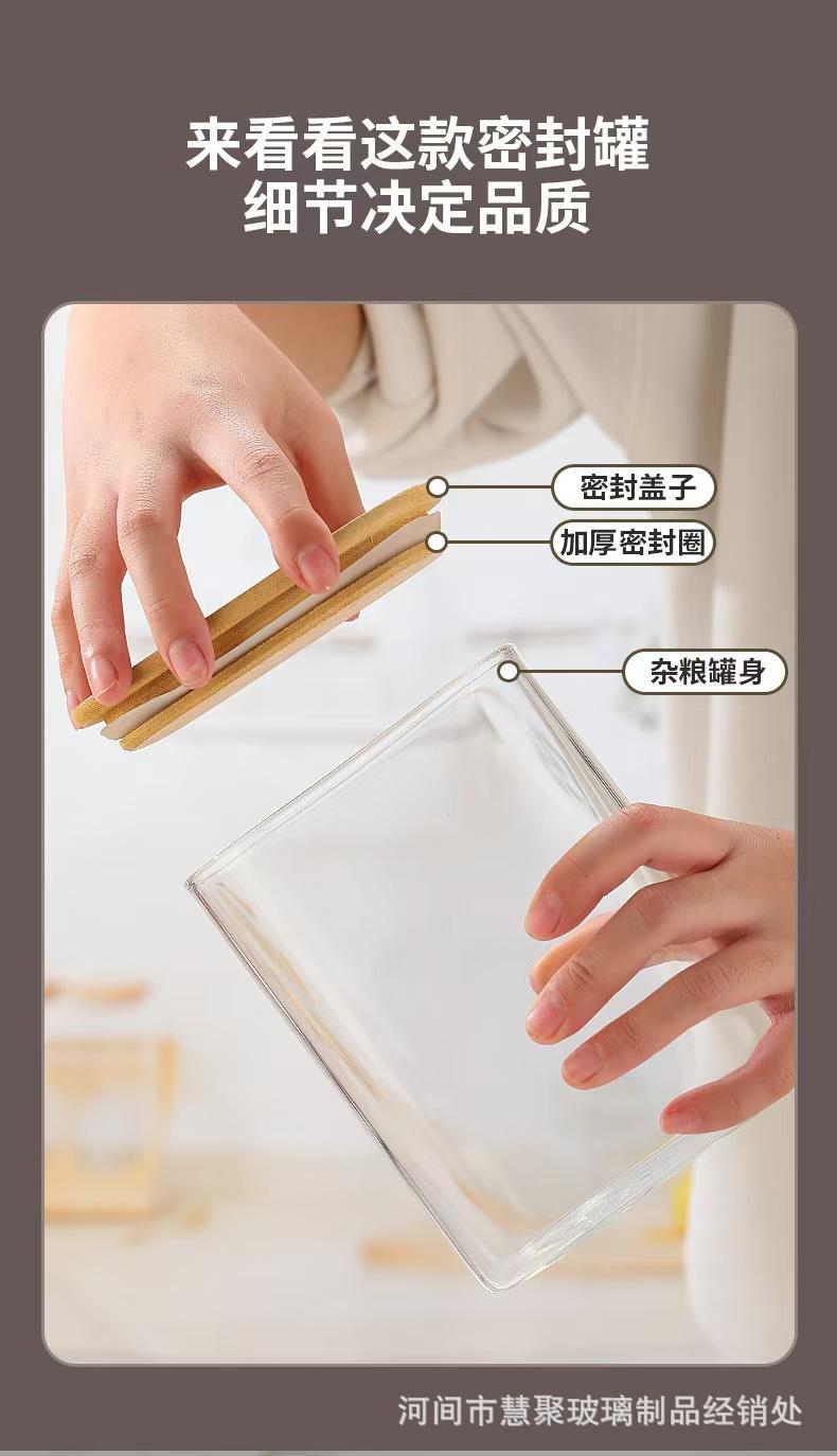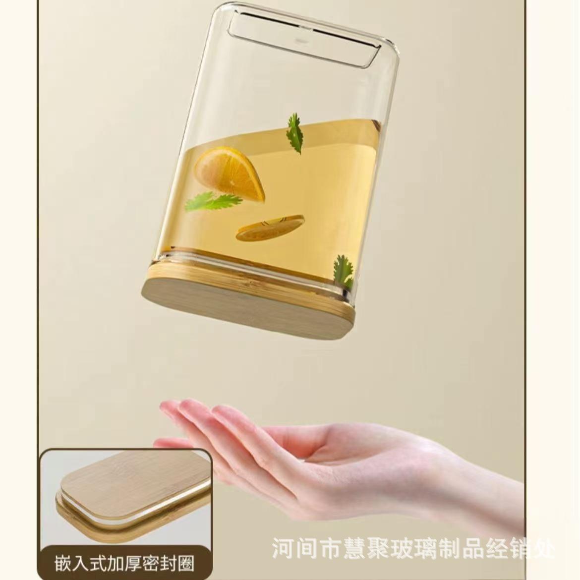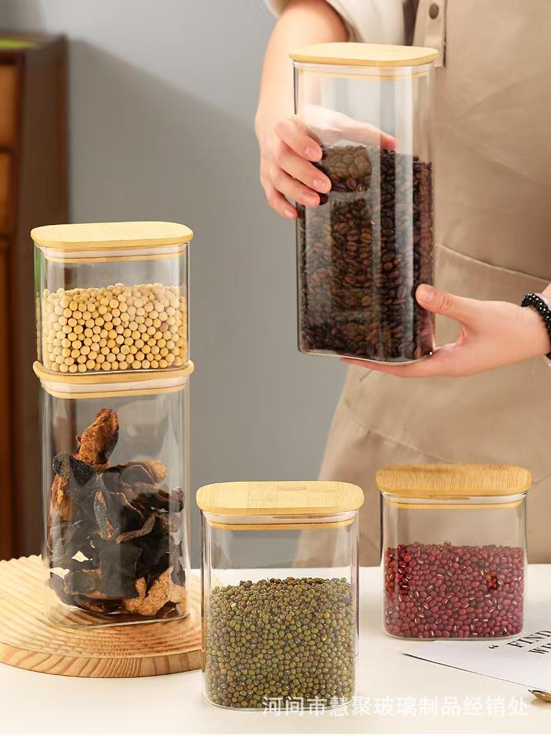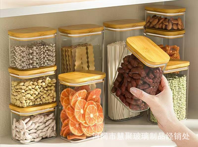 Frasco de Vidrio Rectangular Sellado Frasco de Té para el Hogar Tapa de Bambú Frasco de Almacenamiento Vidrio de Alto Borosilicato Botella para Almacenamiento de Granos