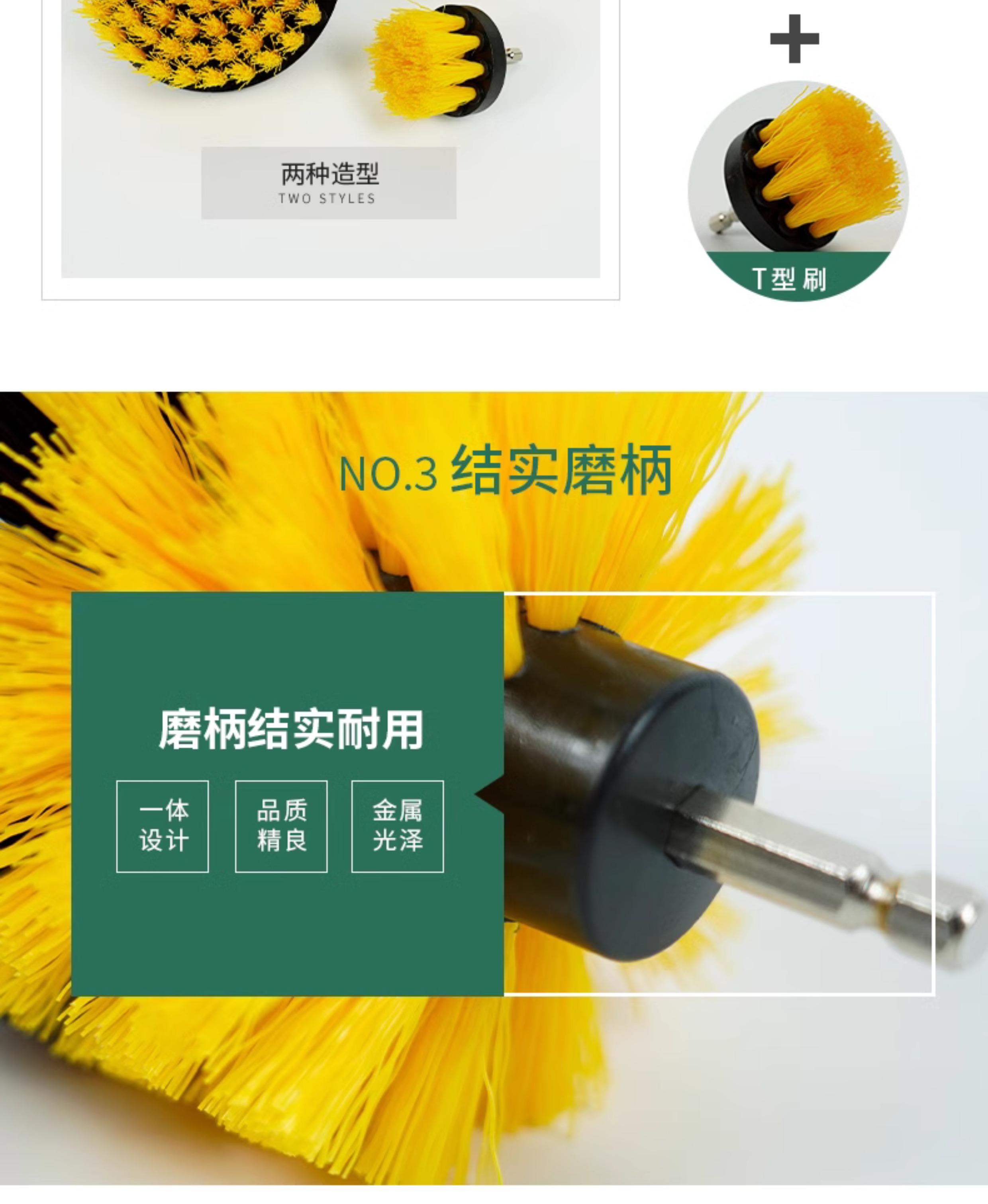 Electric drill brush head hard bristle three-piece set, 5inch flat brush, 150mm extension rod, 4inch flat brus...