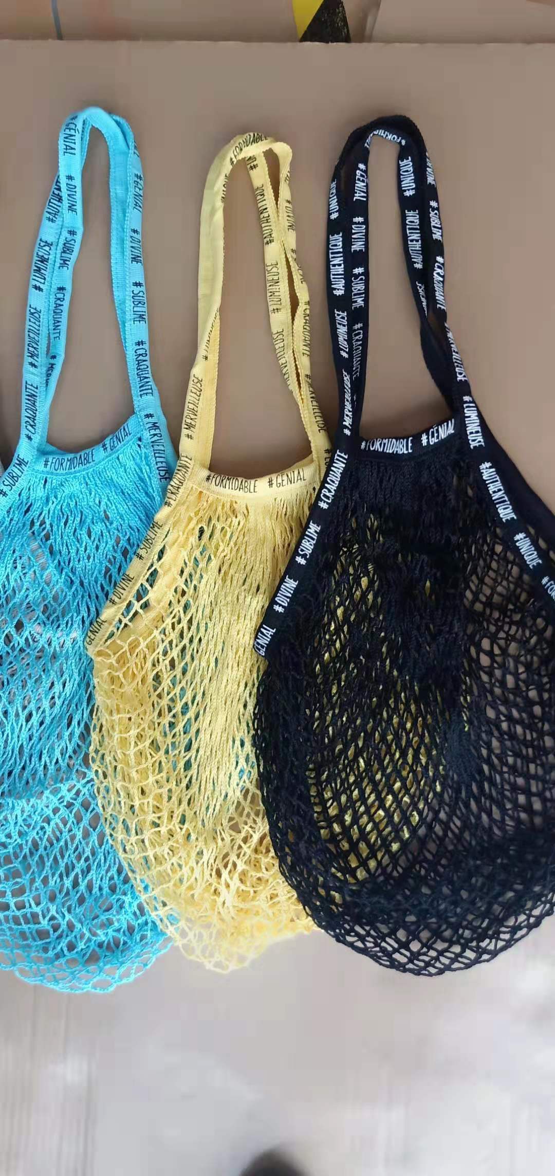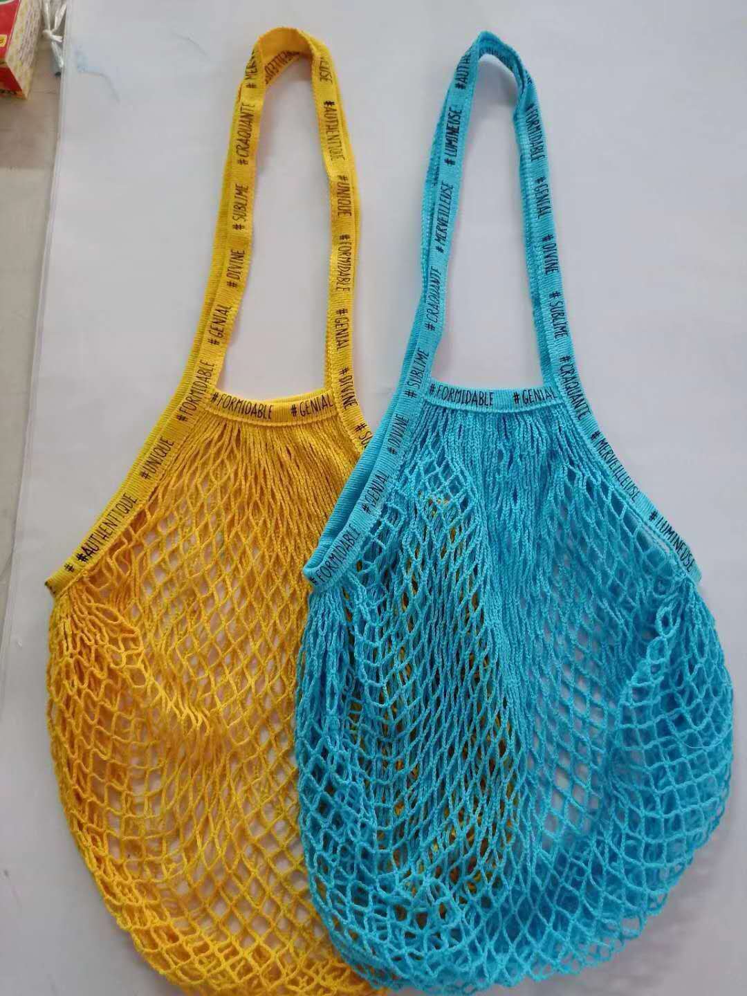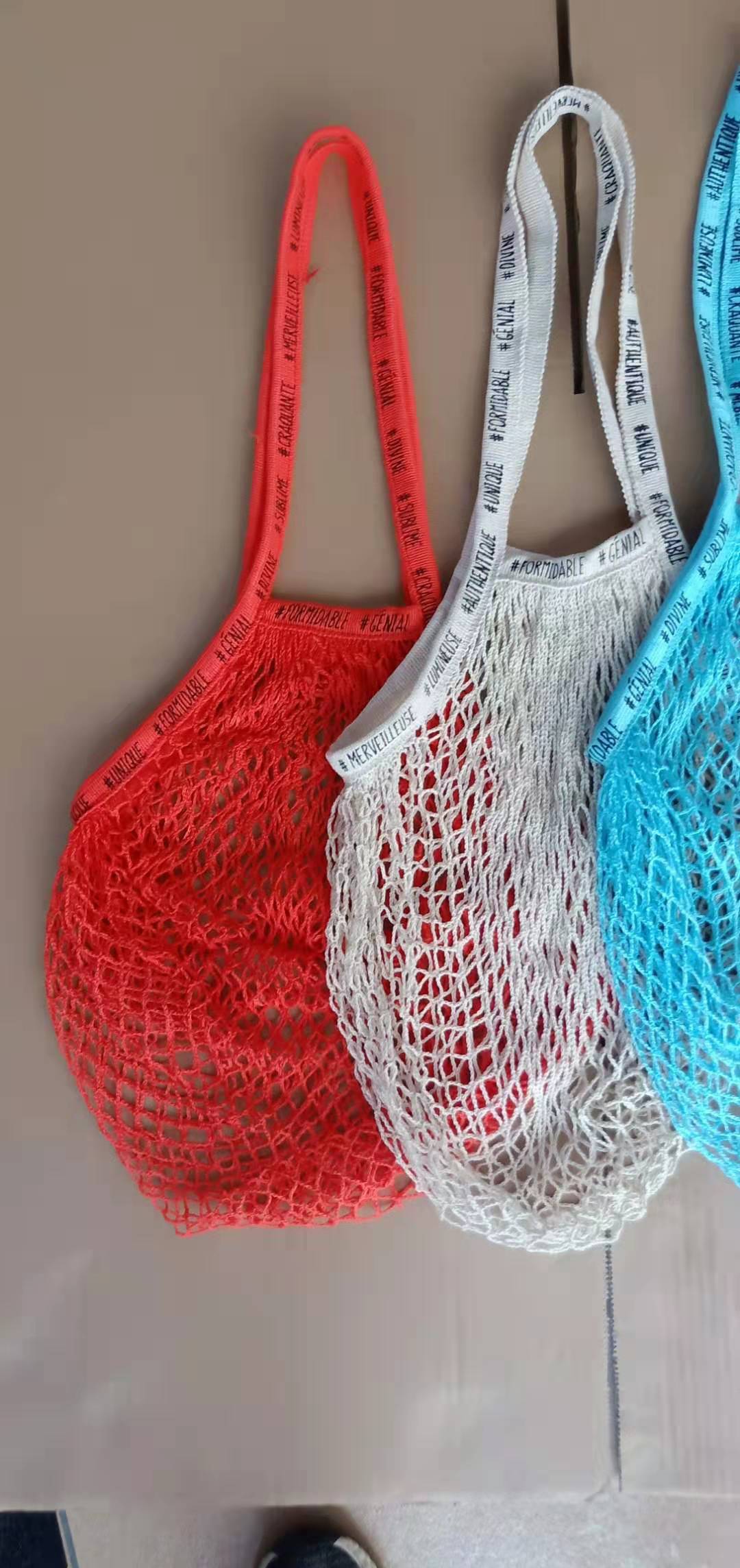 Wow, Bolsa de Algodón Portátil Calada, Bolsa de Compras de Supermercado, Correa Ancha, Bolsa de Malla Tejida Plegable, Bolsa de Malla para Frutas