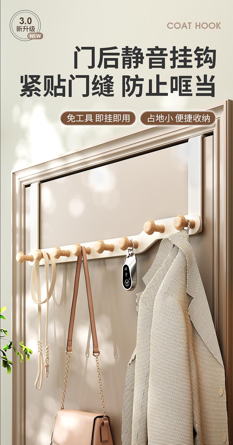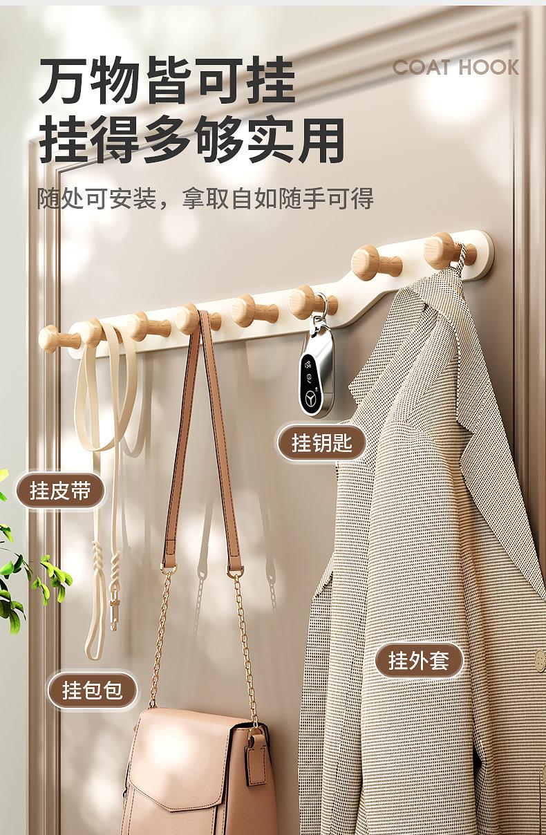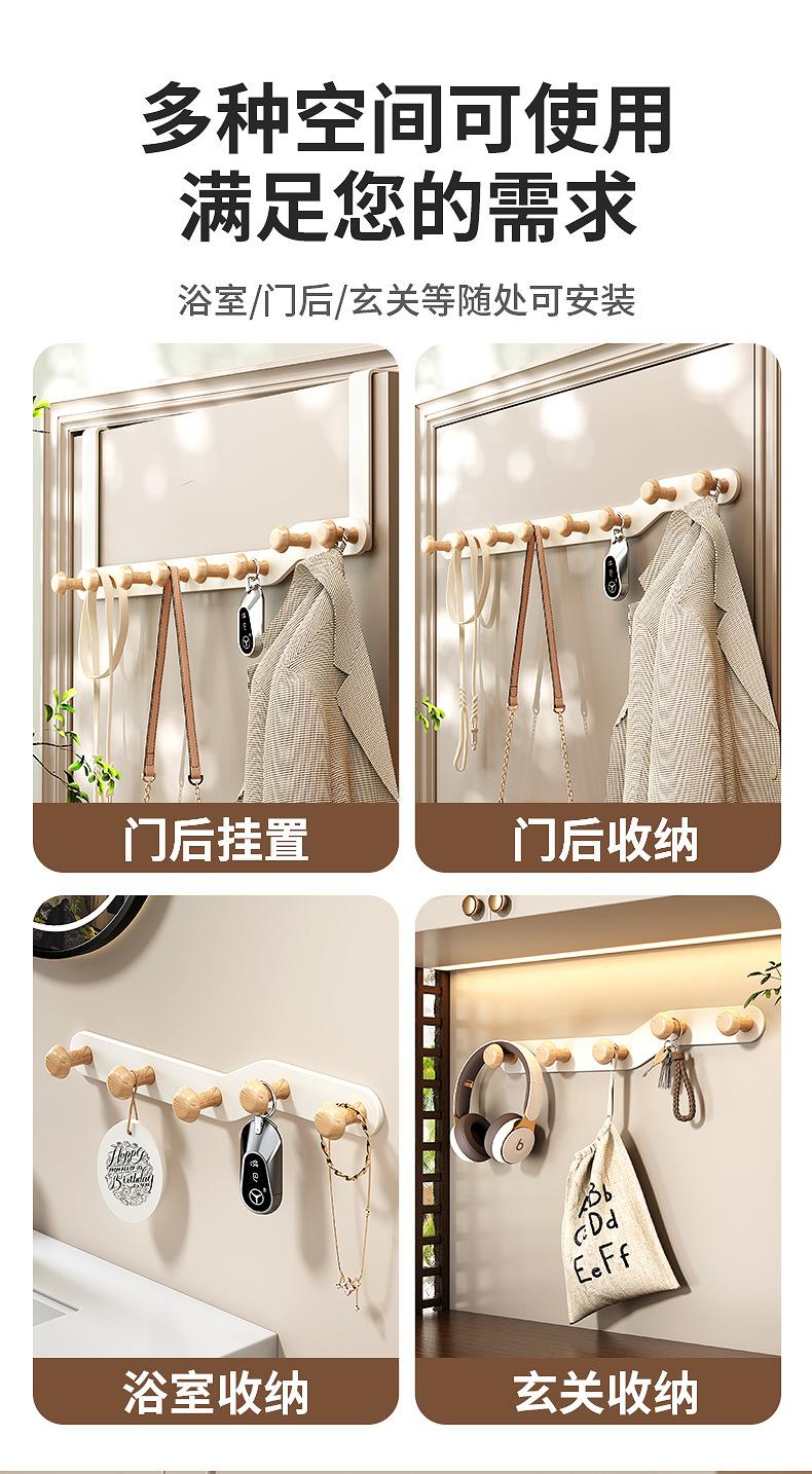 Ganchos de Pared de Madera de Haya Ganchos para Abrigos de Baño Detrás de la Puerta Adhesivos de Fuerte Carga Sin Perforación Almacenamiento de Llaves Sombreros
