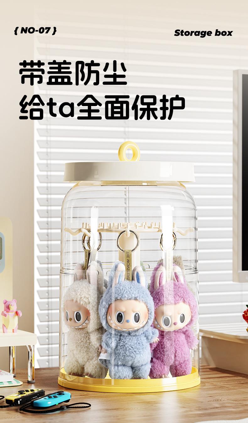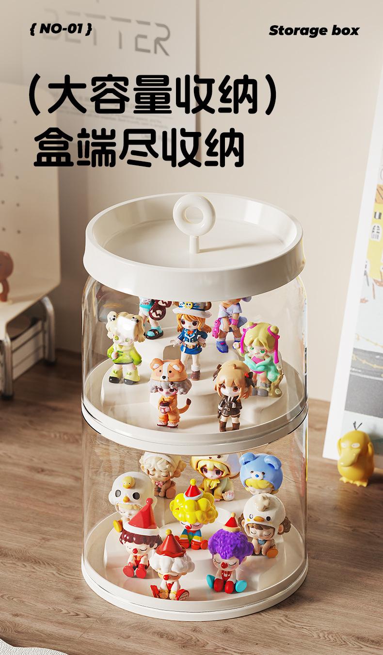 Caja Exhibidora de Figuras Pop Mart Giratoria Almacenamiento de Cajas Ciegas Soporte de Exhibición Almacenamiento de Muñecas a Prueba de Polvo Caja de Almacenamiento Transparente