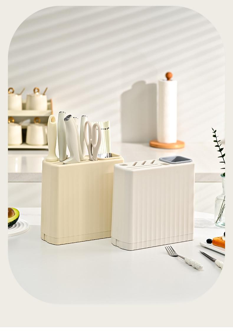 Estante giratorio para cuchillos de cocina, estante doméstico multifuncional para encimera, tubo/cesta para palillos, estante para cuchillos de verduras, caja de almacenamiento integrada para cucharas
