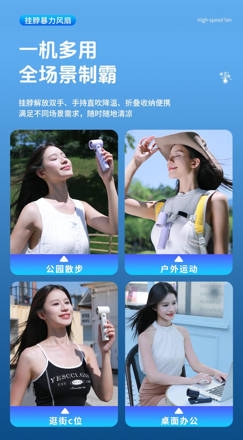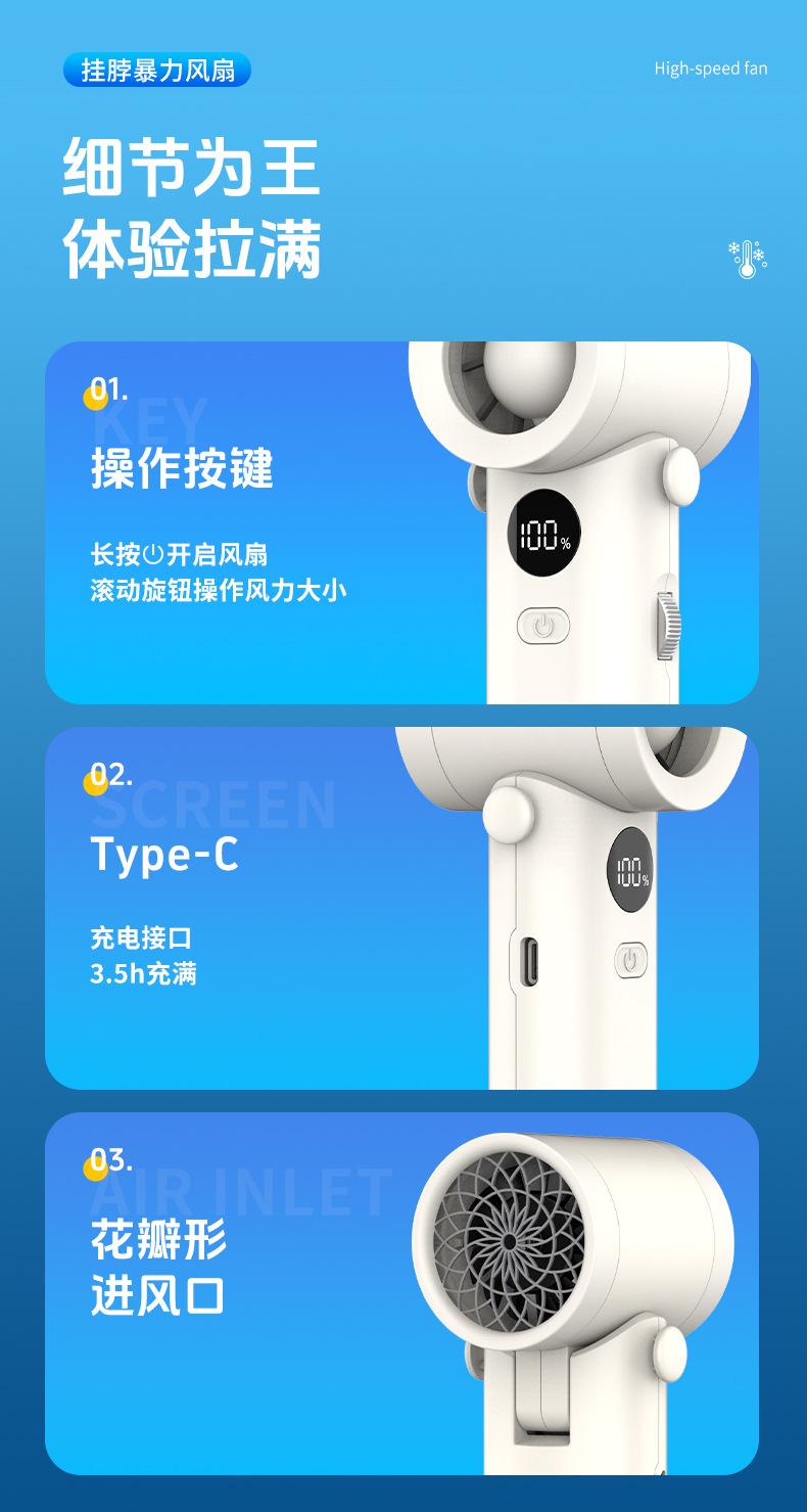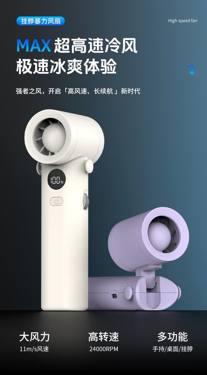 Mini Ventilador de Turbina de Mano de Alta Velocidad Recargable de Escritorio Plegable Viento Fuerte Huracán para Colgar al Cuello para Exteriores Ventilador Violento