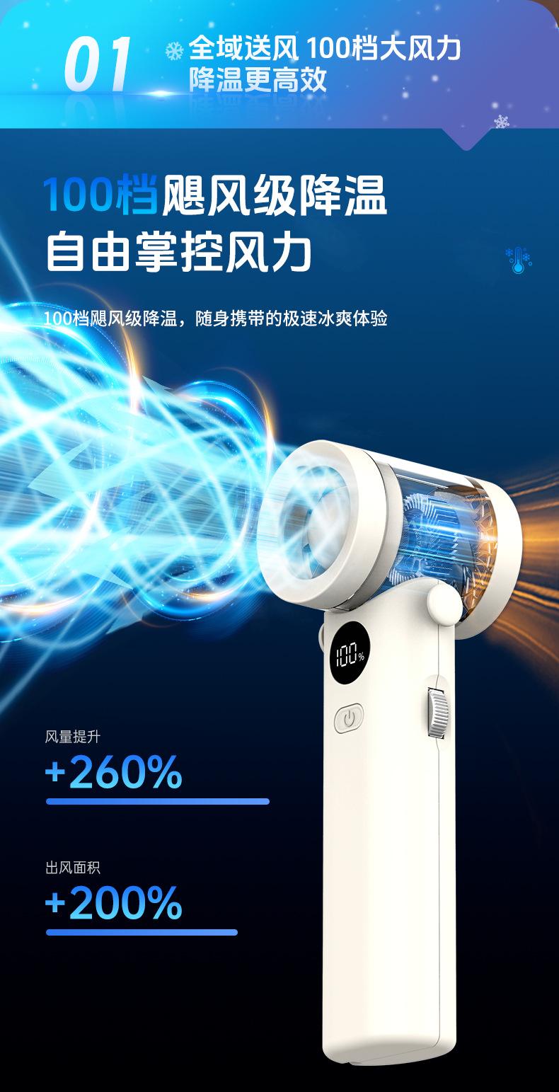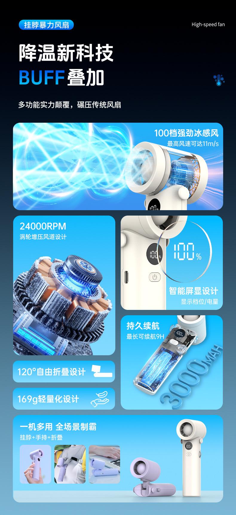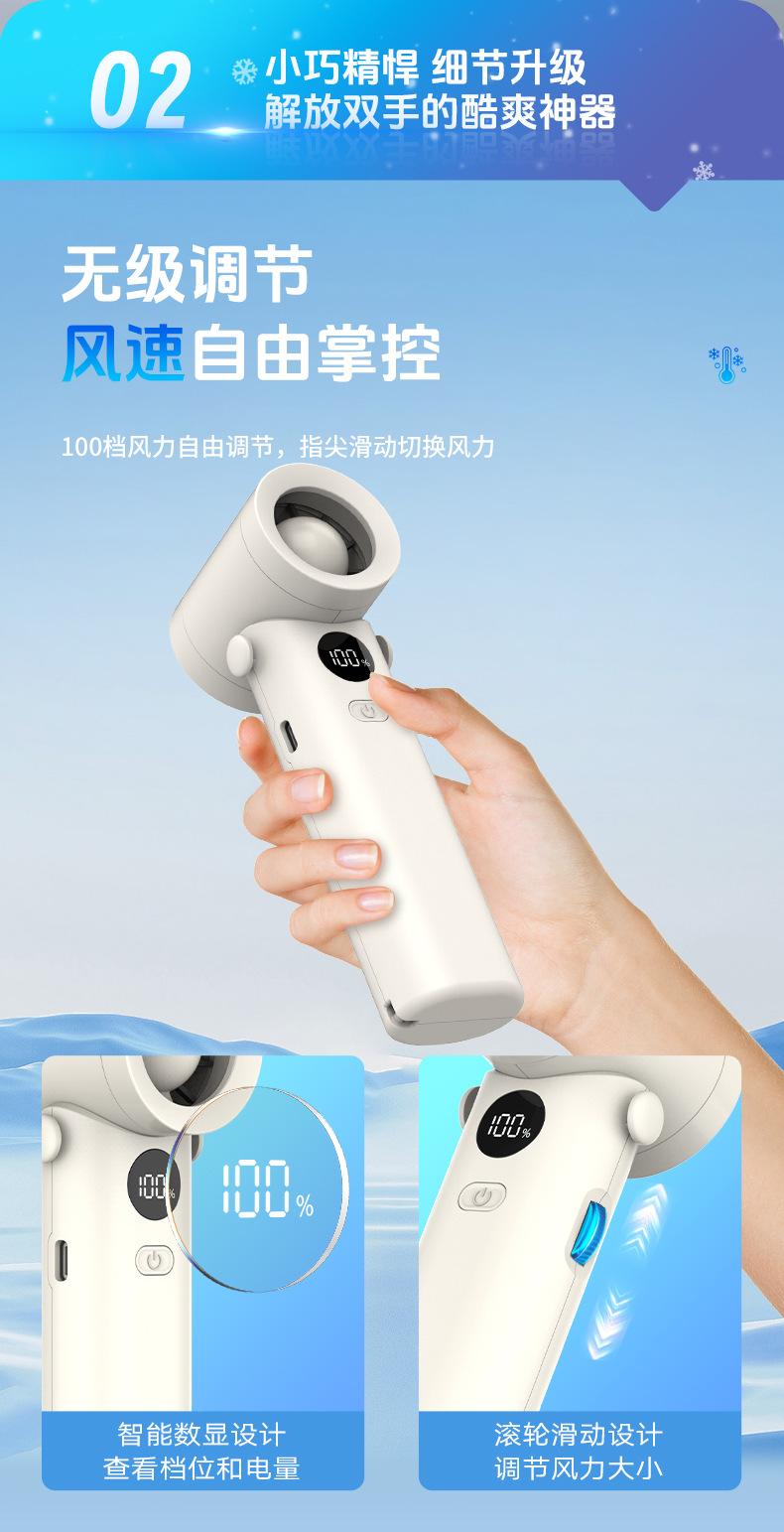 Mini Ventilador de Turbina de Mano de Alta Velocidad Recargable de Escritorio Plegable Viento Fuerte Huracán para Colgar al Cuello para Exteriores Ventilador Violento
