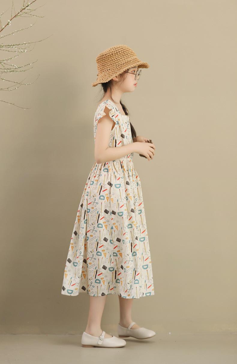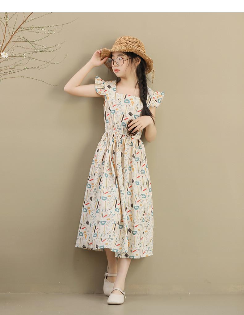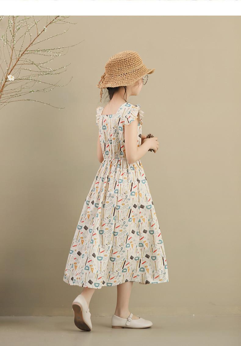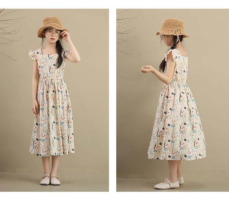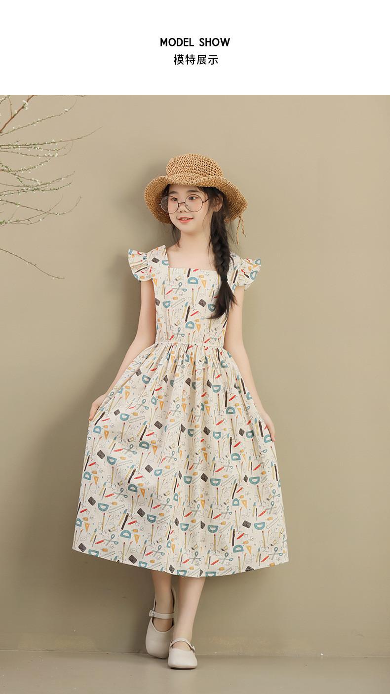 Vestido de Verano para Niñas Nuevo Estilo Vestido de Princesa Niñas Medianas y Grandes Estilo Coreano Vestido Floral Fresco Pequeño