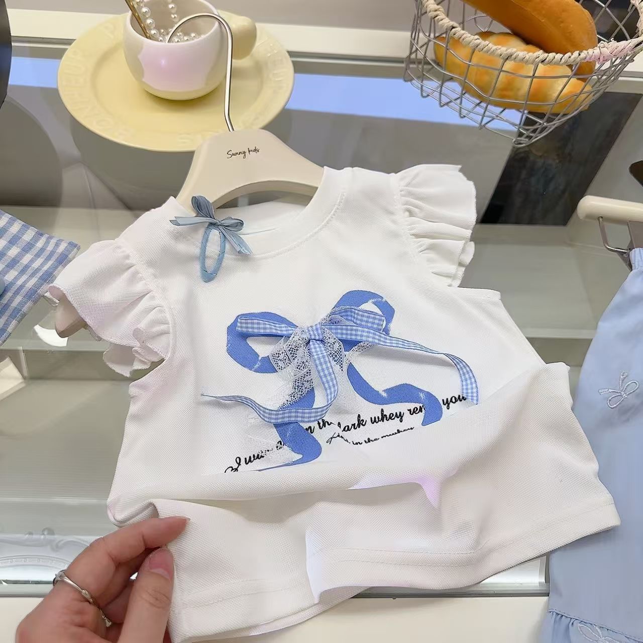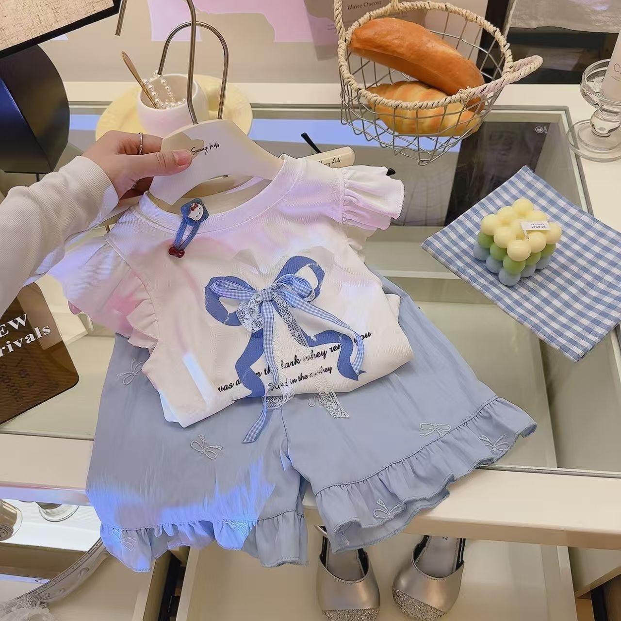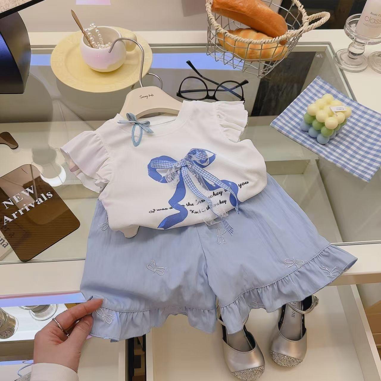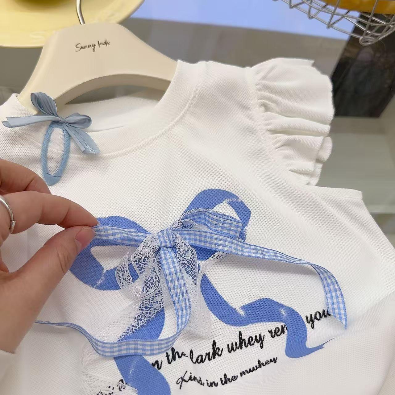 Traje de Dos Piezas para Niña Princesa con Estampado de Lazo de Verano Dulce y a la Moda Casual para Bebé Niña Estilo Coreano