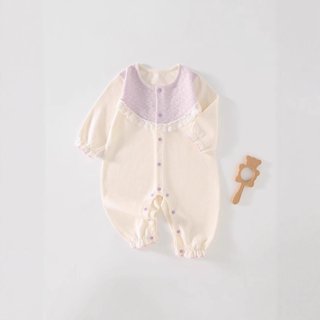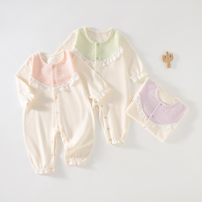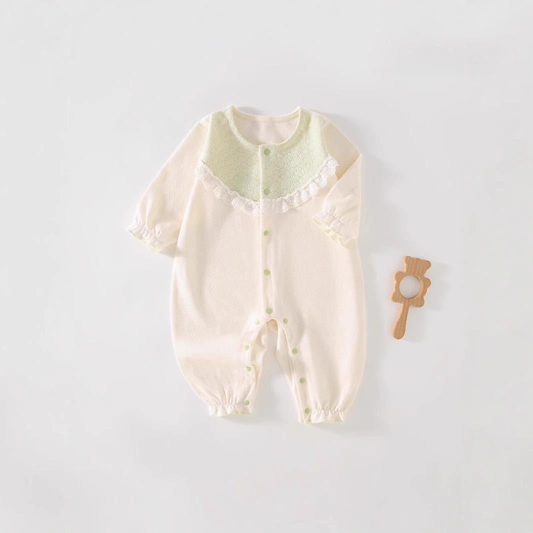 Mameluco con encaje nuevo otoño y primavera bebé sin huesos manga larga lindo mameluco recién nacido amigable con la piel pijama versión coreana