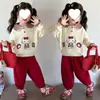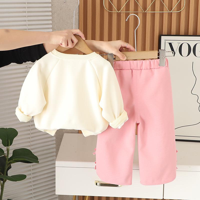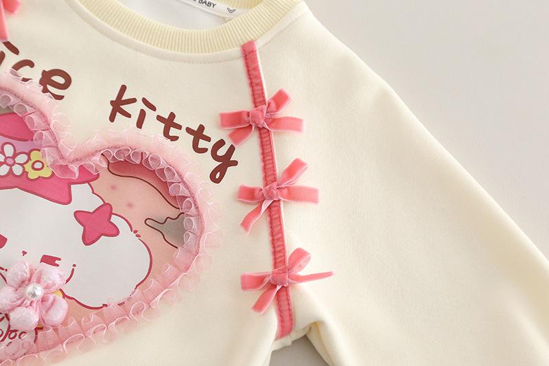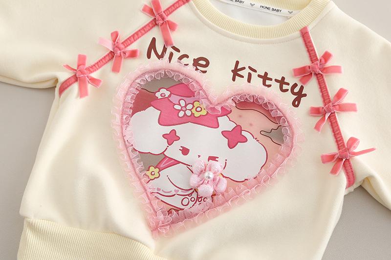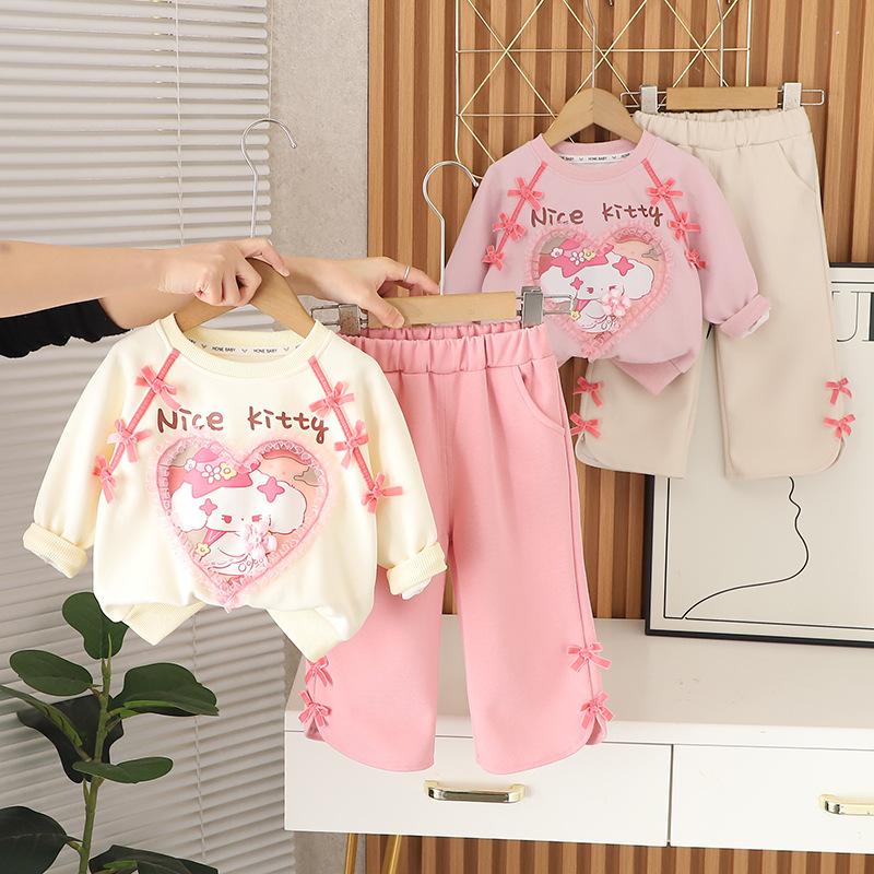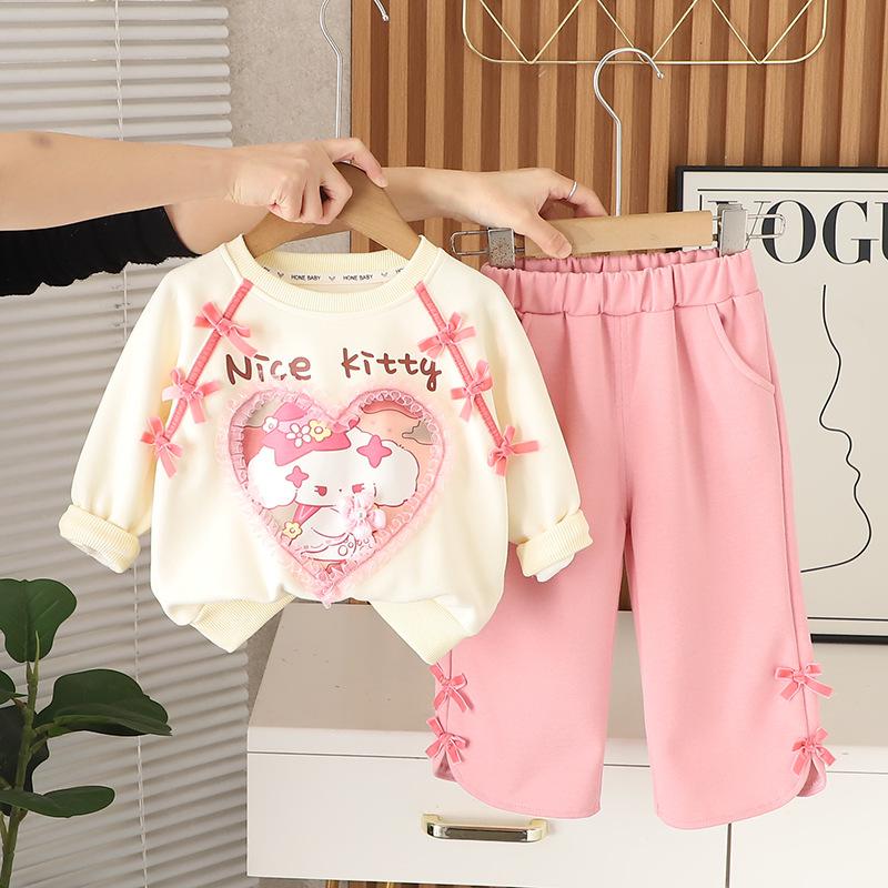 Conjunto de Suéter con Lazo para Niñas 2025 Nuevo Suéter de Dibujos Animados para Niños Lindo Conjunto de Dos Piezas de Otoño para Niñas