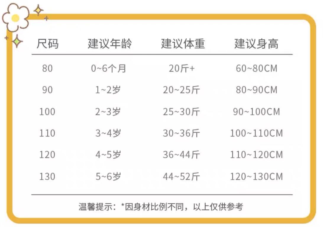 80 (suitable for height 80cm), 90 (suitable for height 90cm), 100 (suitable for height 100cm), 110 (suitable f...