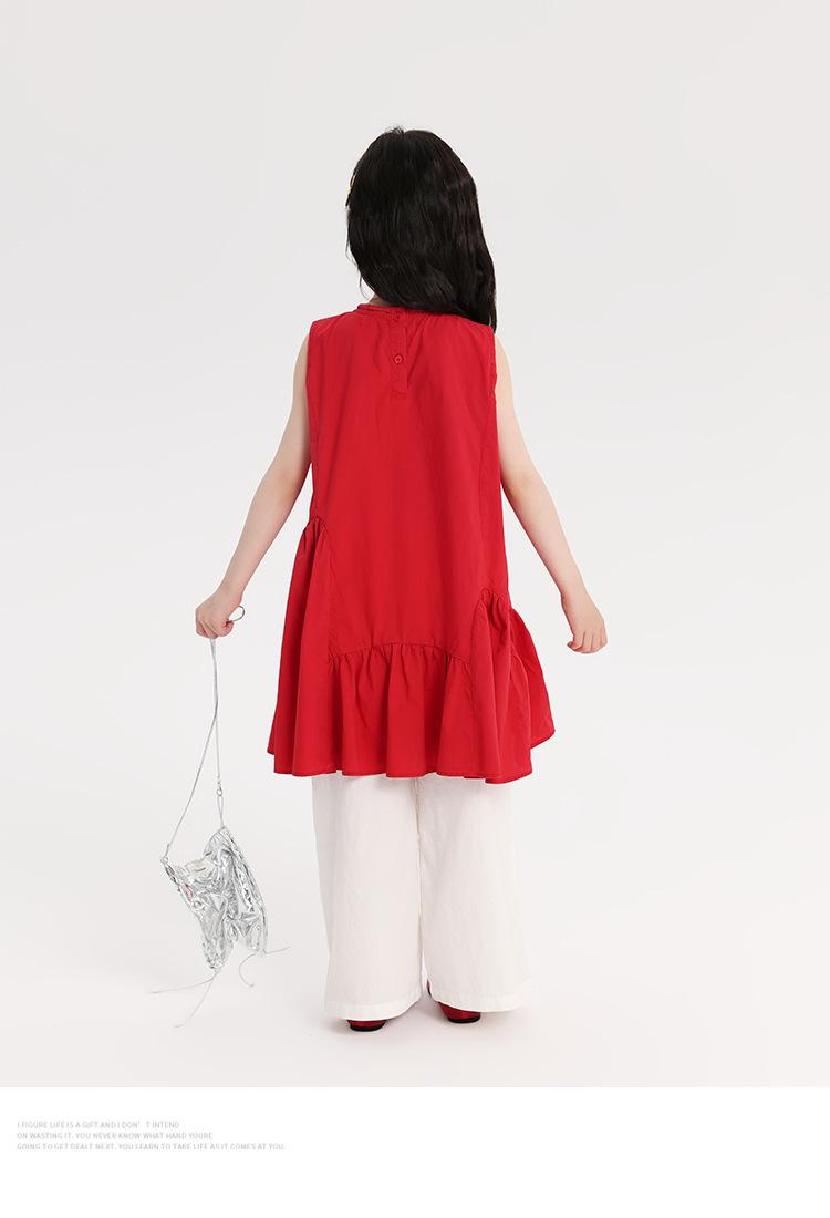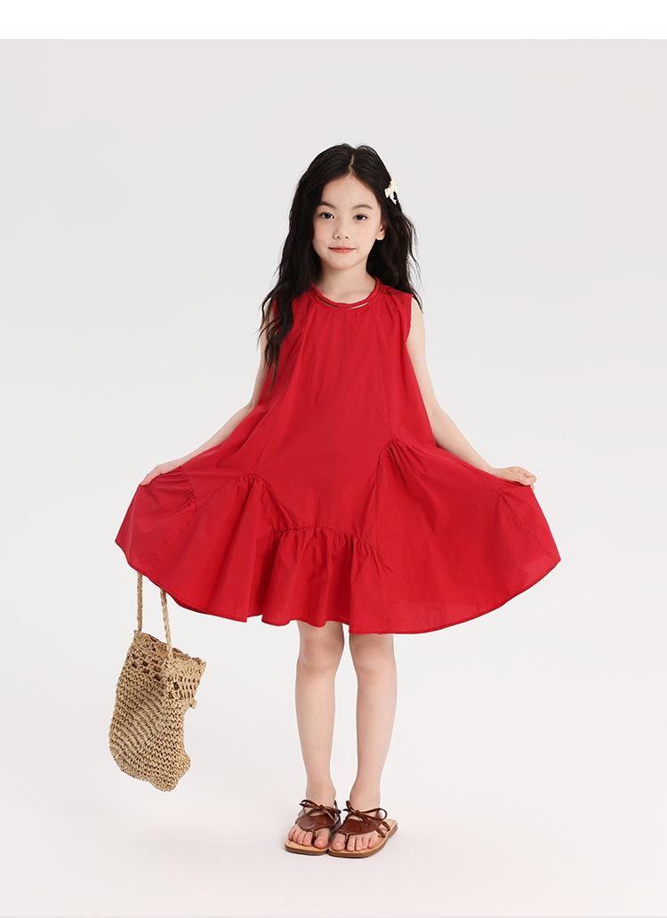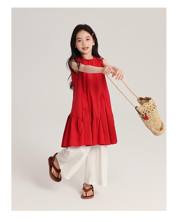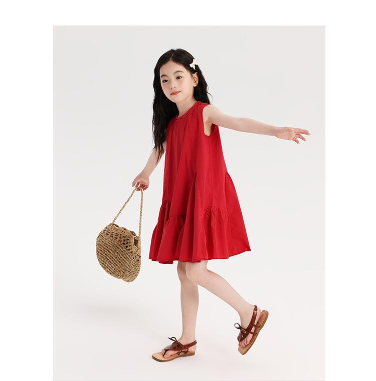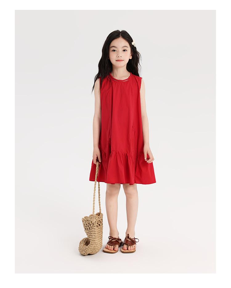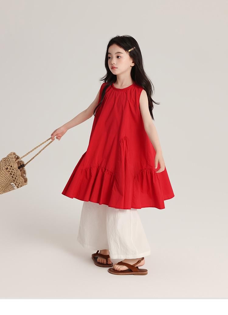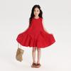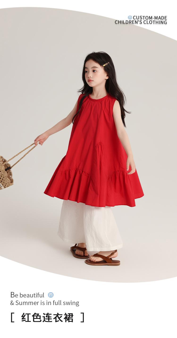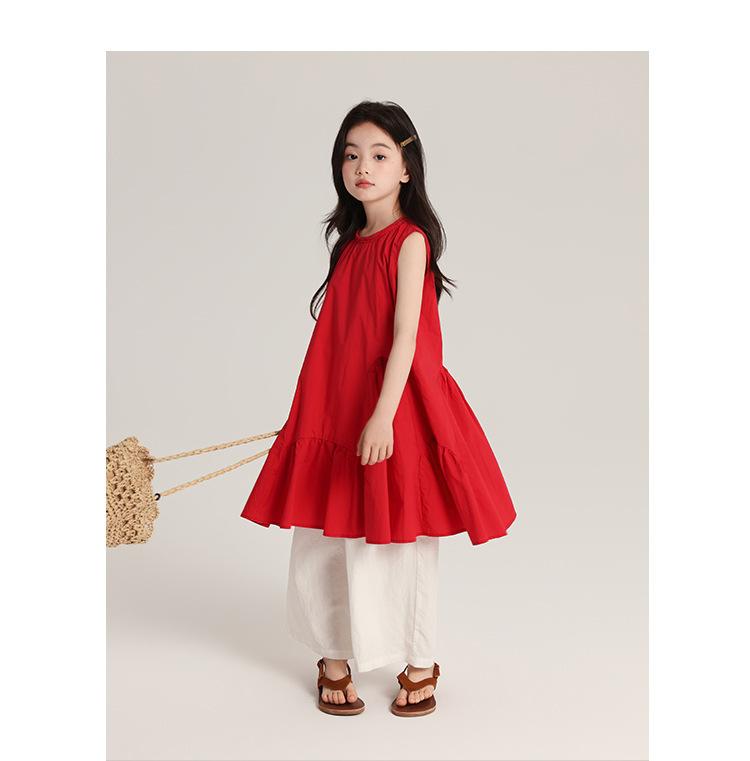 Pudding Haru Ropa para Niños Falda Larga sin Mangas para Niñas 2025 Nuevo Verano Estilo Vacacional para Niños Vestido Rojo