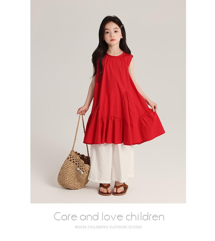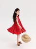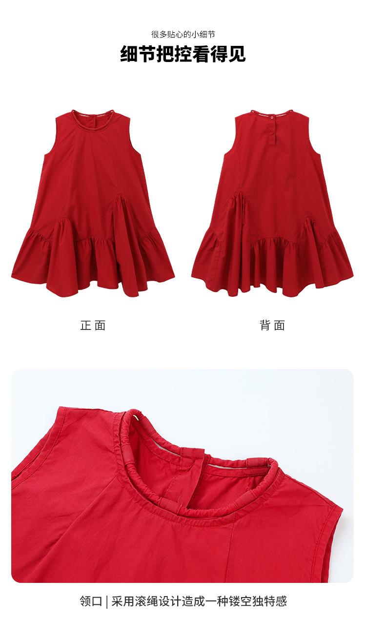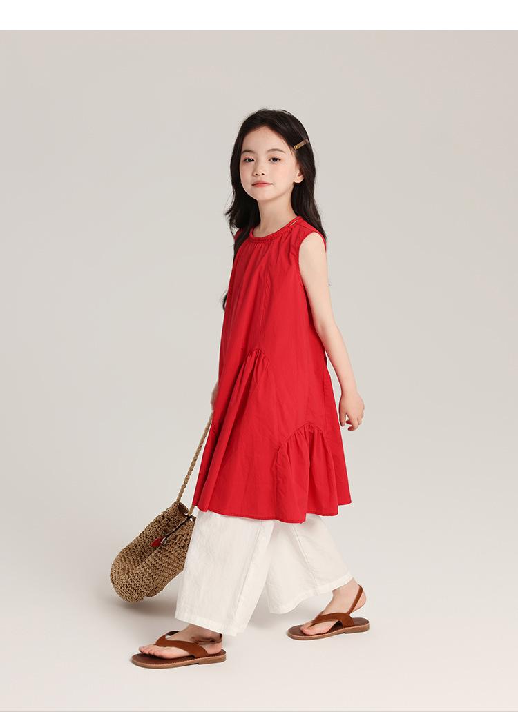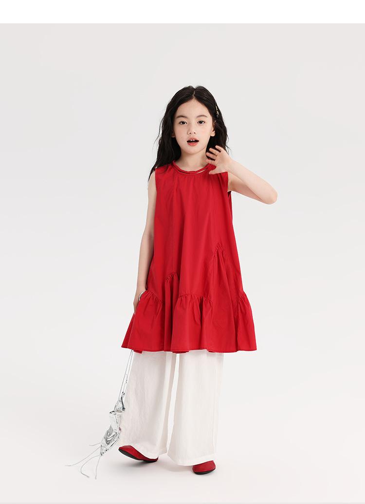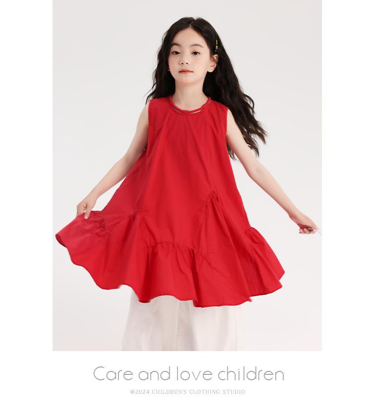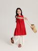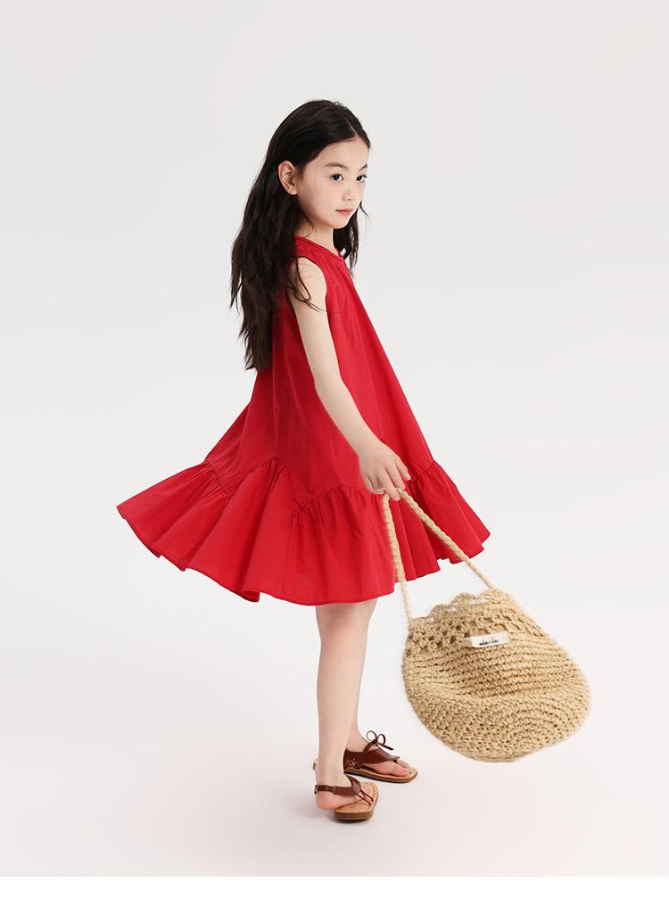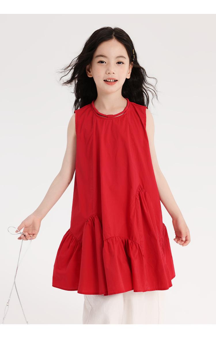 Pudding Haru Ropa para Niños Falda Larga sin Mangas para Niñas 2025 Nuevo Verano Estilo Vacacional para Niños Vestido Rojo