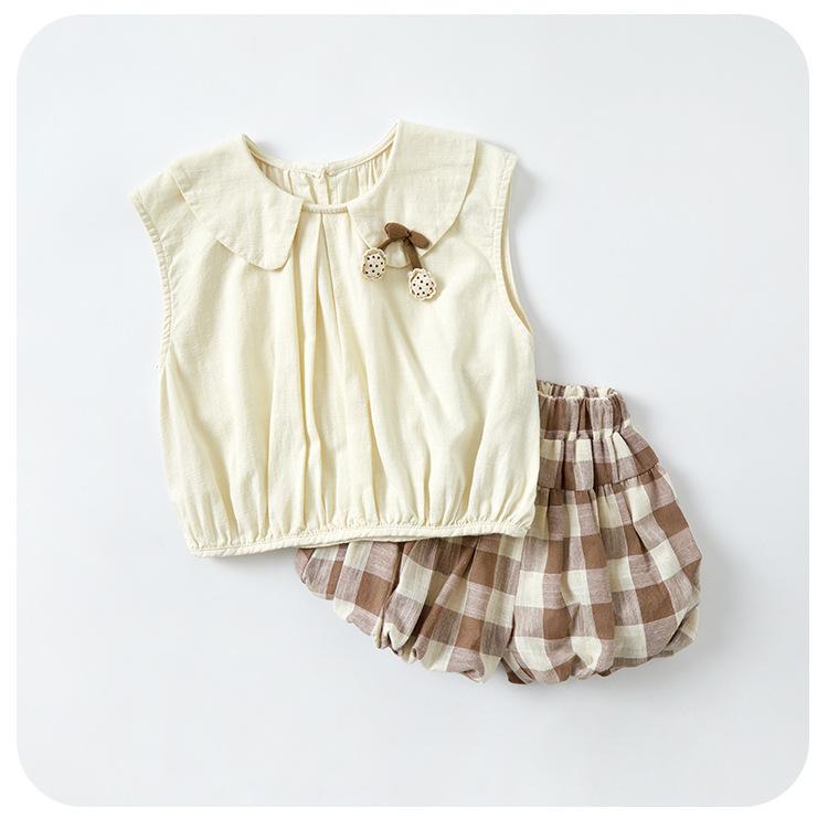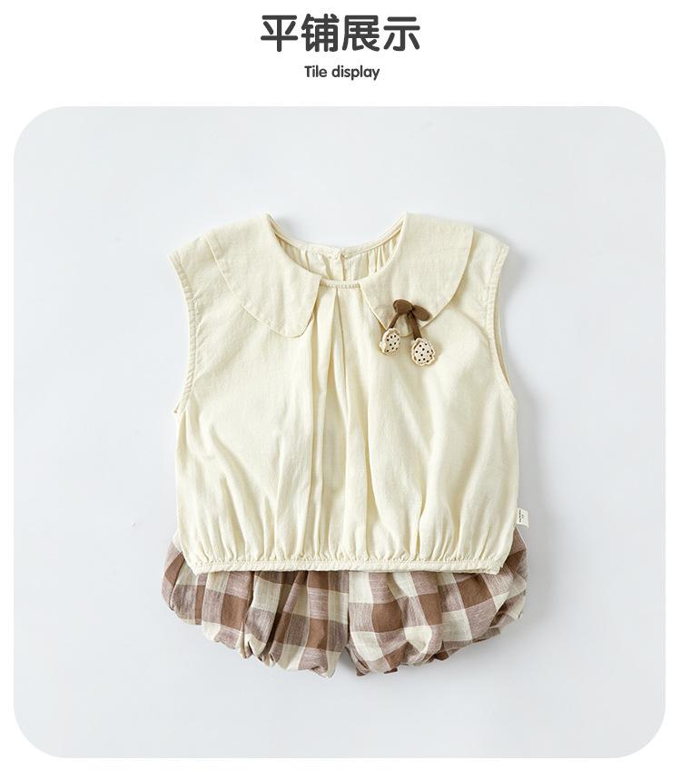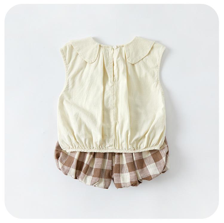 Compra Traje de Pantalón a Cuadros sin Mangas para Niñas 2025 Verano Nuevo Bebé y Niño Pequeño Top Delgado y Pantalones Bombachos Conjunto de Dos Piezas Trendy al por mayor en Joom.pro