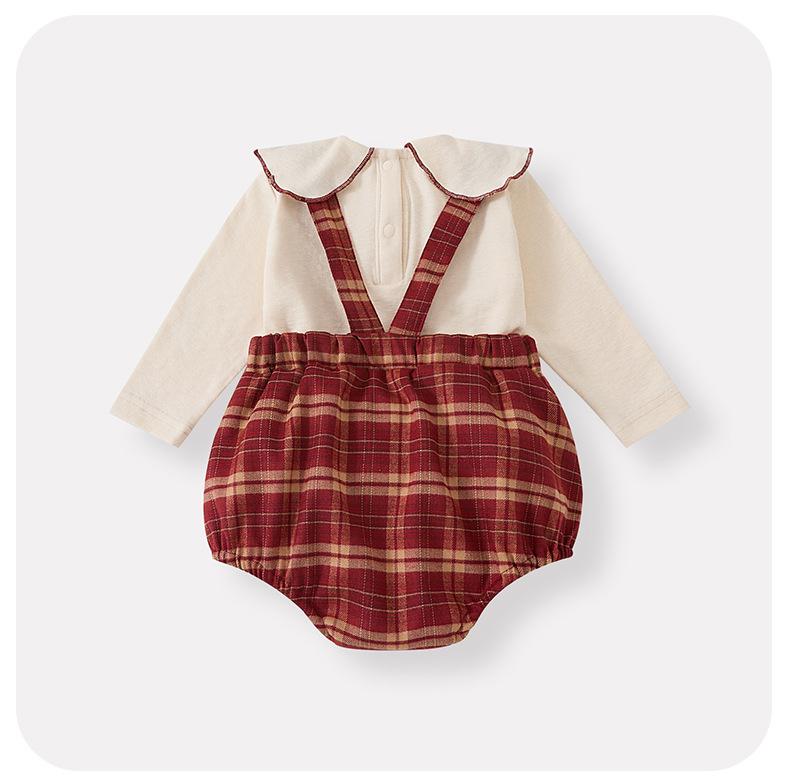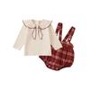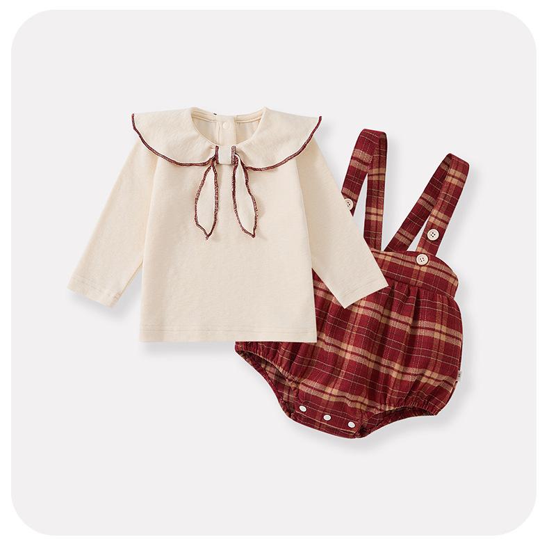 Conjunto de Overol a Cuadros Nuevo para Otoño 2025 para Bebé y Niño Pequeño, Body de Capa Base a la Moda para Bebé Niña, Conjunto de Dos Piezas