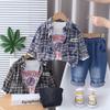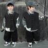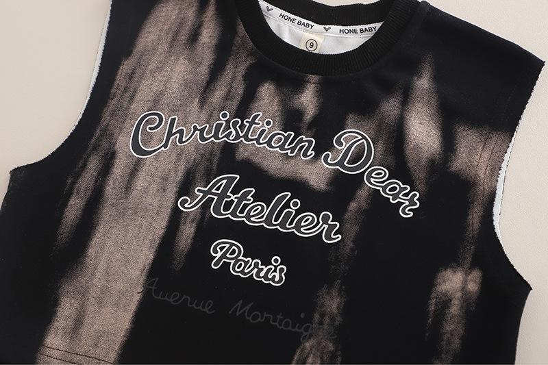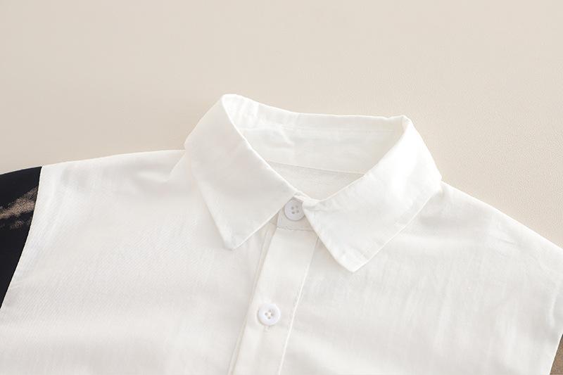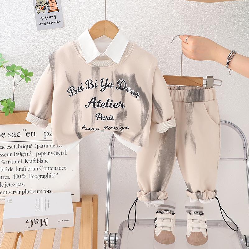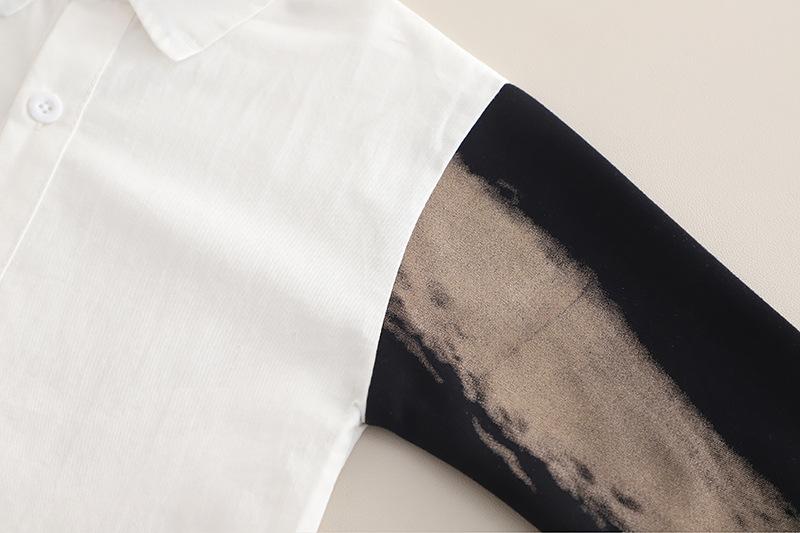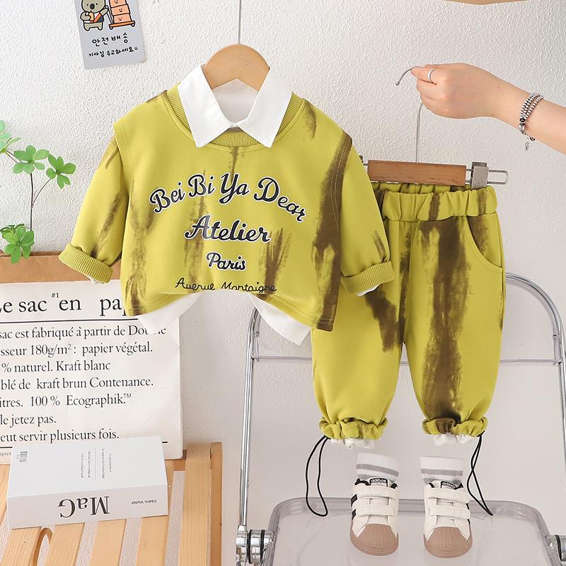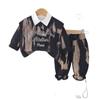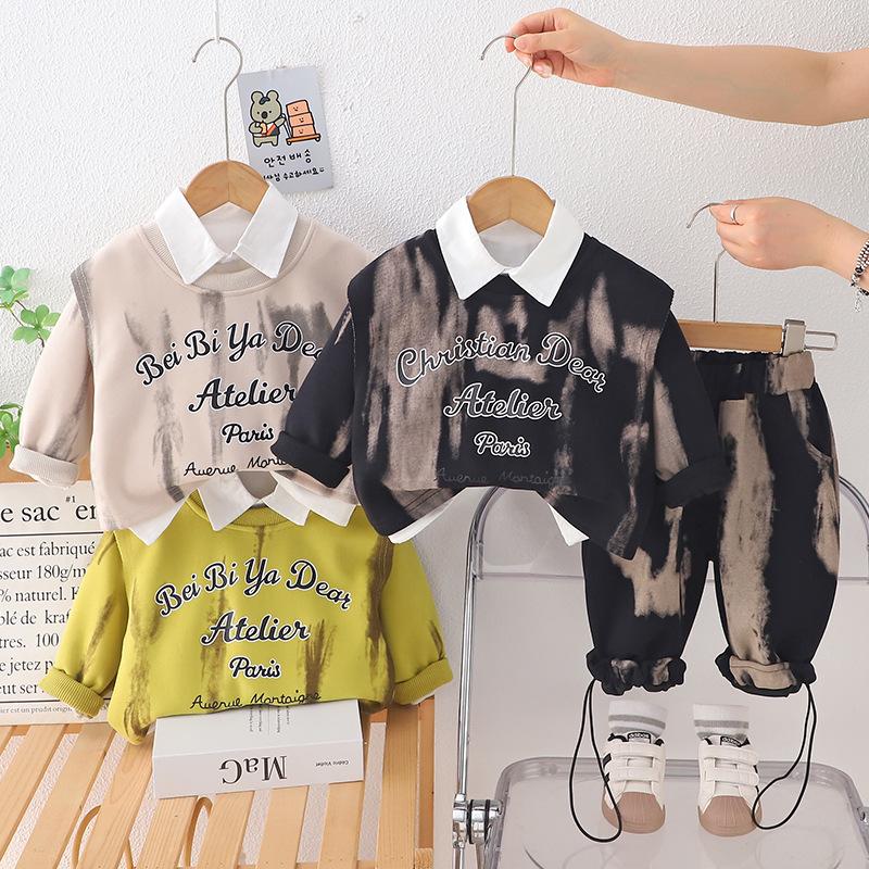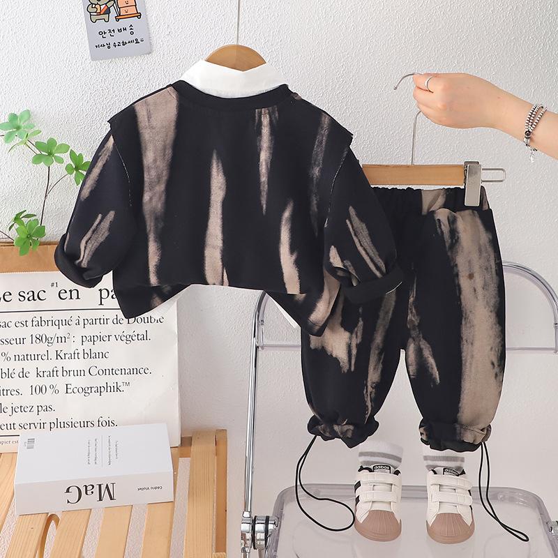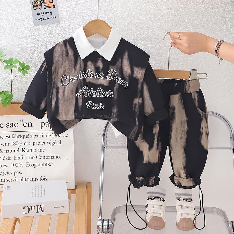 Estilo de Primavera y Otoño para Niños 2025 Nuevo Bebé Tie-Dye Estampado Completo Chaleco Inglés Niños Guapo Camisa con Solapa Conjunto de Tres Piezas