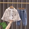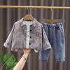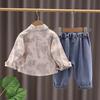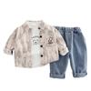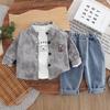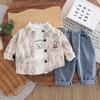Traje de Otoño 2025 para Niño Nuevo Estilo Estilo Infantil Bebé Primavera y Otoño Estilo Coreano Camisa Casual Manga Larga Conjunto de Tres Piezas