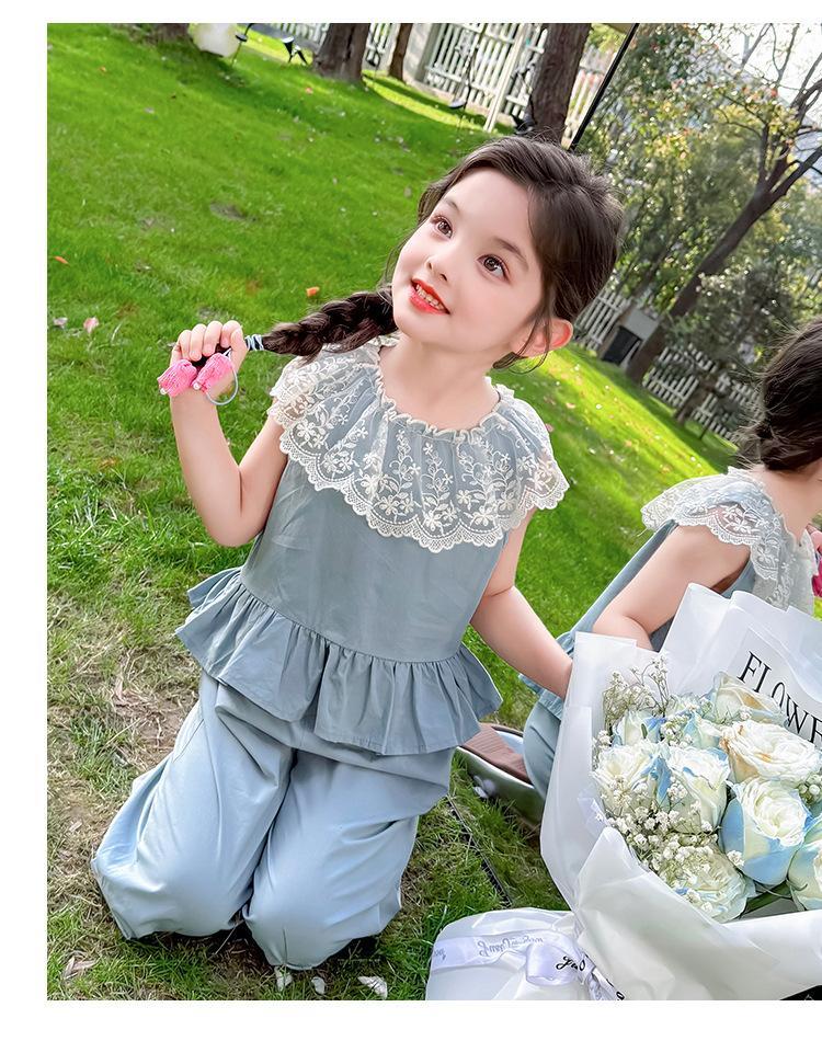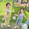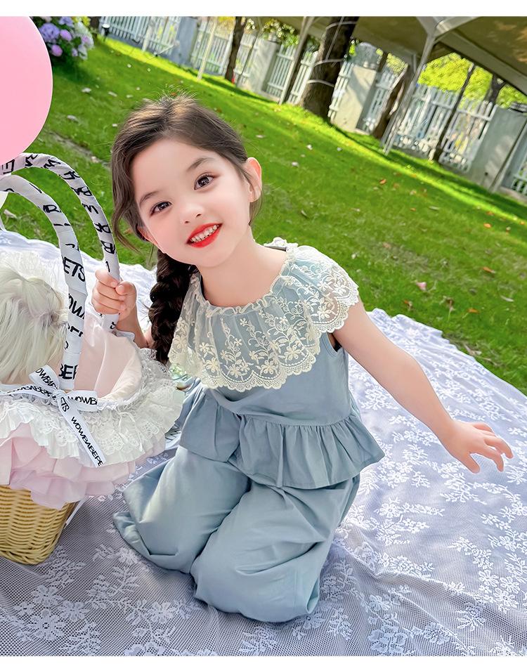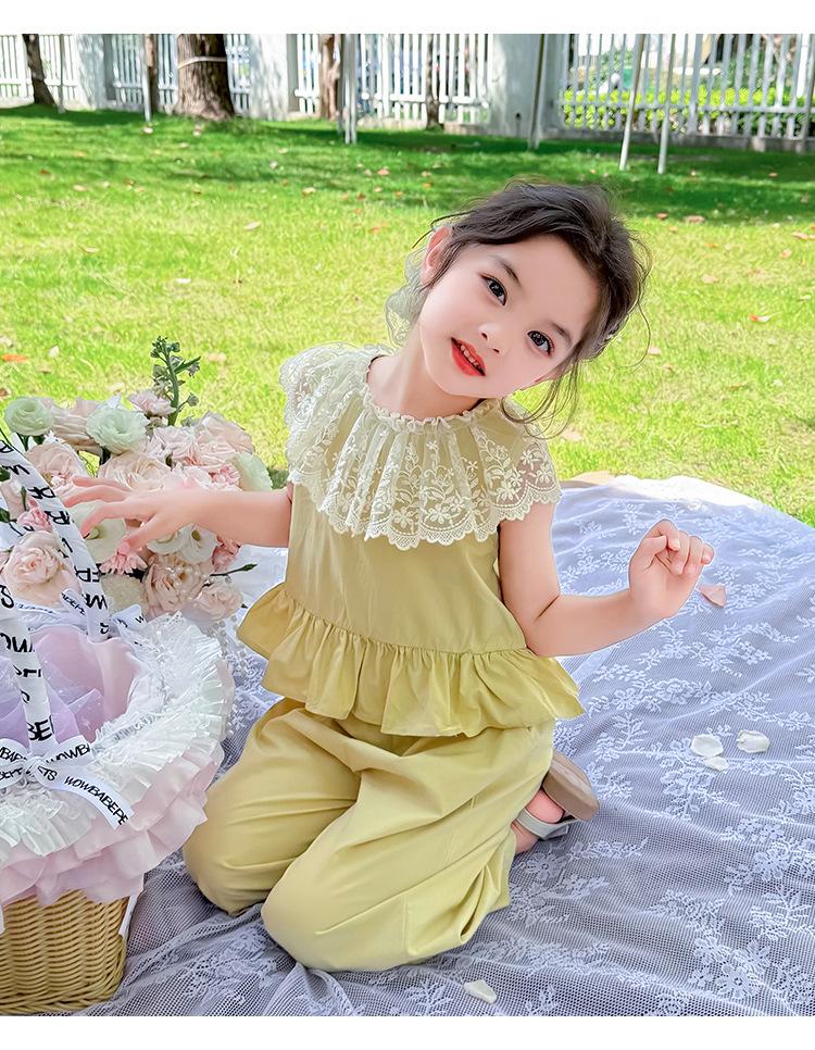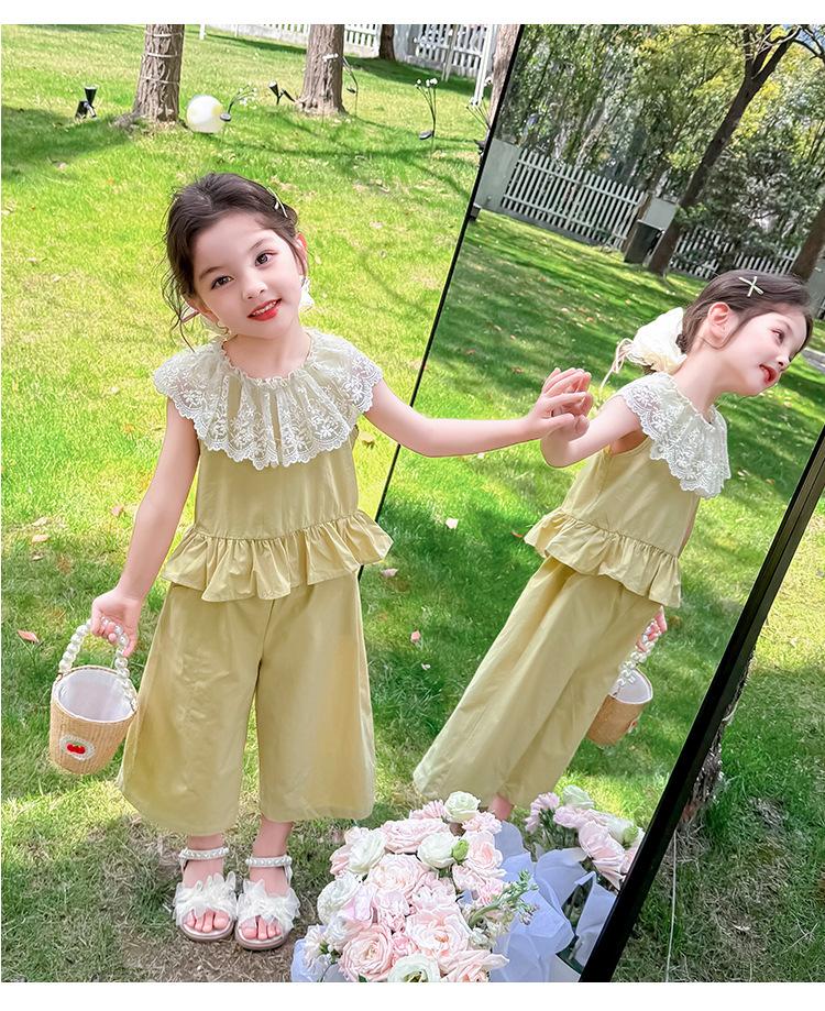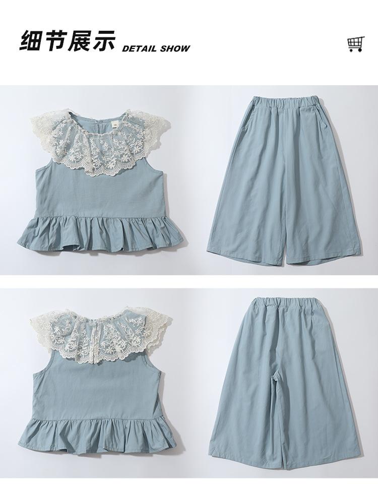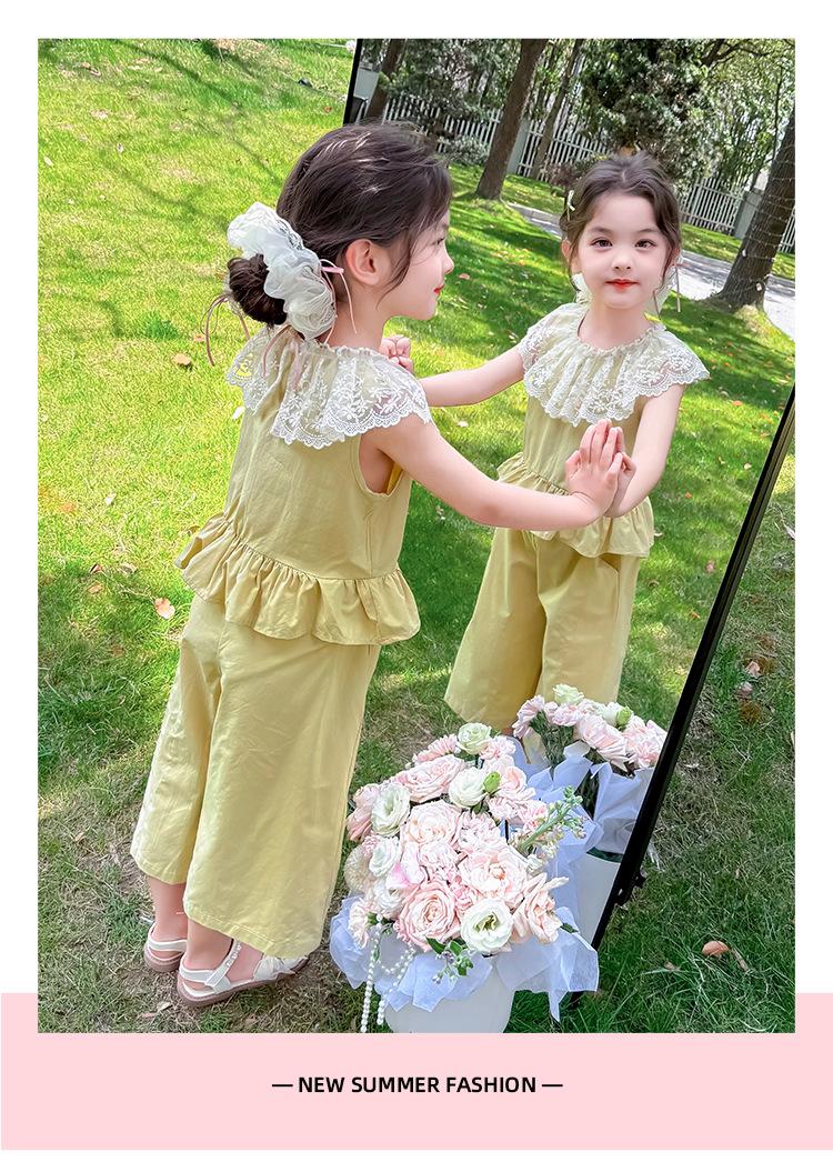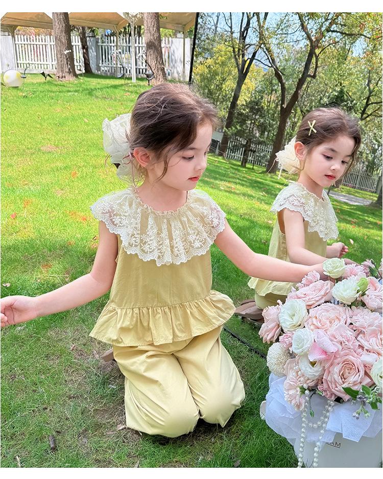 Traje de Algodón con Cuello de Encaje para Niñas 2025 Verano Nueva Moda Niña Elegante Conjunto de Dos Piezas Vestido de Verano para Niños