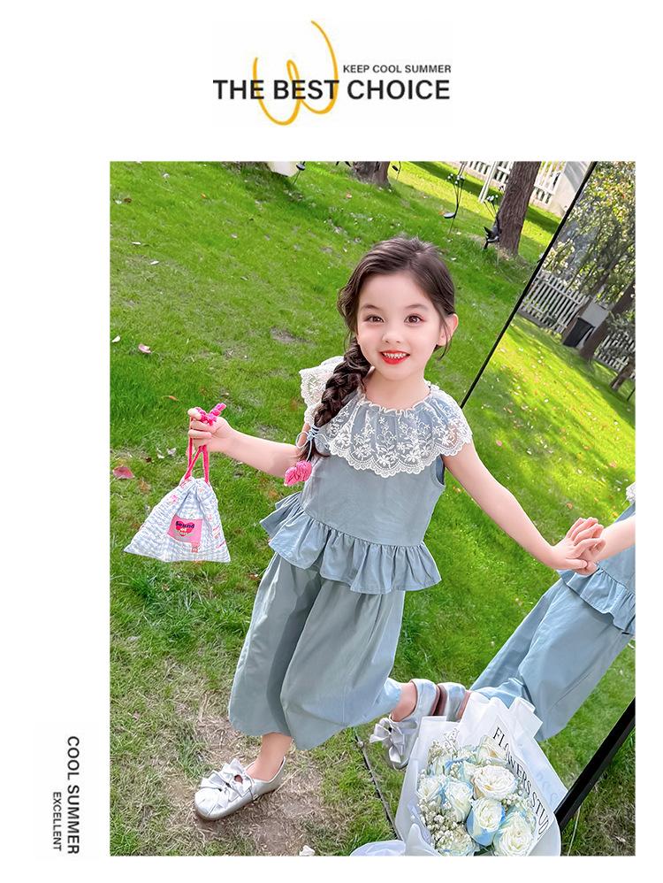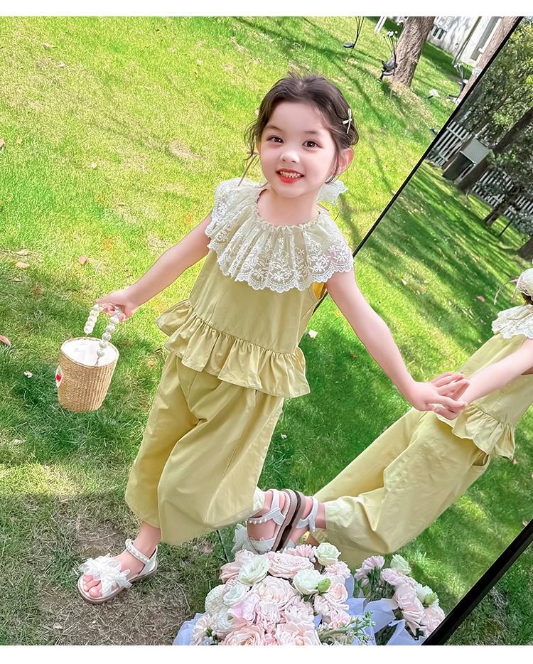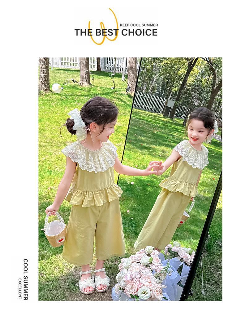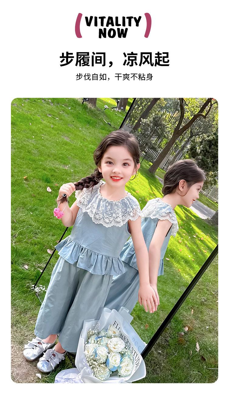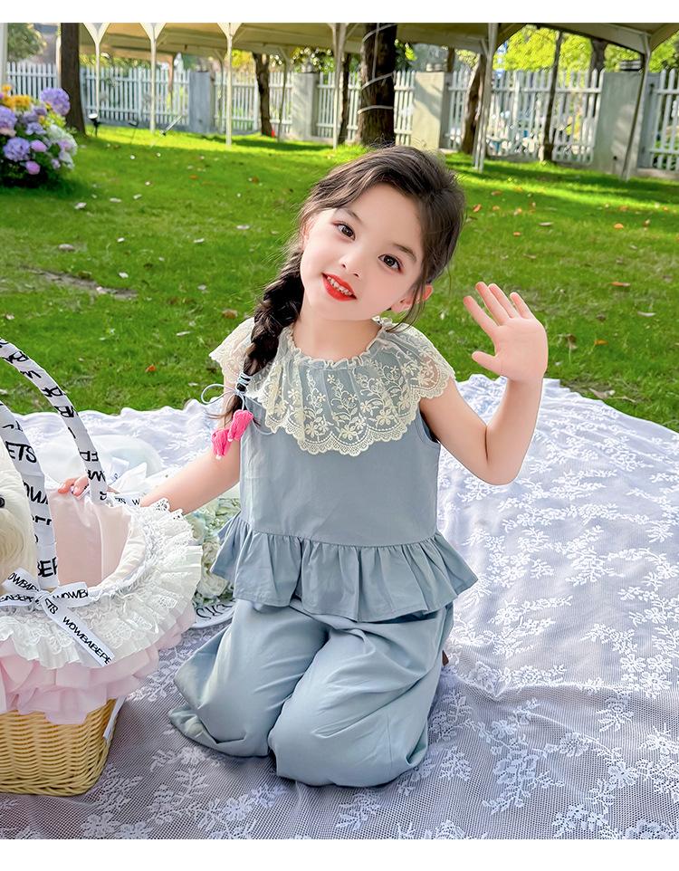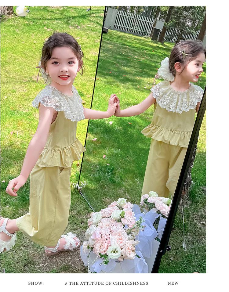 Traje de Algodón con Cuello de Encaje para Niñas 2025 Verano Nueva Moda Niña Elegante Conjunto de Dos Piezas Vestido de Verano para Niños