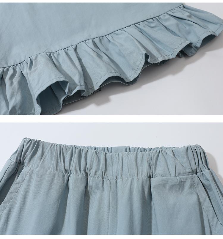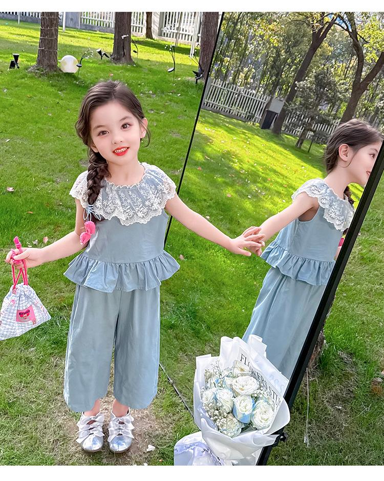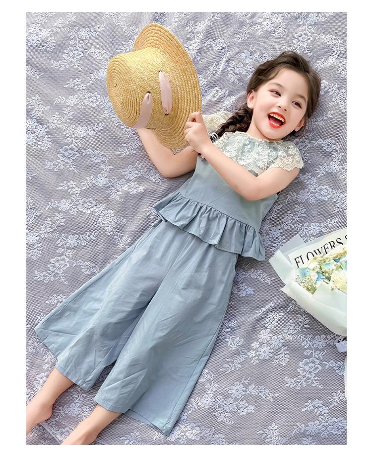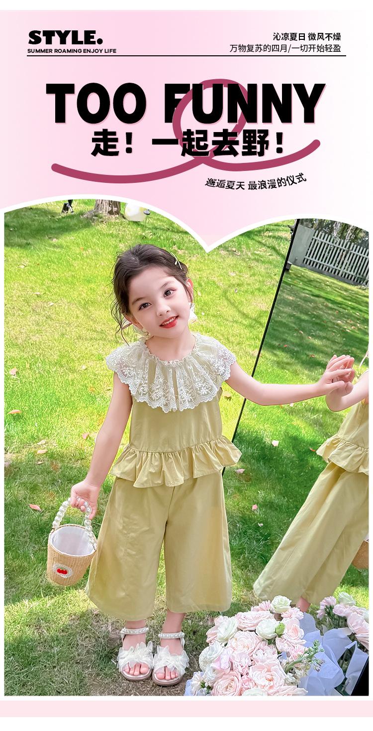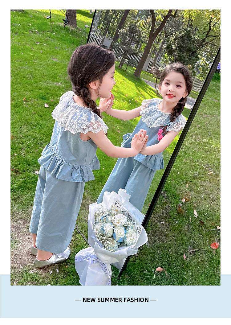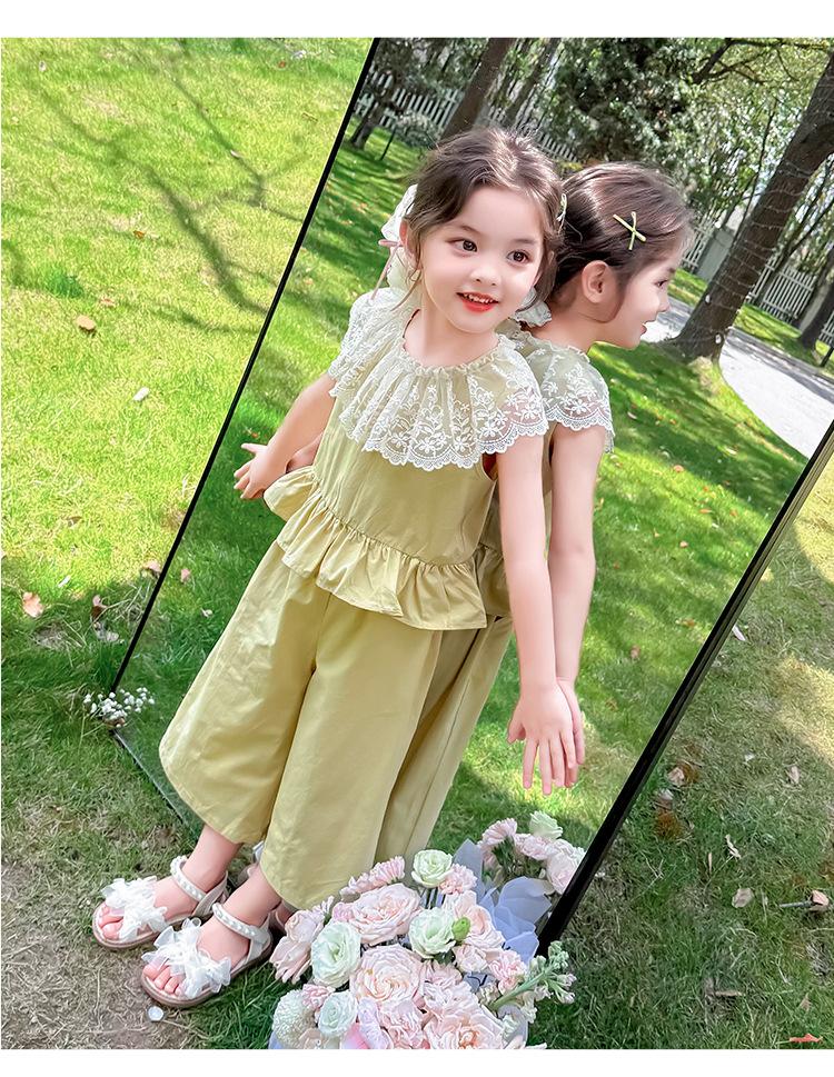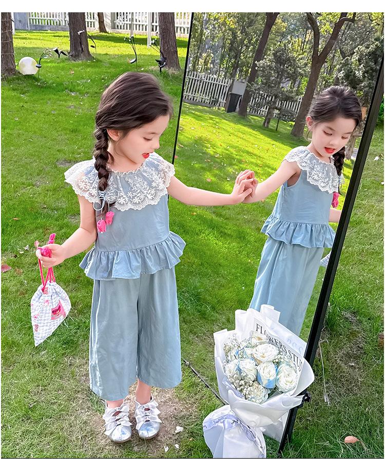 Traje de Algodón con Cuello de Encaje para Niñas 2025 Verano Nueva Moda Niña Elegante Conjunto de Dos Piezas Vestido de Verano para Niños
