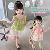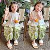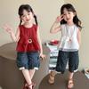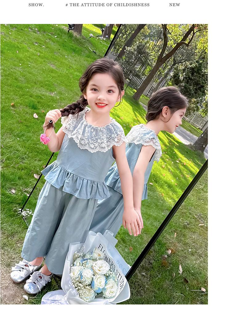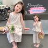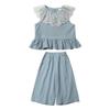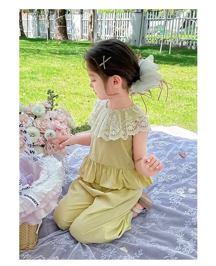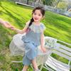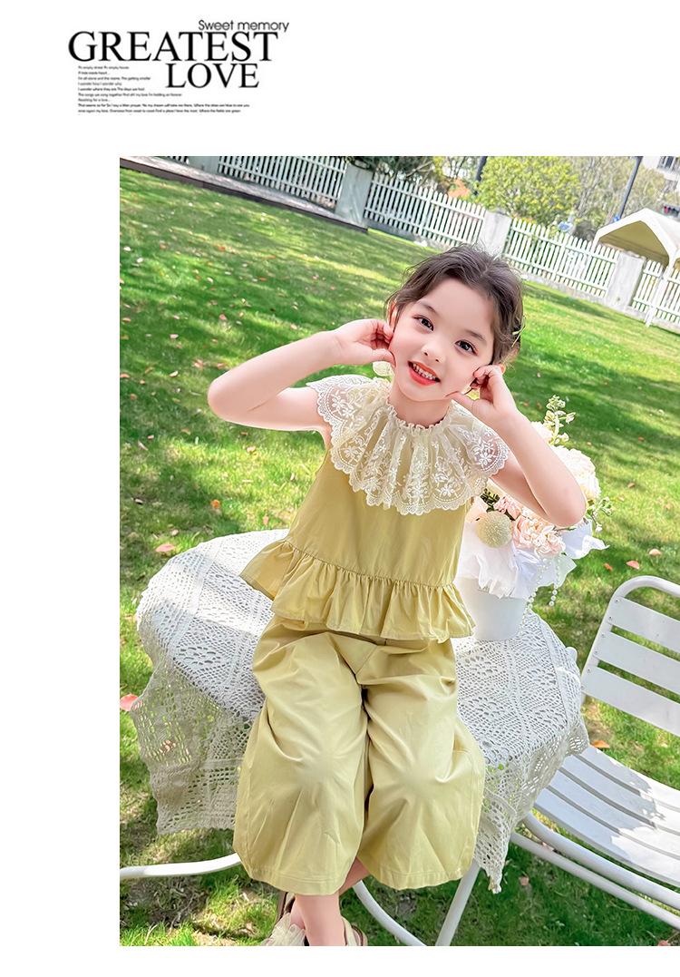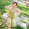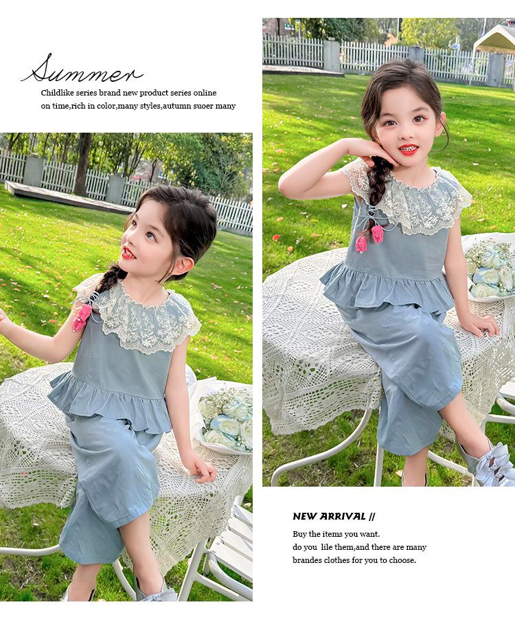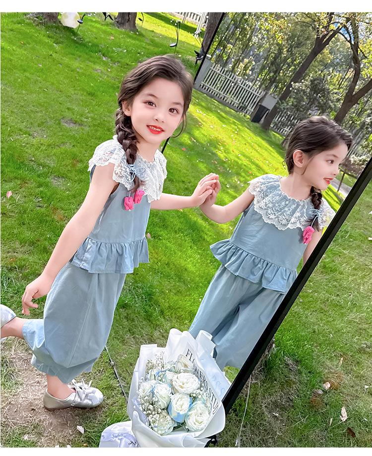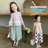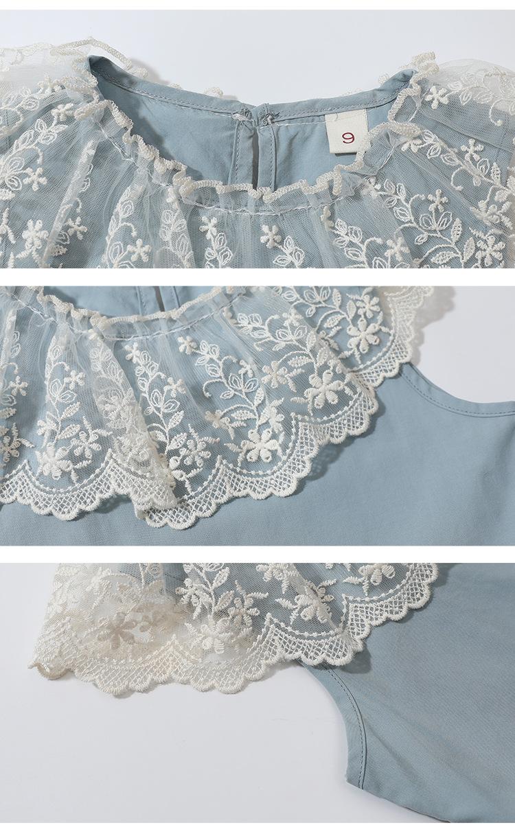 Traje de Algodón con Cuello de Encaje para Niñas 2025 Verano Nueva Moda Niña Elegante Conjunto de Dos Piezas Vestido de Verano para Niños