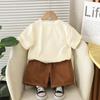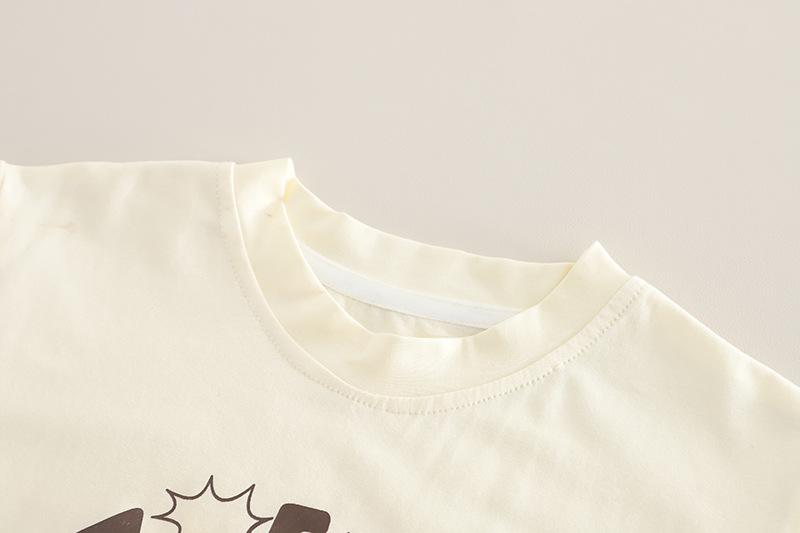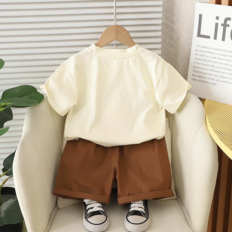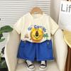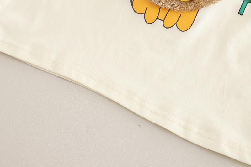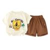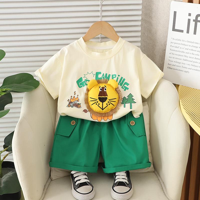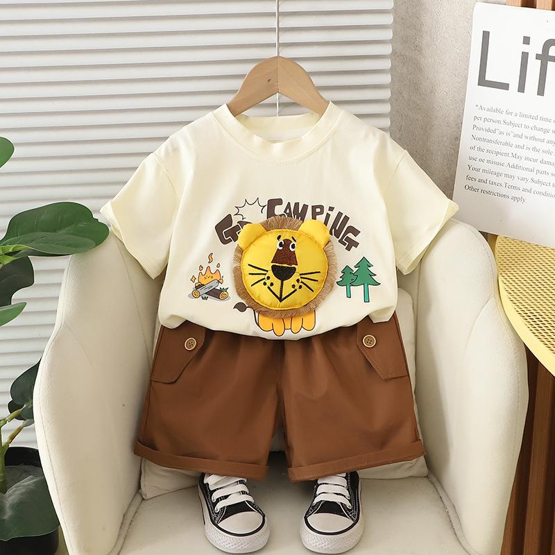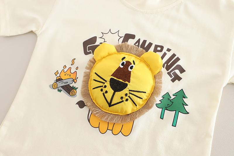 Traje de Manga Corta para Niño 2025 Verano Nuevo Estilo Niños Pequeños y Medianos Dibujos Animados Cuello Redondo León Grande Manga Corta Casual Conjunto de Dos Piezas Moderno