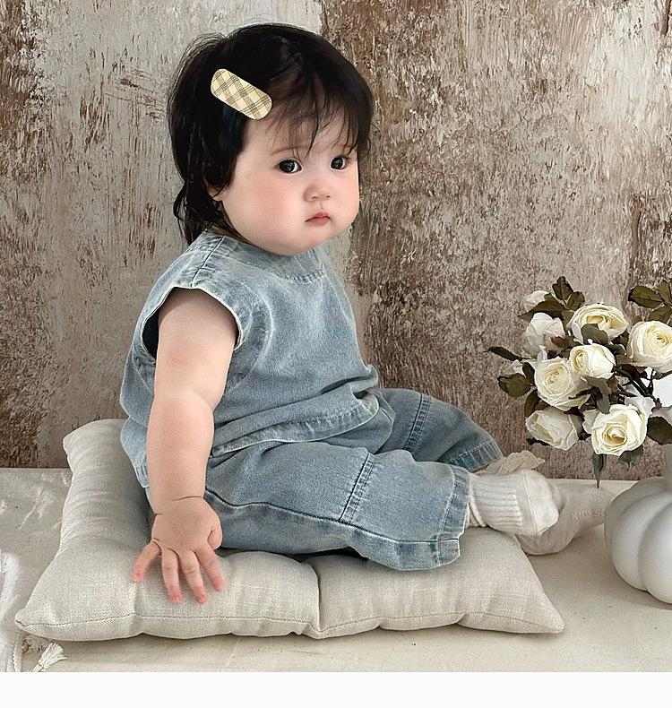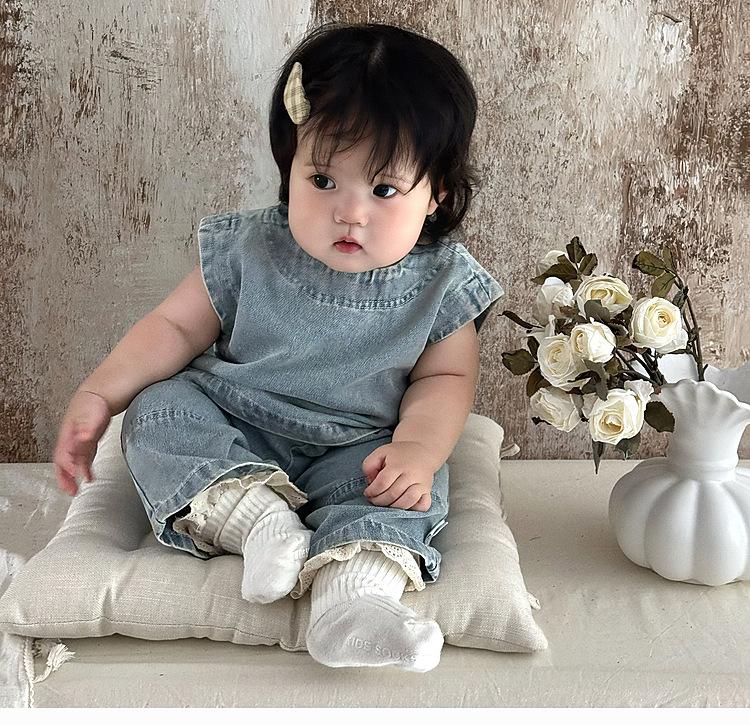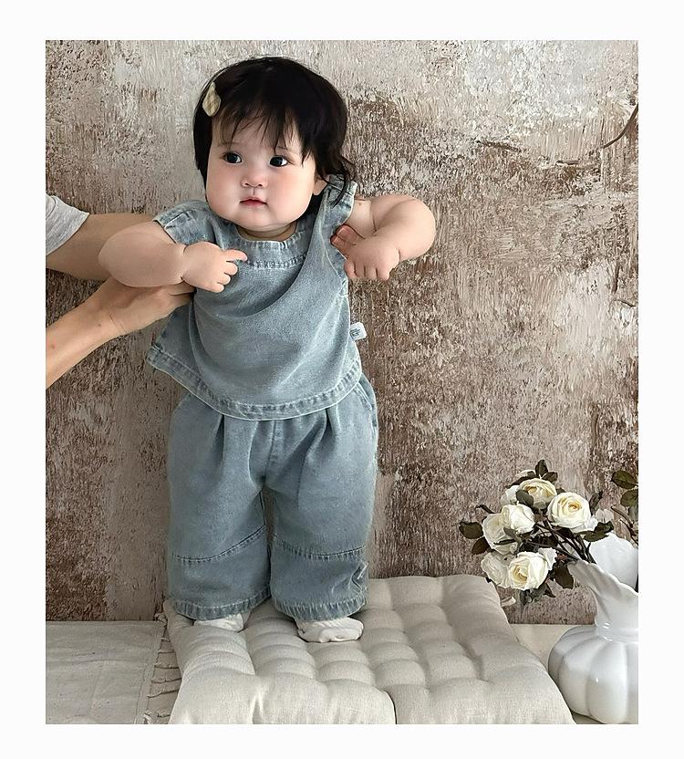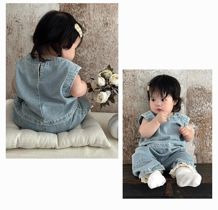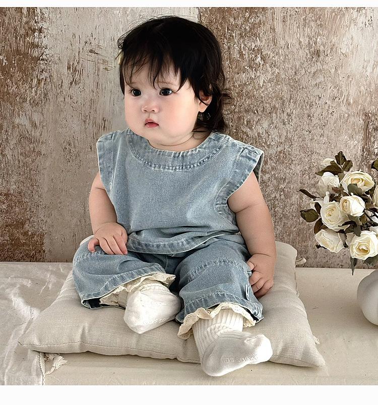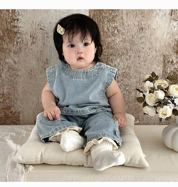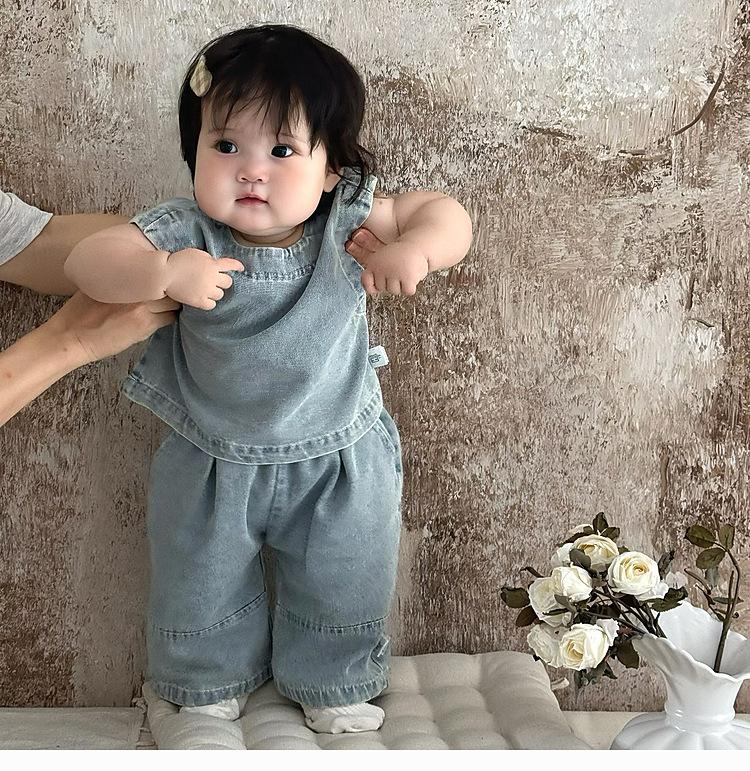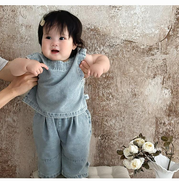 Compra Conjunto de mezclilla temperamental y a la moda para bebé niña primavera y otoño versátil chaleco de color sólido para niña pantalones largos casuales sueltos para niño pequeño al por mayor en Joom.pro