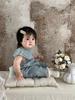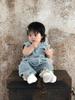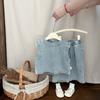 Conjunto de mezclilla temperamental y a la moda para bebé niña primavera y otoño versátil chaleco de color sólido para niña pantalones largos casuales sueltos para niño pequeño