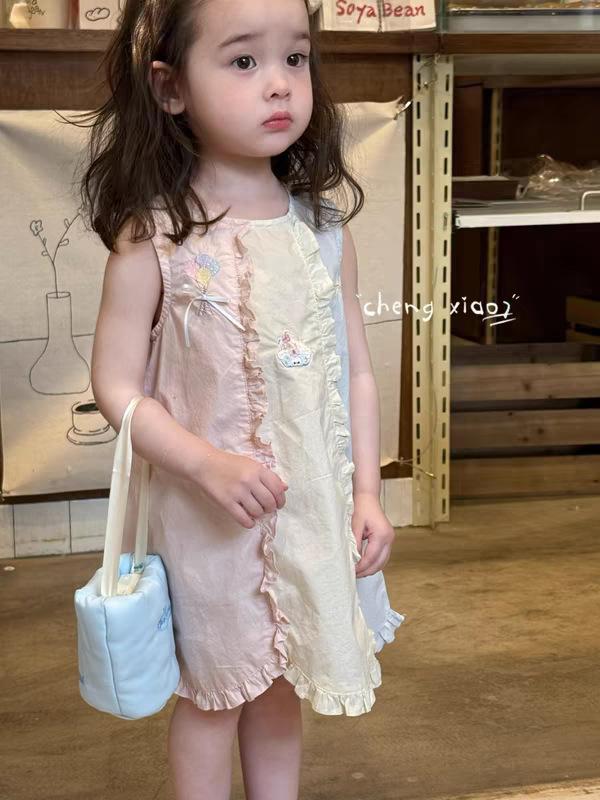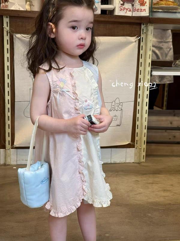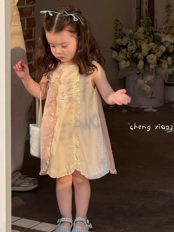 Vestido de Niña Vestido de Verano para Niños 2025 Nuevo Estilo Coreano Vestido de Alta Gama Vestido Chaleco para Bebé Vestido de Princesa de Moda